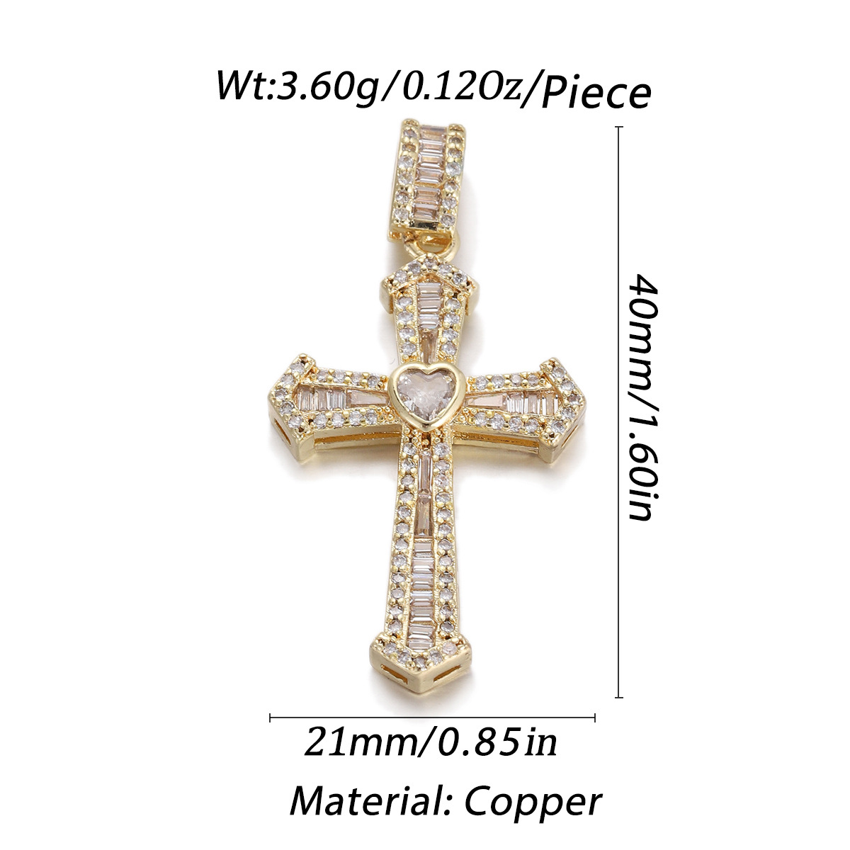 Cubic Zirconia Micro Pave Brass Pendant, Cross, plated, micro pave cubic zirconia Approx 1mm