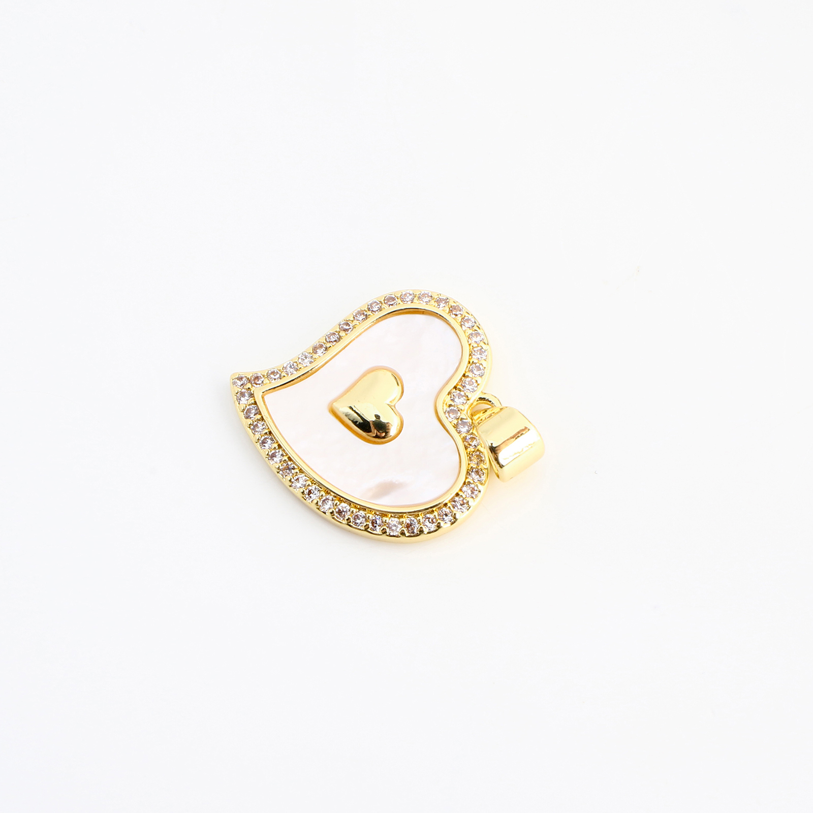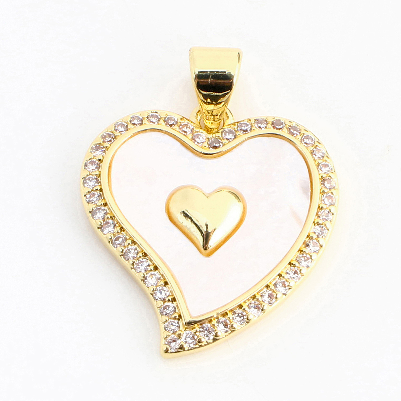Cubic Zirconia Micro Pave Brass Pendant, with White Shell, Heart, DIY & micro pave cubic zirconia, golden, 24x18x4mm, Sold By PC