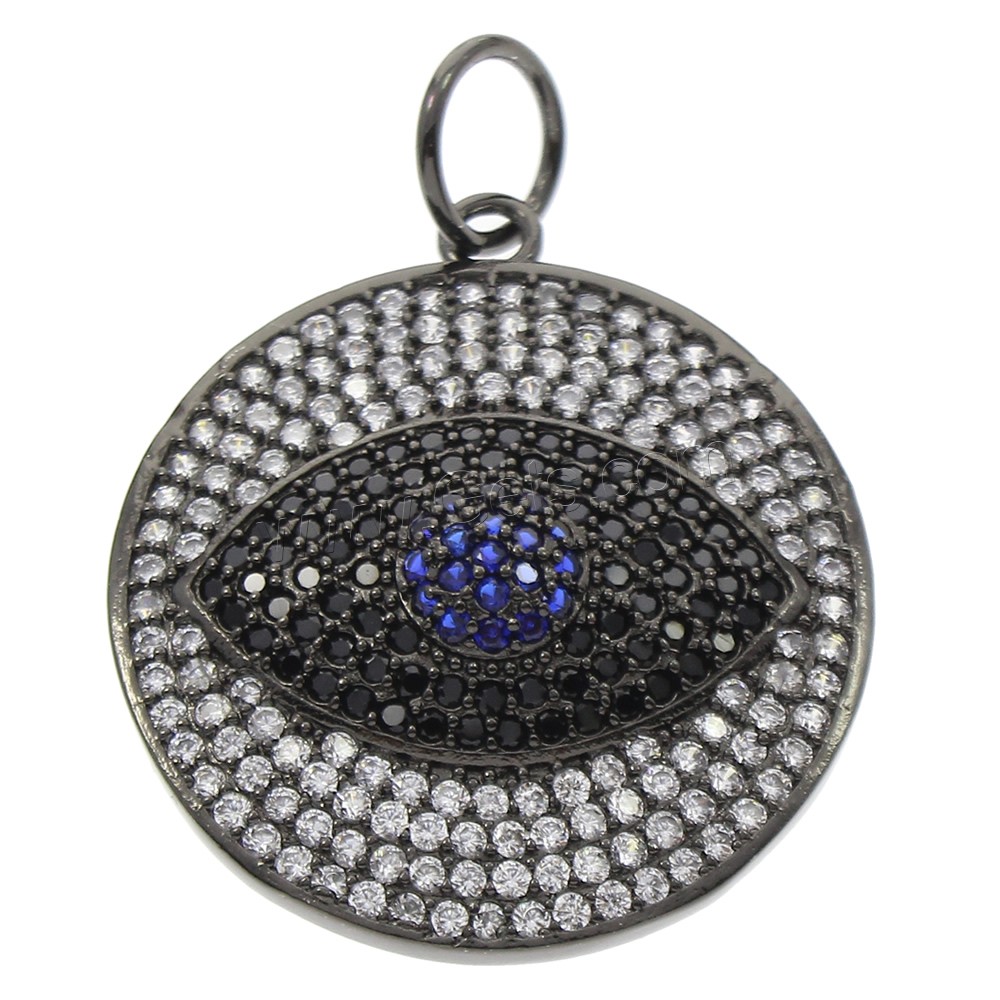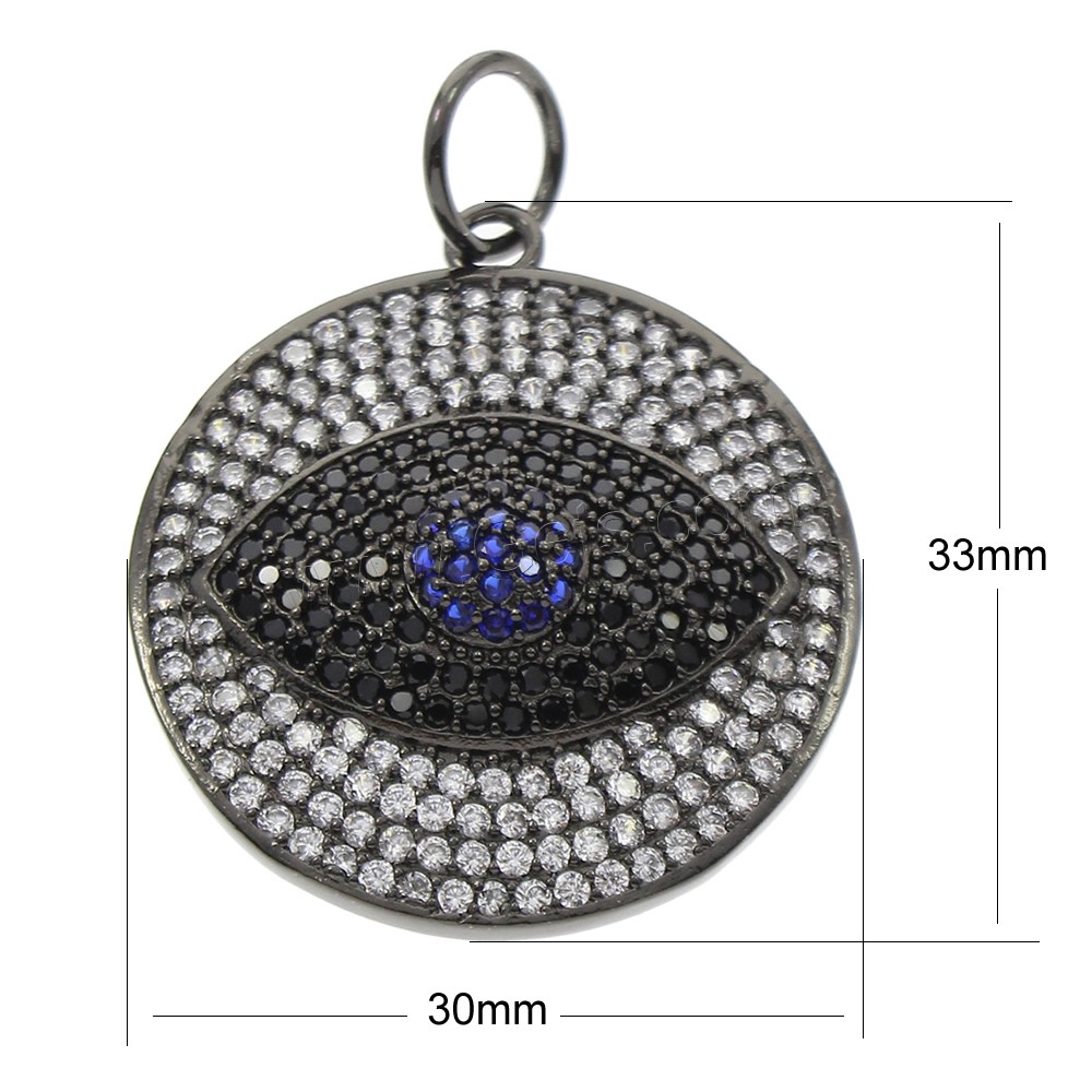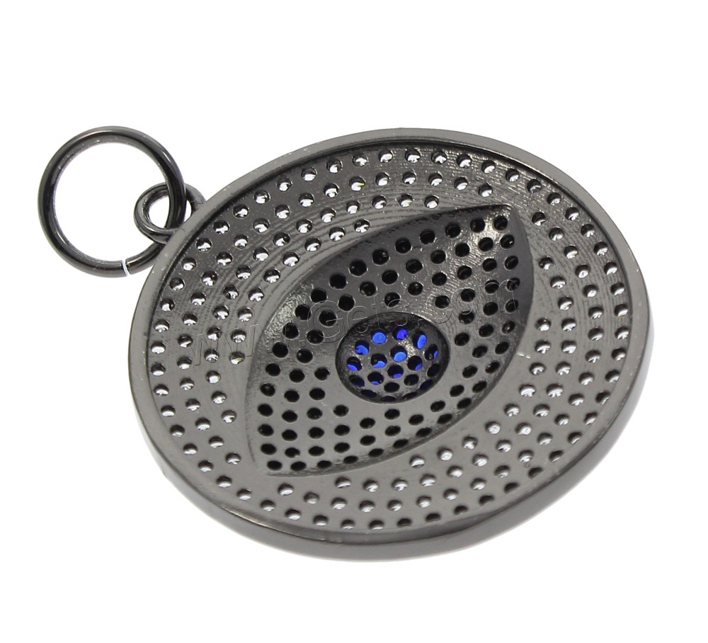 Cubic Zirconia Micro Pave Brass Pendant, Flat Round, plumbum black color plated, micro pave cubic zirconia, 30x33x6mm, Hole:Approx 7mm, Sold By PC