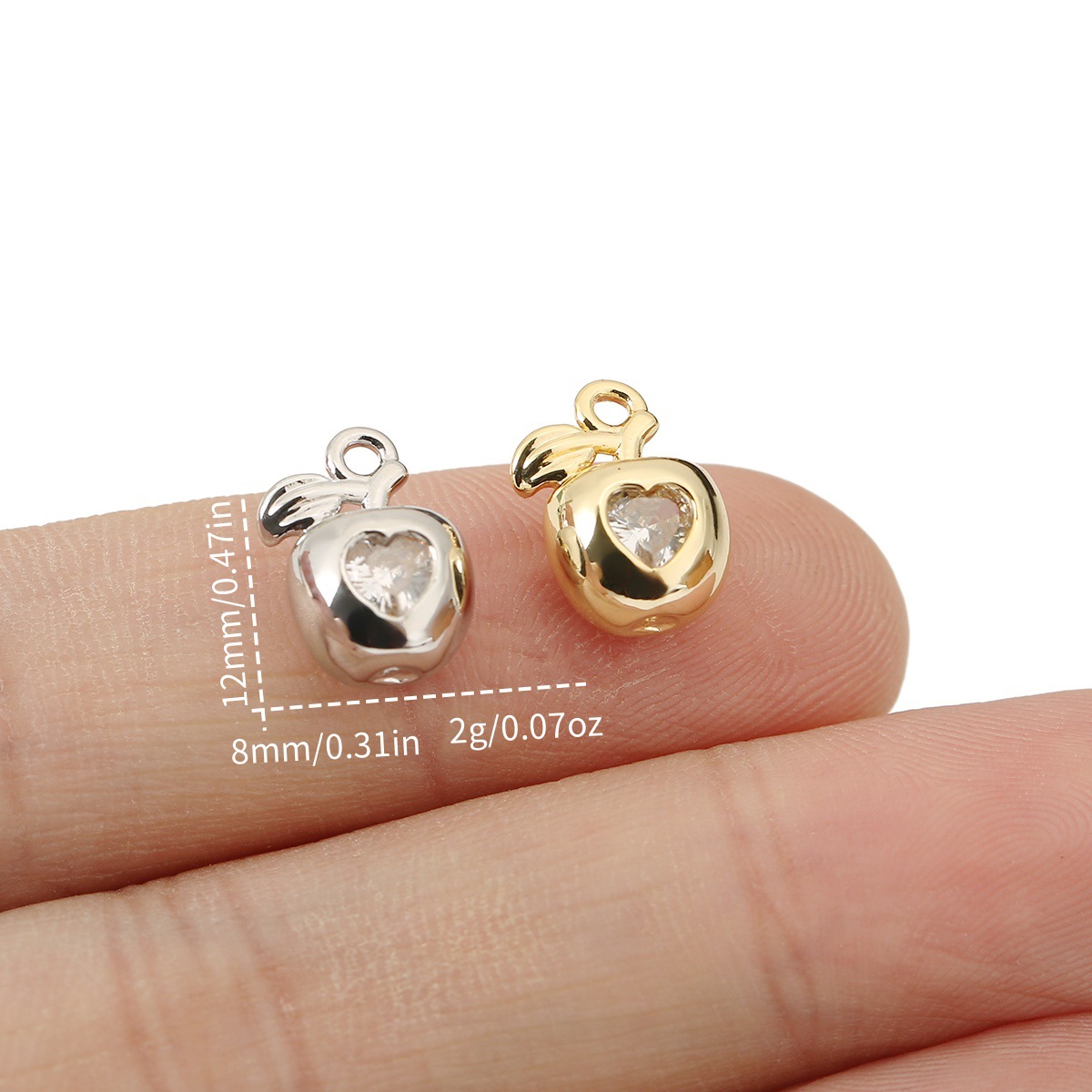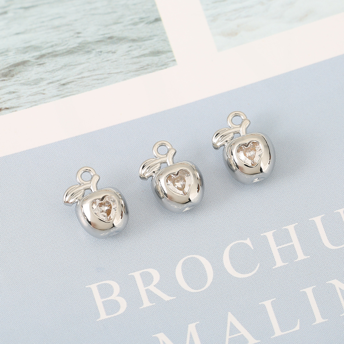 Cubic Zirconia Micro Pave Brass Pendant, Apple, plated, DIY & micro pave cubic zirconia, more colors for choice, 10PCs/Bag, Sold By Bag