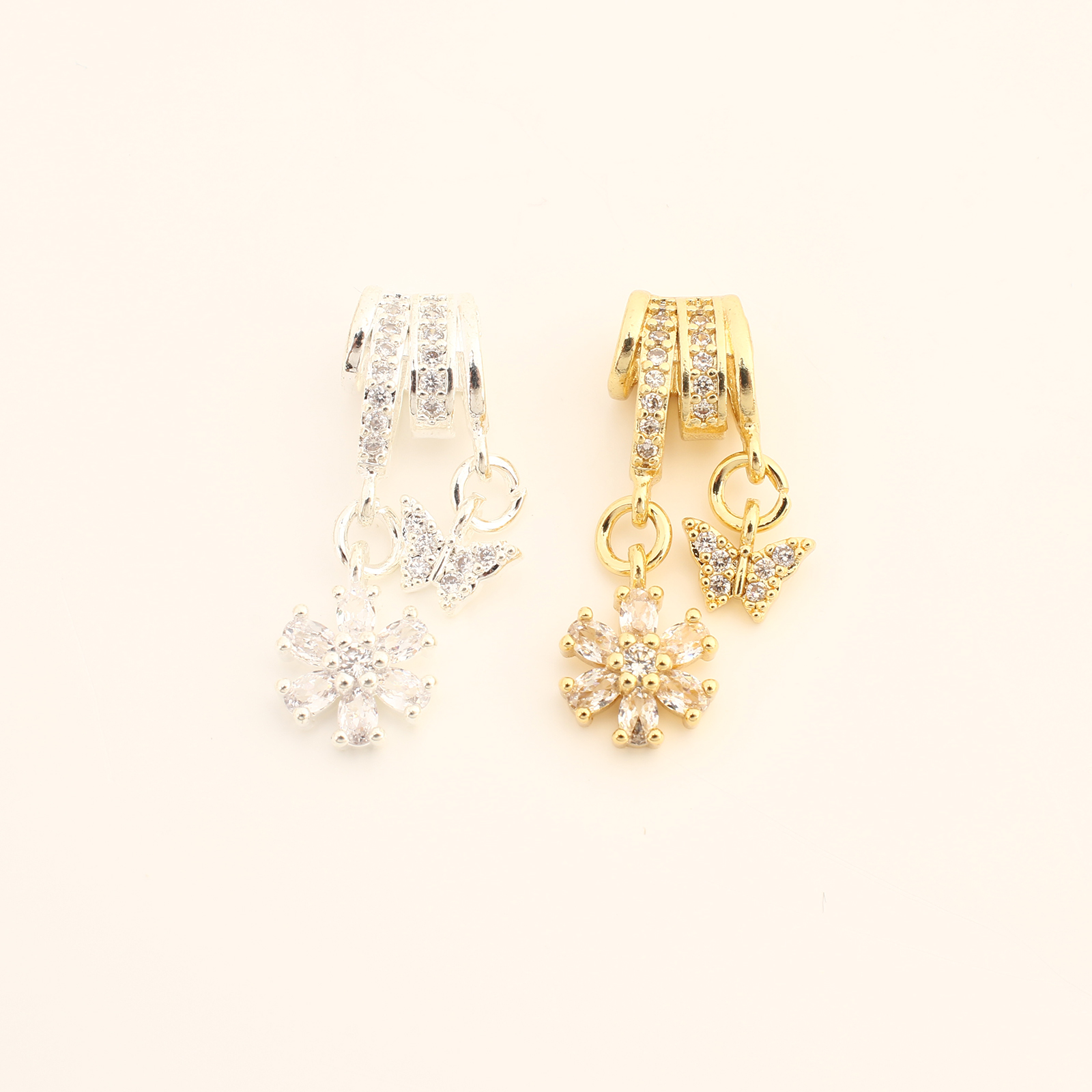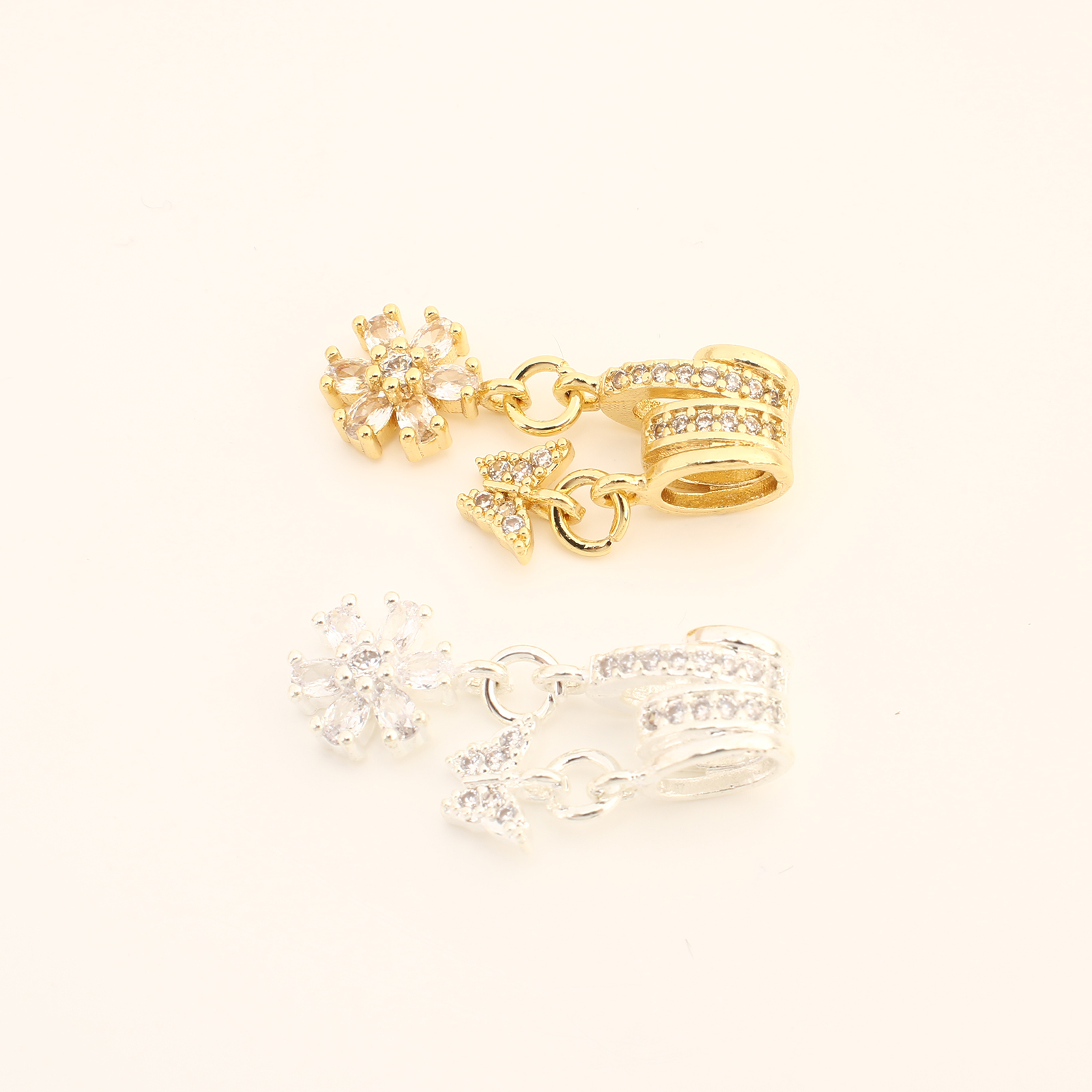 Cubic Zirconia Micro Pave Brass Pendant, Flower, gold color plated, fashion jewelry & DIY & micro pave cubic zirconia