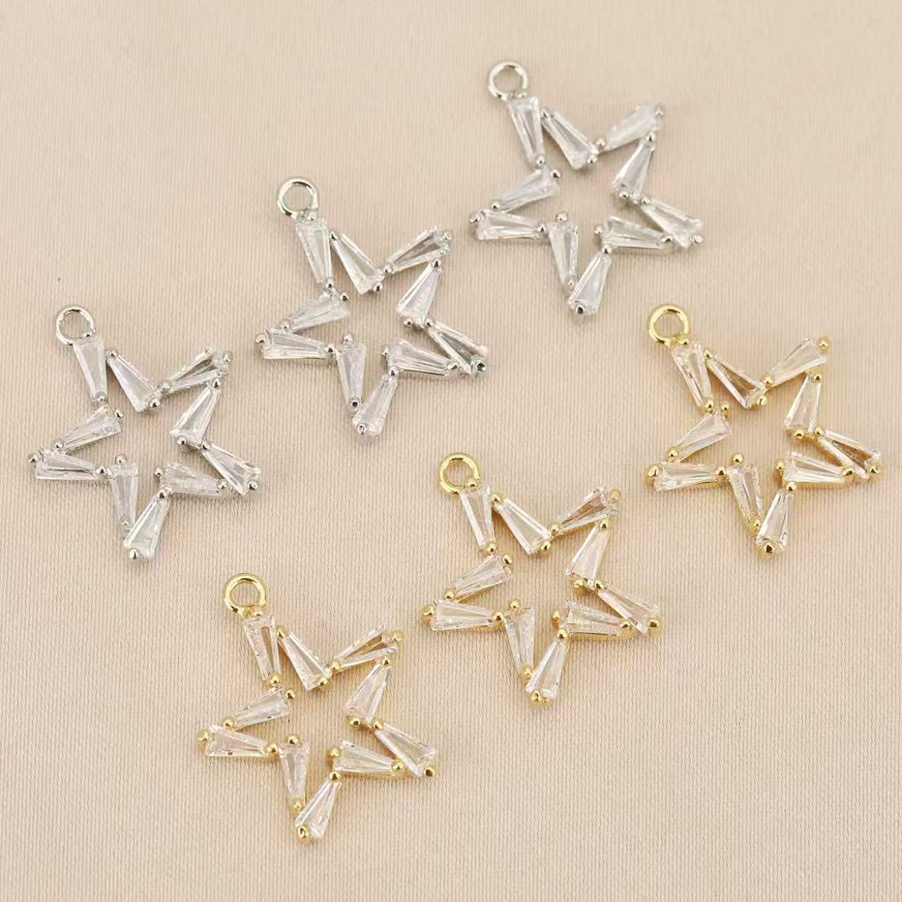 Cubic Zirconia Micro Pave Brass Pendant, Star, plated, DIY & micro pave cubic zirconia & hollow, more colors for choice, 10PCs/Bag, Sold By Bag