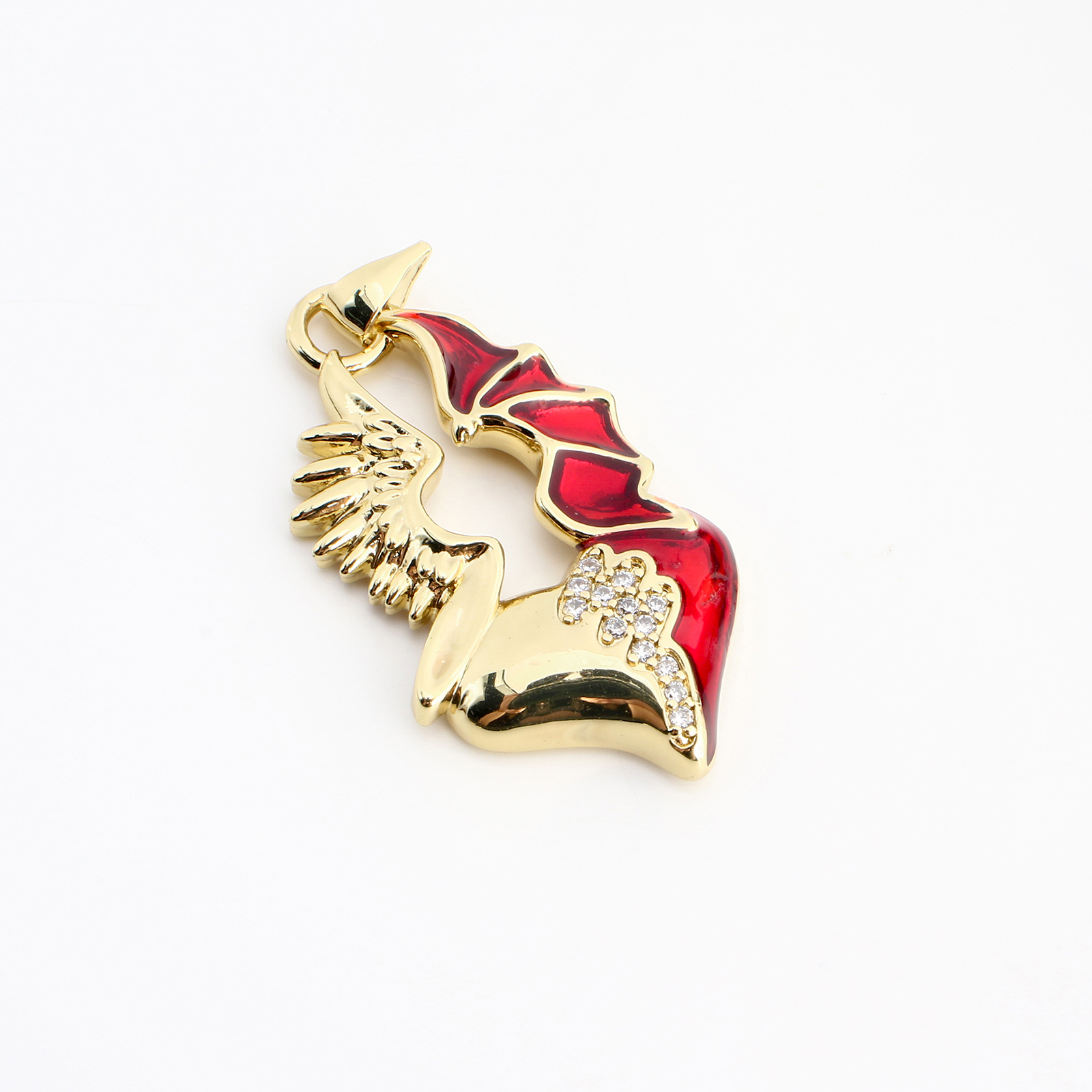 Cubic Zirconia Micro Pave Brass Pendant, gold color plated, DIY & micro pave cubic zirconia & enamel & hollow, 41x20x4mm, Sold By PC