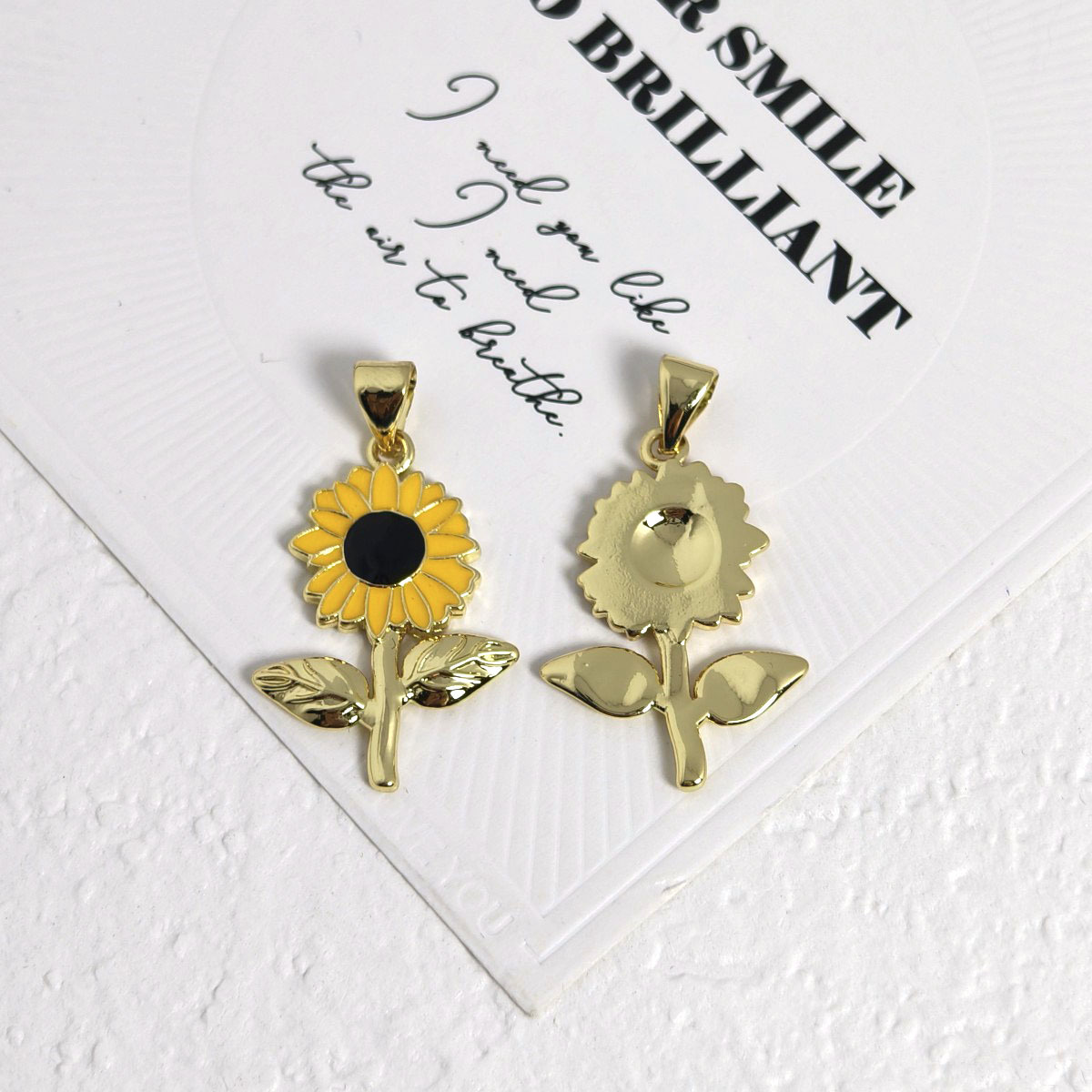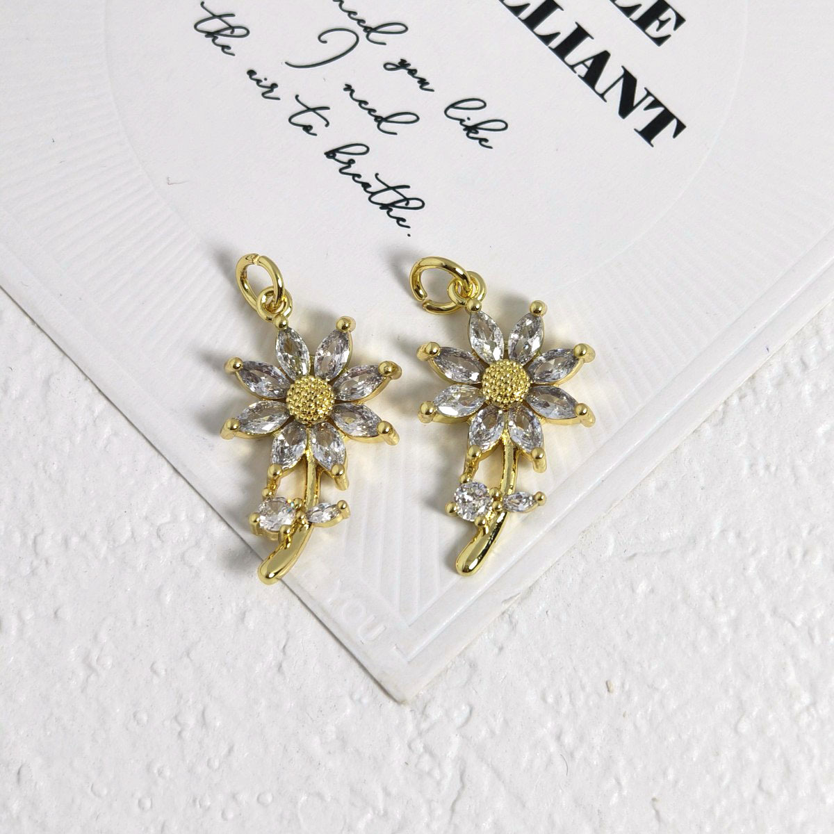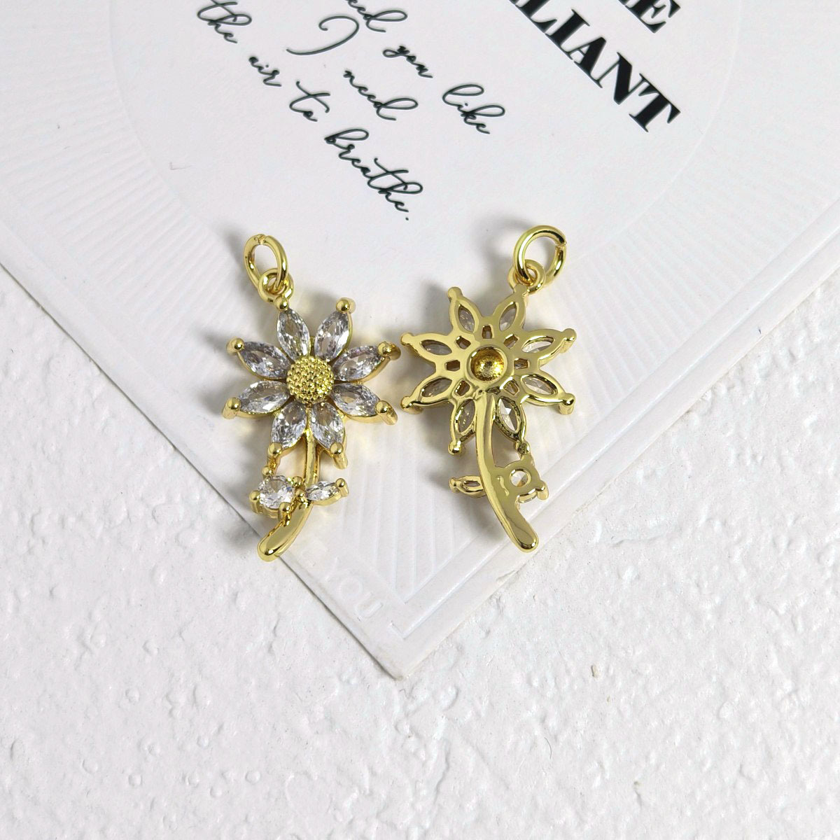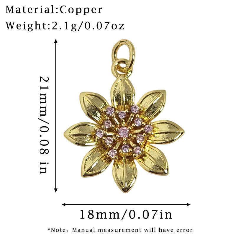 Cubic Zirconia Micro Pave Brass Pendant, Flower, gold color plated, fashion jewelry & DIY & micro pave cubic zirconia