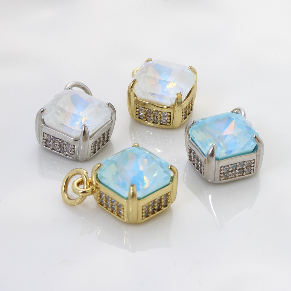 Cubic Zirconia Micro Pave Brass Pendant, Square, plated, DIY & micro pave cubic zirconia, more colors for choice, 13.6x11x6.5mm, Sold By PC