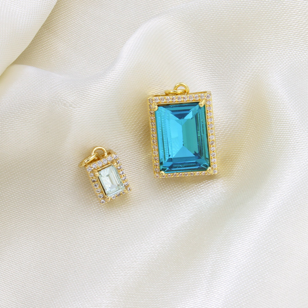 Cubic Zirconia Micro Pave Brass Pendant, Square, plated, DIY & micro pave cubic zirconia, more colors for choice, 19.2x13x8.4mm, Sold By PC