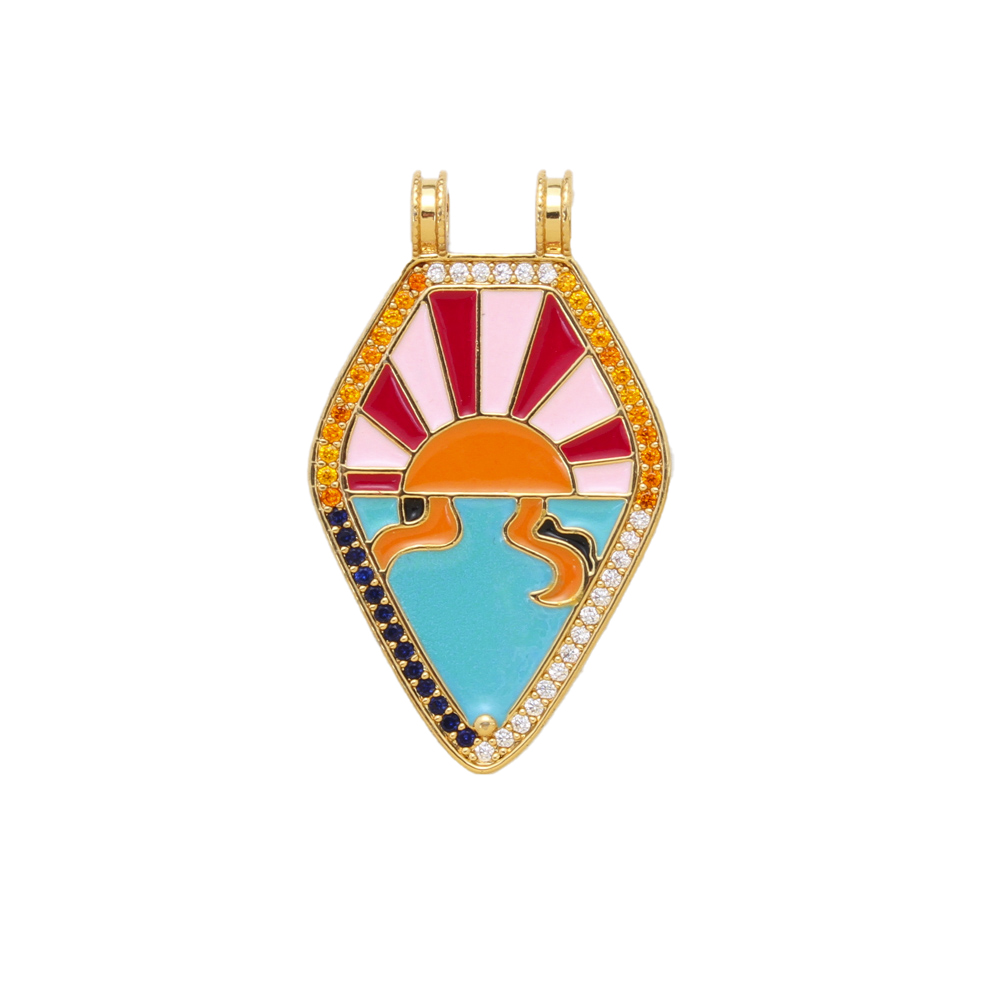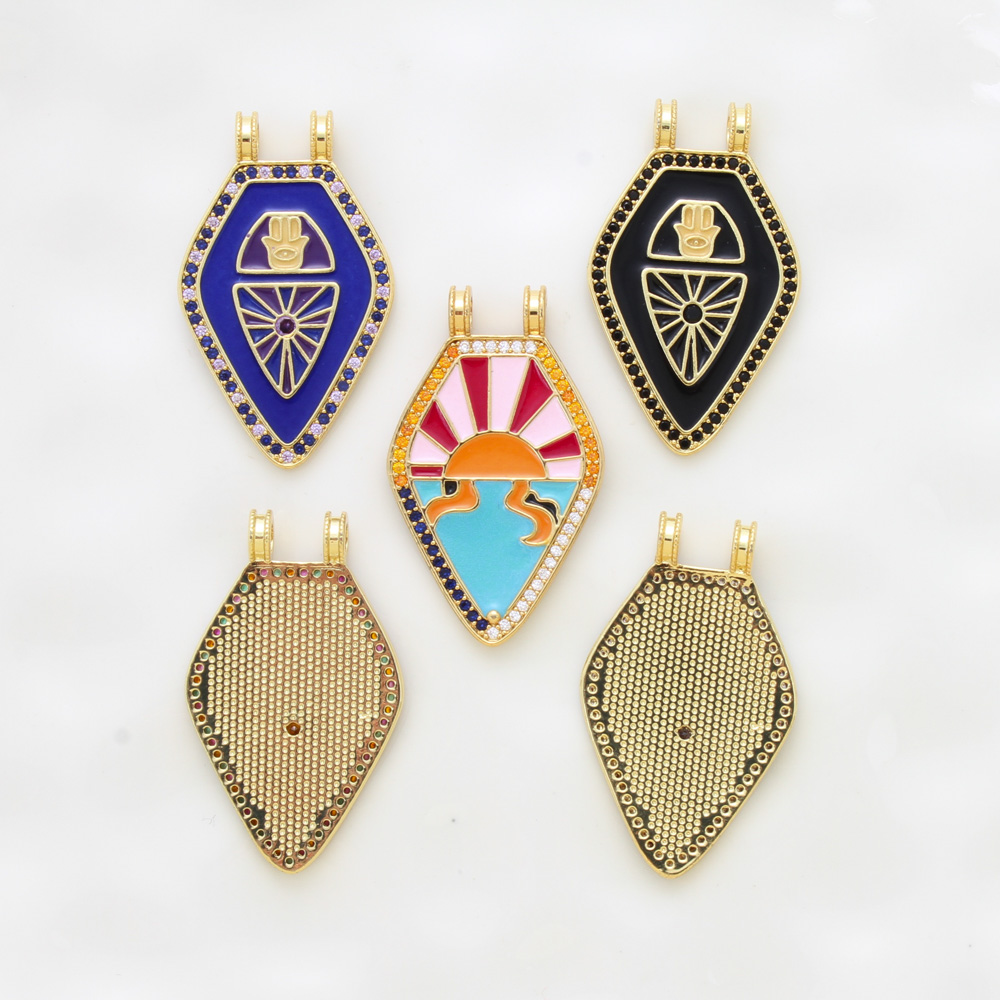 Cubic Zirconia Micro Pave Brass Pendant, Polygon, gold color plated, fashion jewelry & DIY & micro pave cubic zirconia & enamel