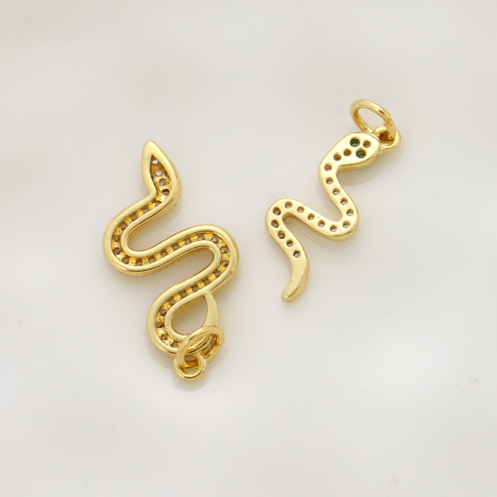 Cubic Zirconia Micro Pave Brass Pendant, Snake, plated, DIY & micro pave cubic zirconia, more colors for choice, 23x11x2.7mm, Sold By PC
