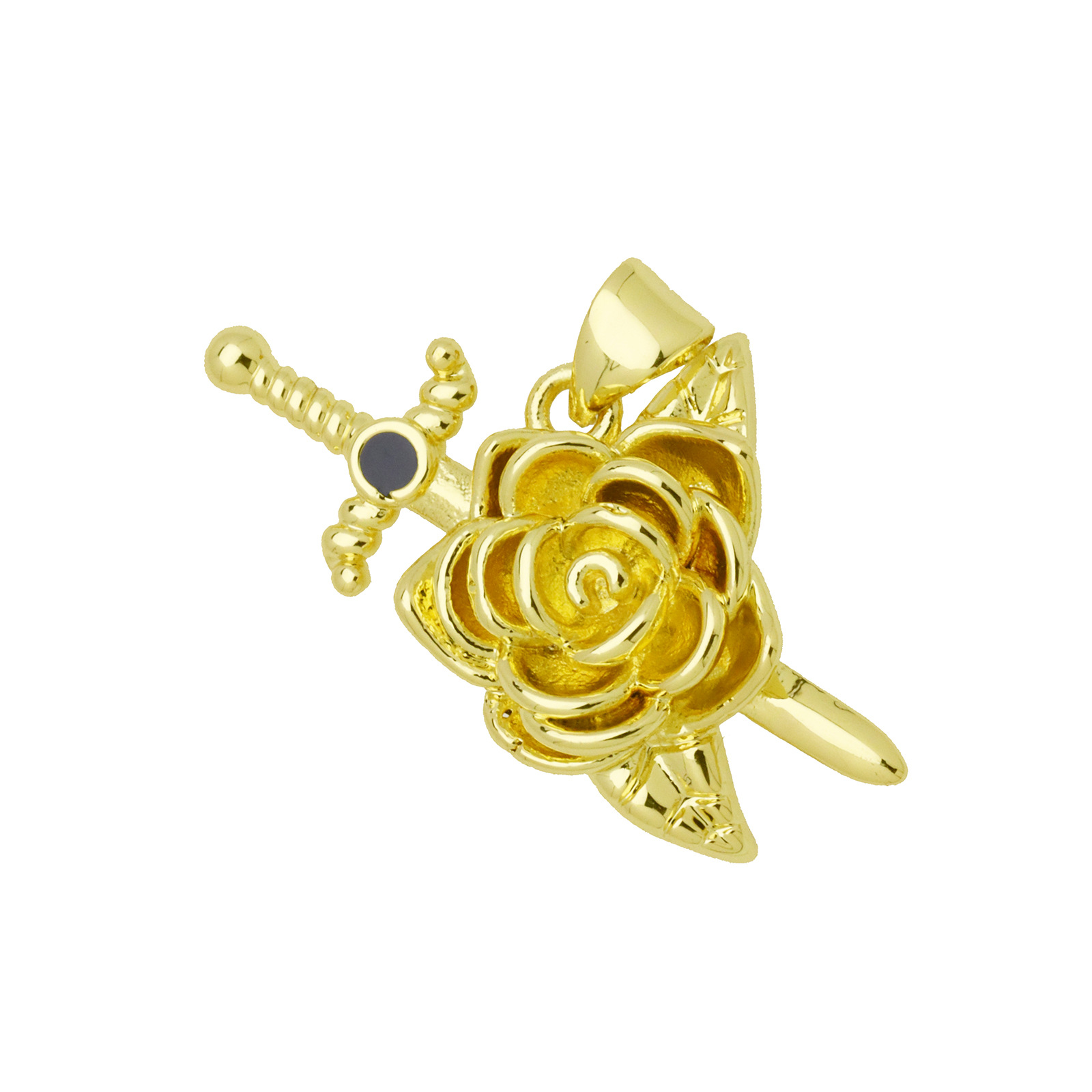 Cubic Zirconia Micro Pave Brass Pendant, Flower, gold color plated, fashion jewelry & DIY & micro pave cubic zirconia