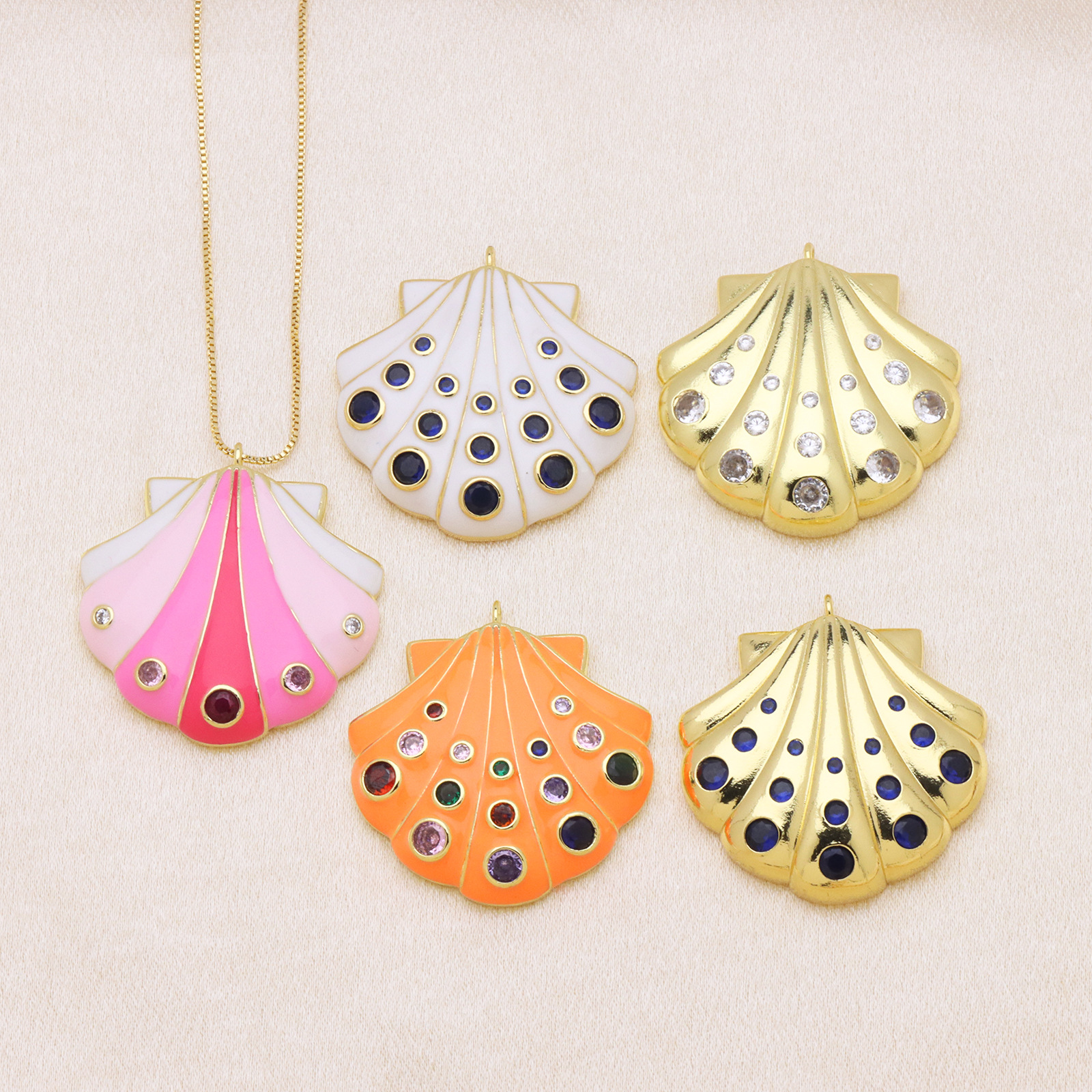 Cubic Zirconia Micro Pave Brass Pendant, Shell, gold color plated, DIY & different styles for choice & micro pave cubic zirconia & enamel, more colors for choice, 35x37mm, Sold By PC