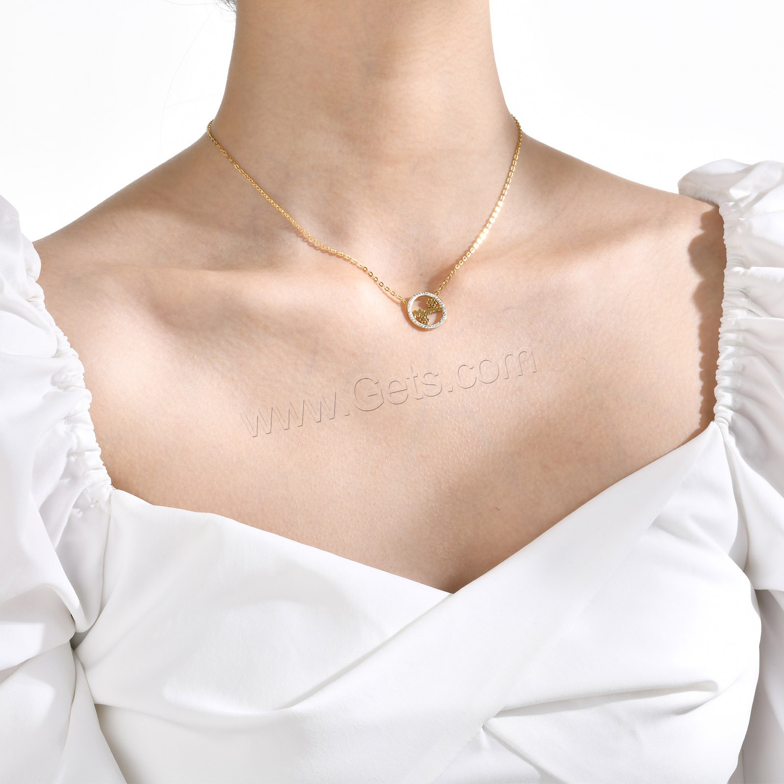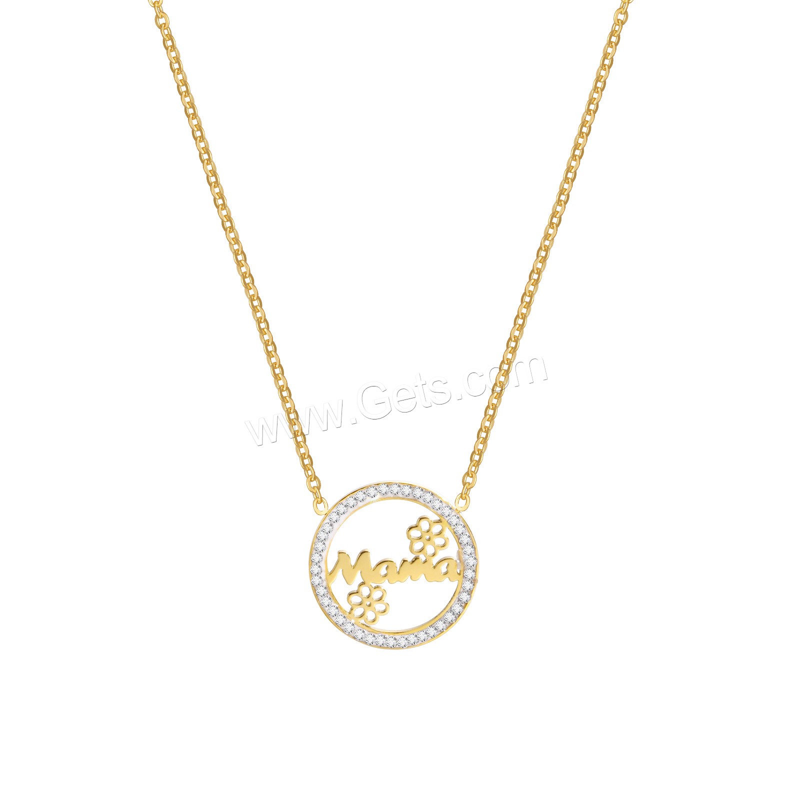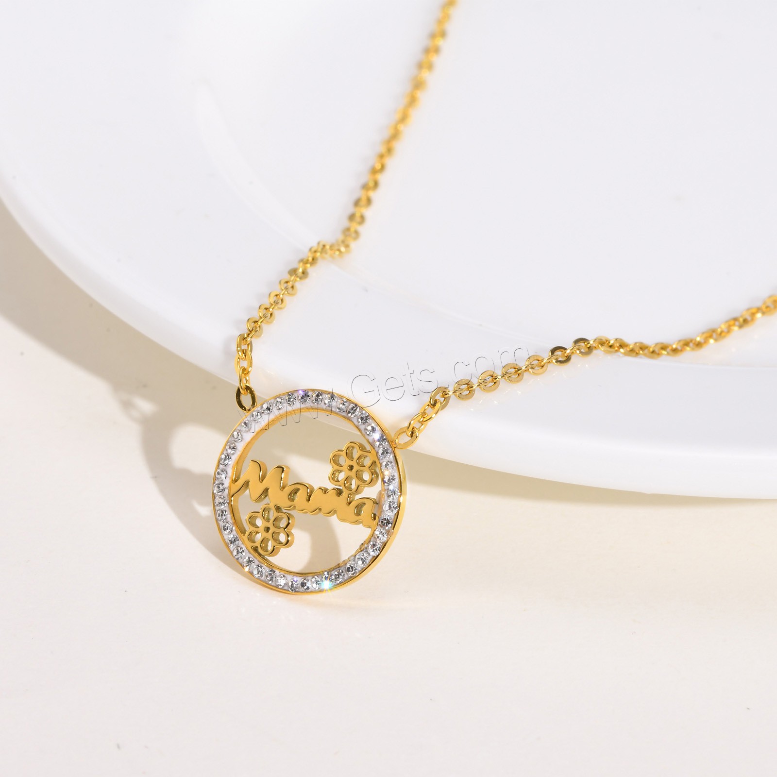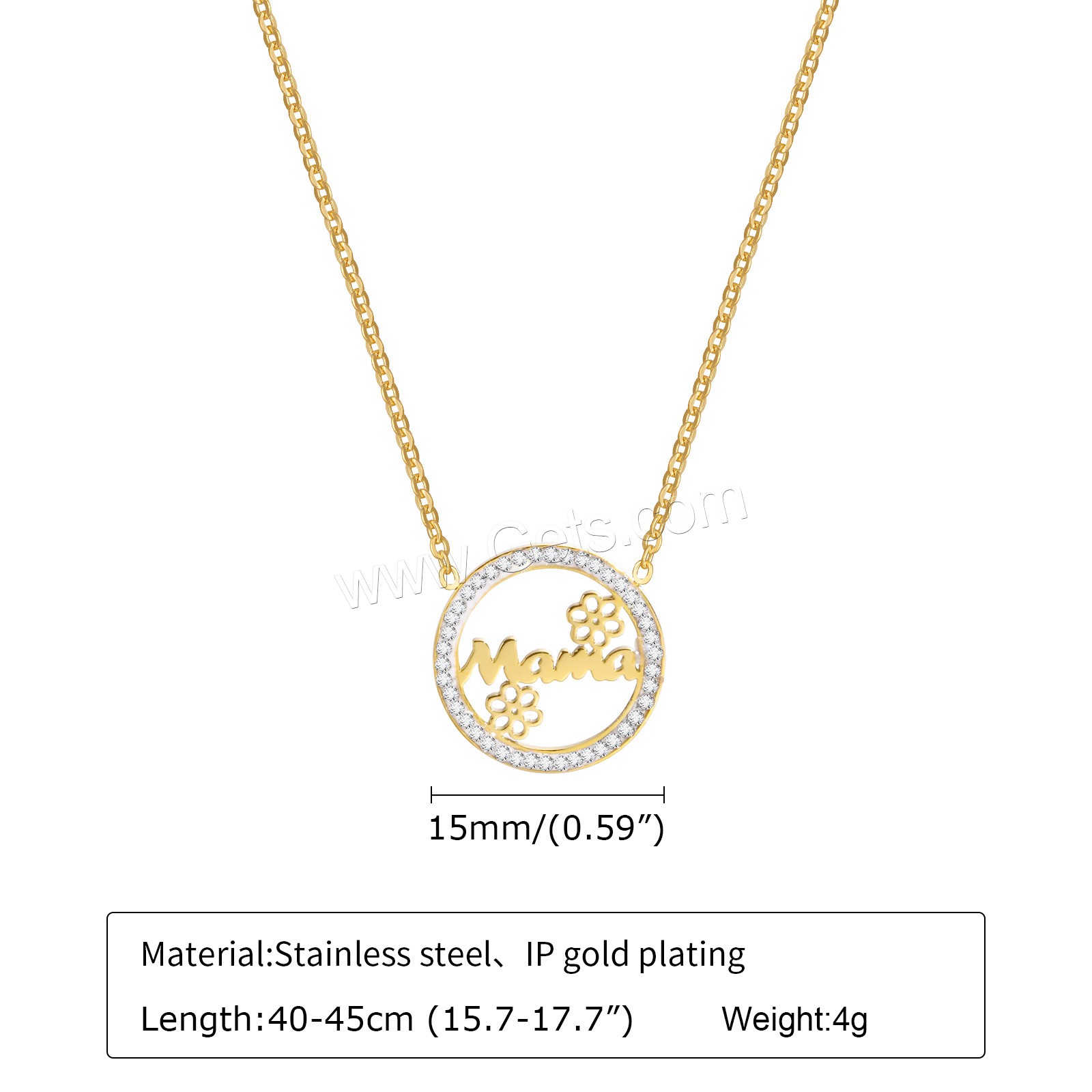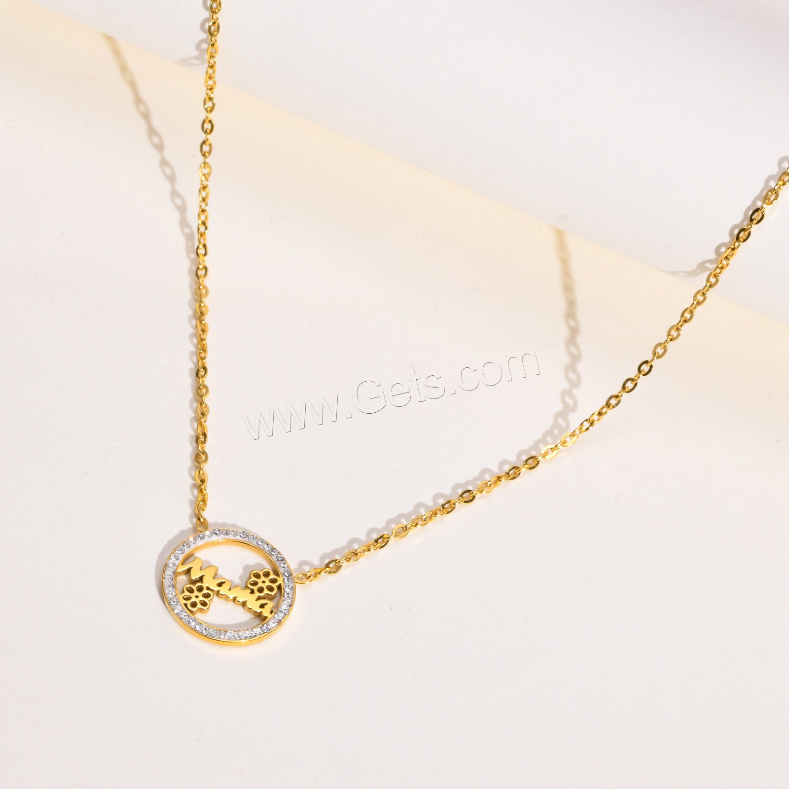 Cubic Zirconia Stainless Steel Necklace, 304 Stainless Steel, with Cubic Zirconia, Round, gold color plated, oval chain & hollow  Approx 18 Inch