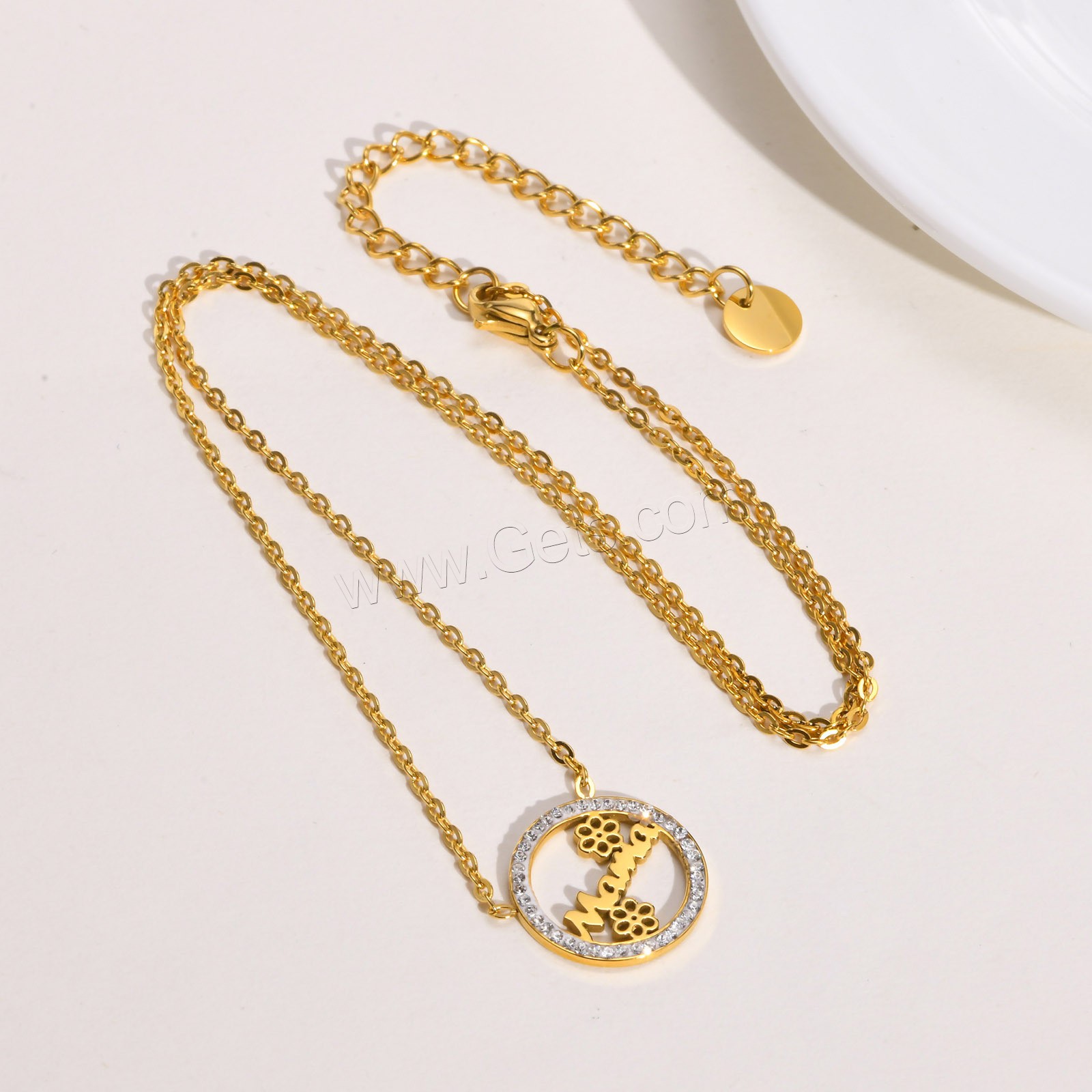 Cubic Zirconia Stainless Steel Necklace, with 5cm extender chain, Fine Polishing & oval chain & with letter pattern & for woman & with cubic zirconia, original color, 25mm Approx 17.8 Inch