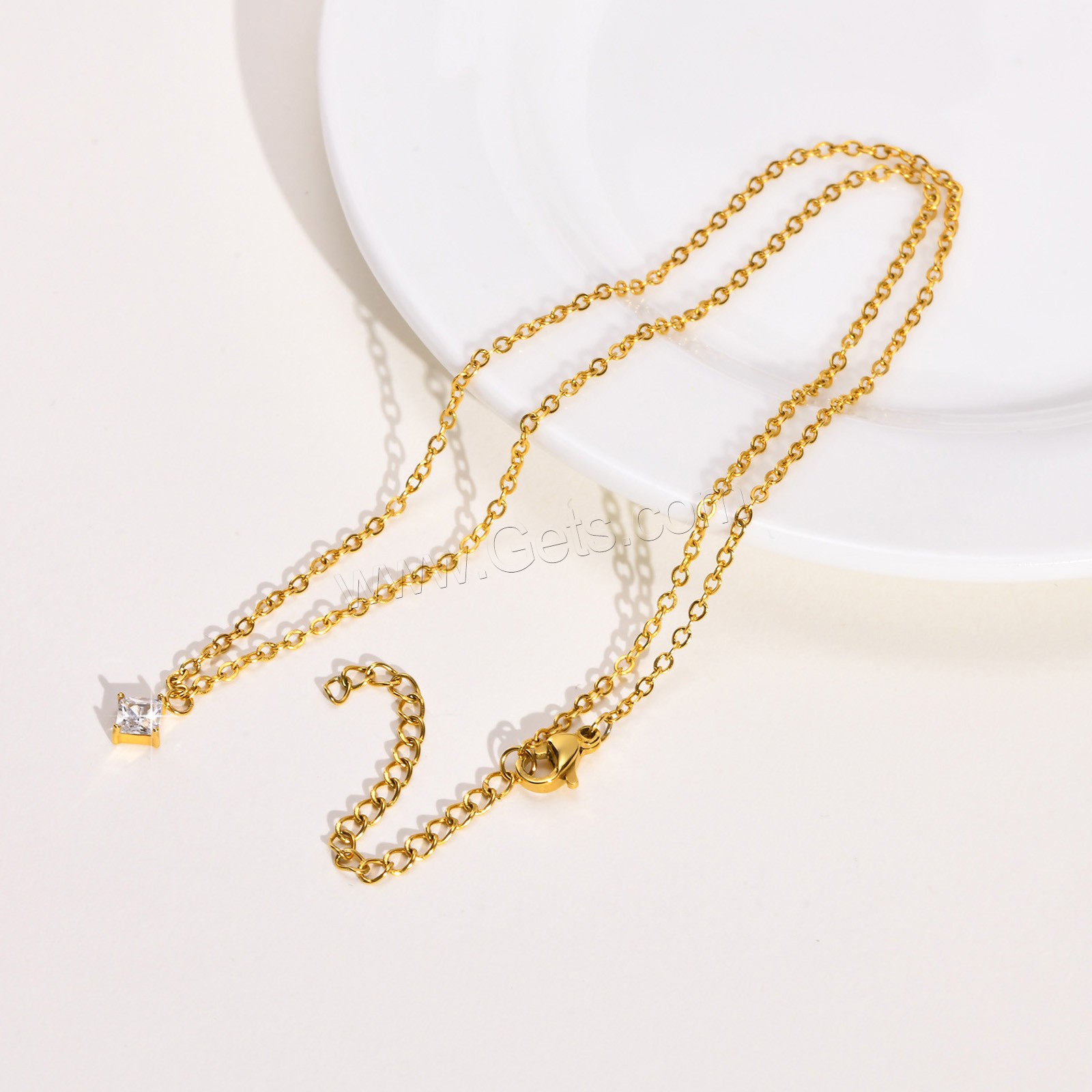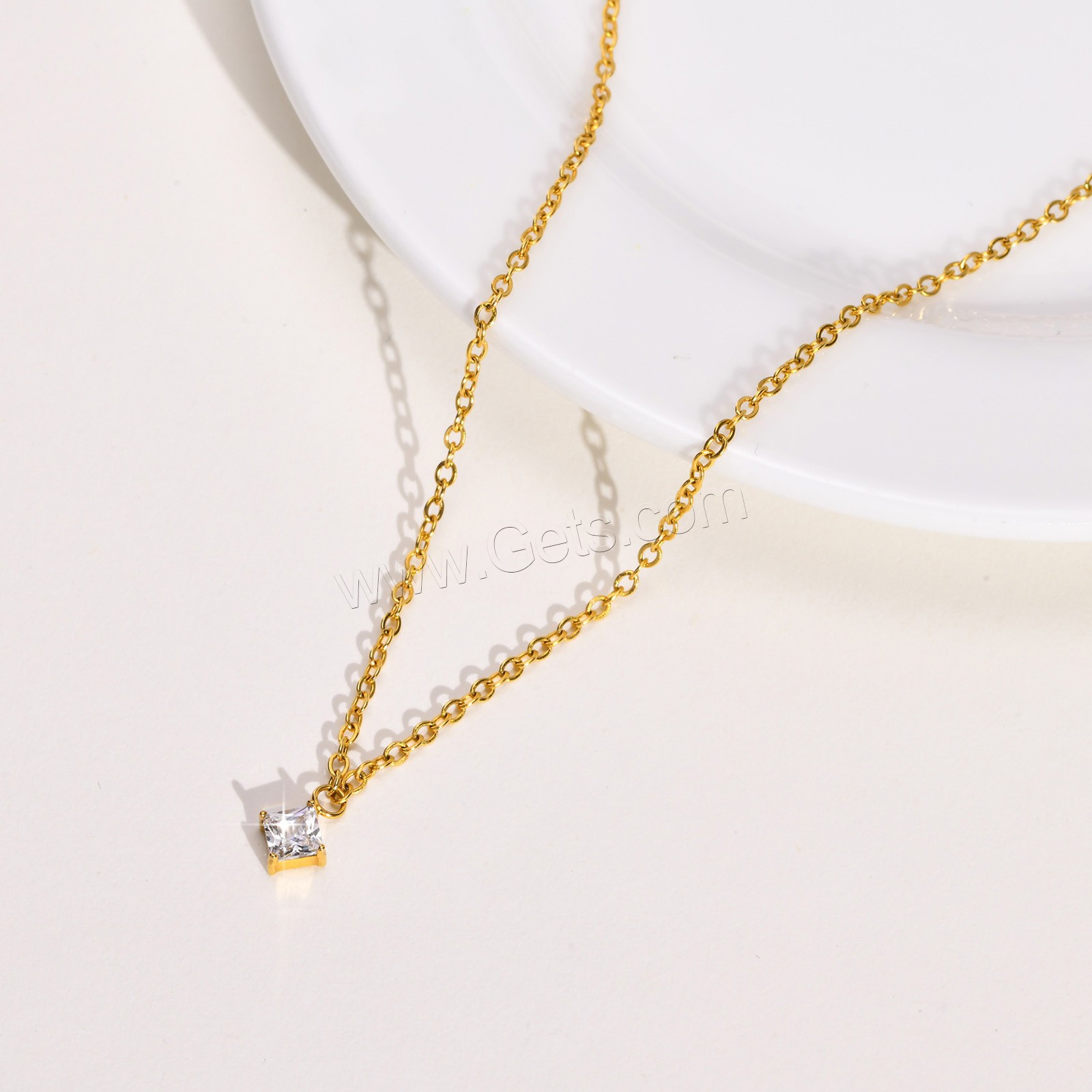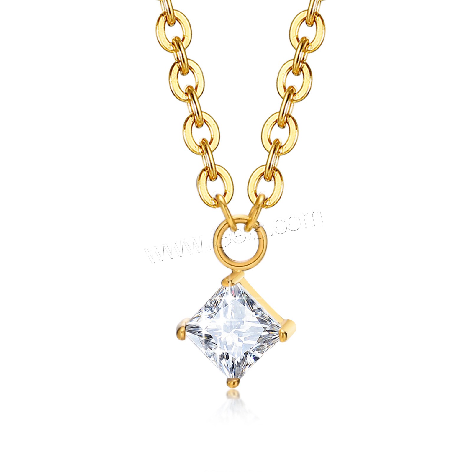 Cubic Zirconia Stainless Steel Necklace, plated, oval chain & with cubic zirconia 1mm Approx 16 Inch