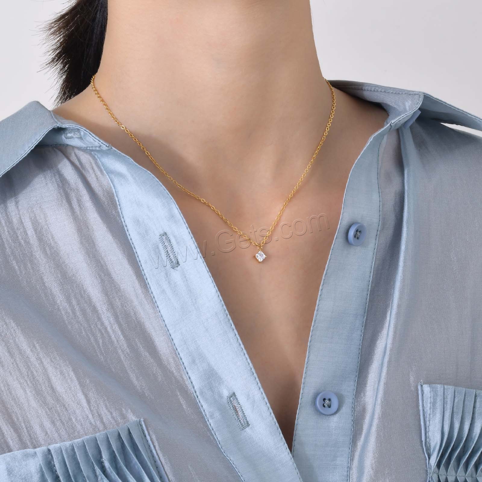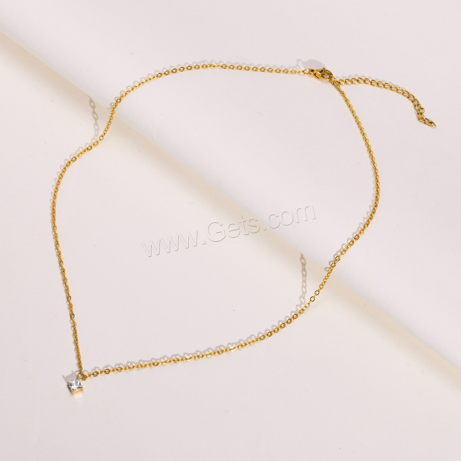 Cubic Zirconia Stainless Steel Necklace, oval chain & with cubic zirconia, original color 1.5mm Approx 16 Inch