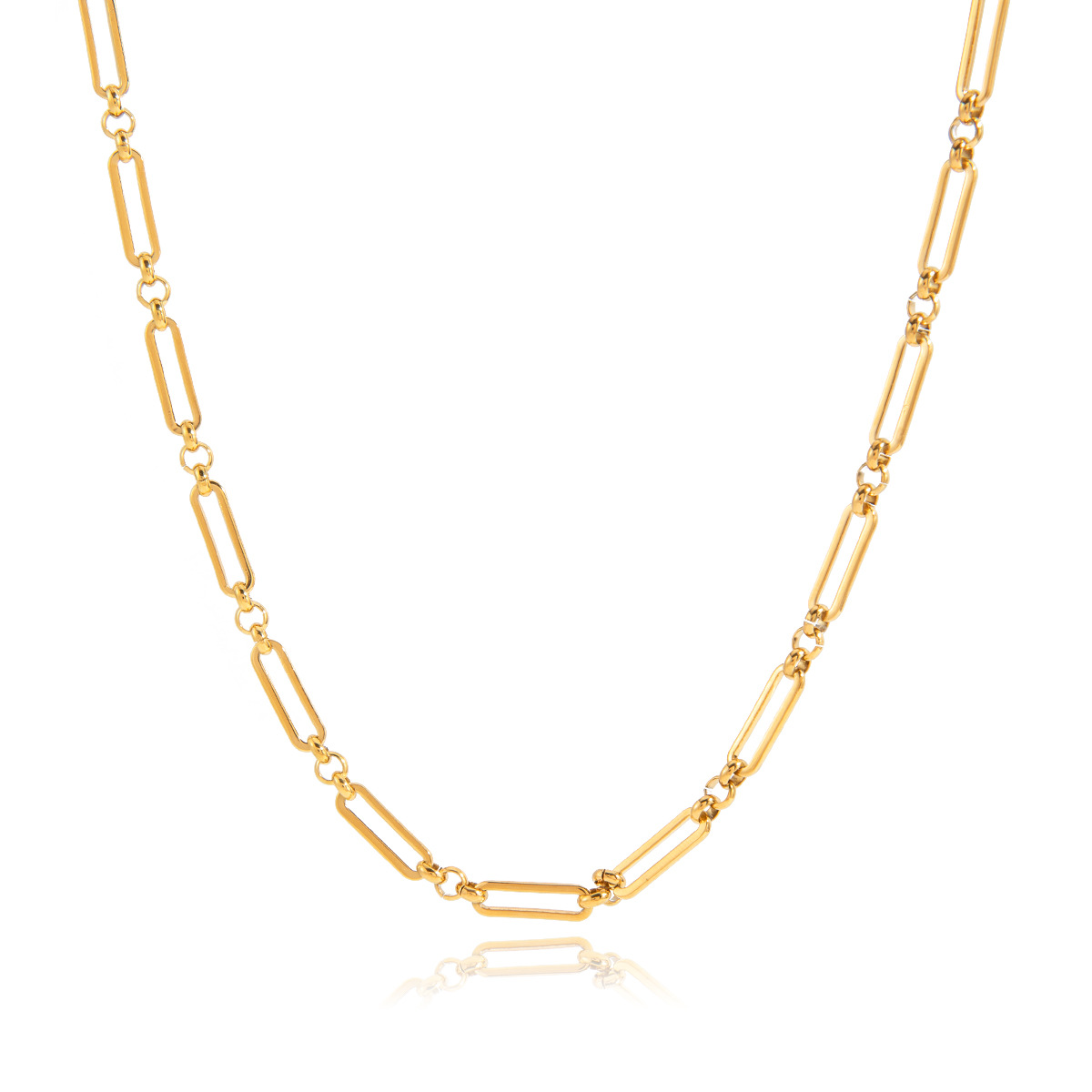 Cubic Zirconia Stainless Steel Necklace, 304 Stainless Steel, with Cubic Zirconia, Round, gold color plated, oval chain & hollow  Approx 18 Inch