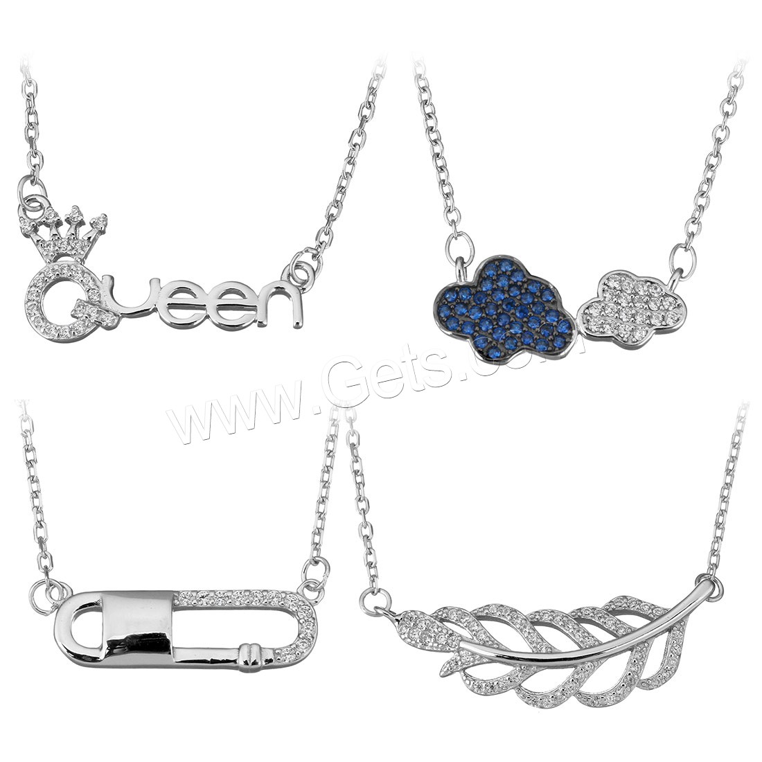Cubic Zirconia Sterling Silver Necklace, 925 Sterling Silver, with 1-2Inch extender chain, oval chain & different styles for choice & for woman & with cubic zirconia, 15.5-38x7.5-16mm, 1.3-1.5mm, Length:Approx 14-17 Inch, Sold By Strand