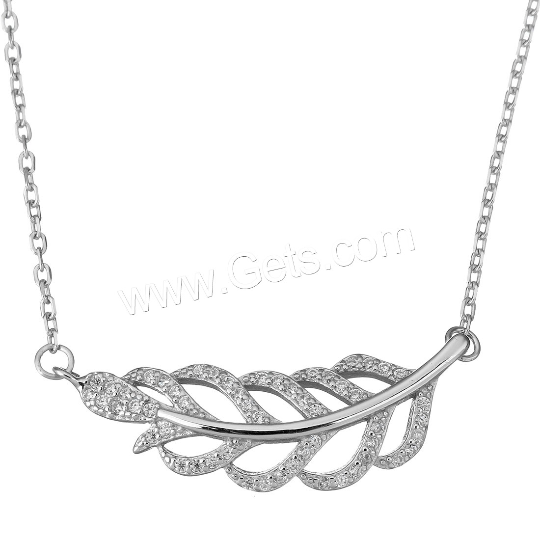 Cubic Zirconia Sterling Silver Necklace, 925 Sterling Silver, plated, with cubic zirconia 1.6mm Approx 18 Inch