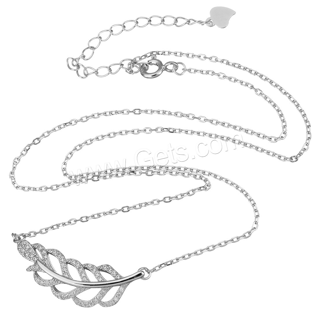 Cubic Zirconia Sterling Silver Necklace, 925 Sterling Silver, Heart, plated, with cubic zirconia 1.2mm Approx 17 Inch