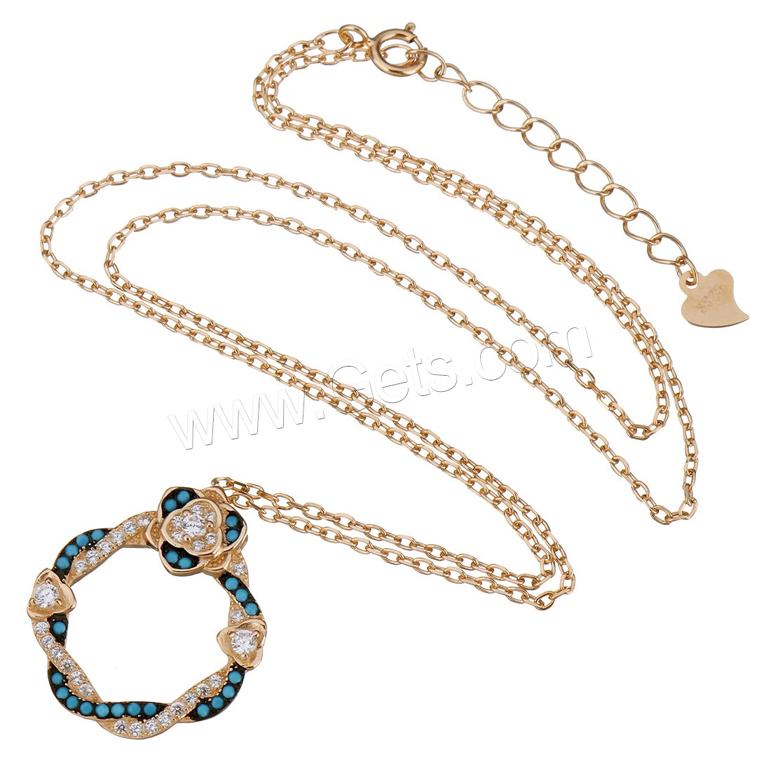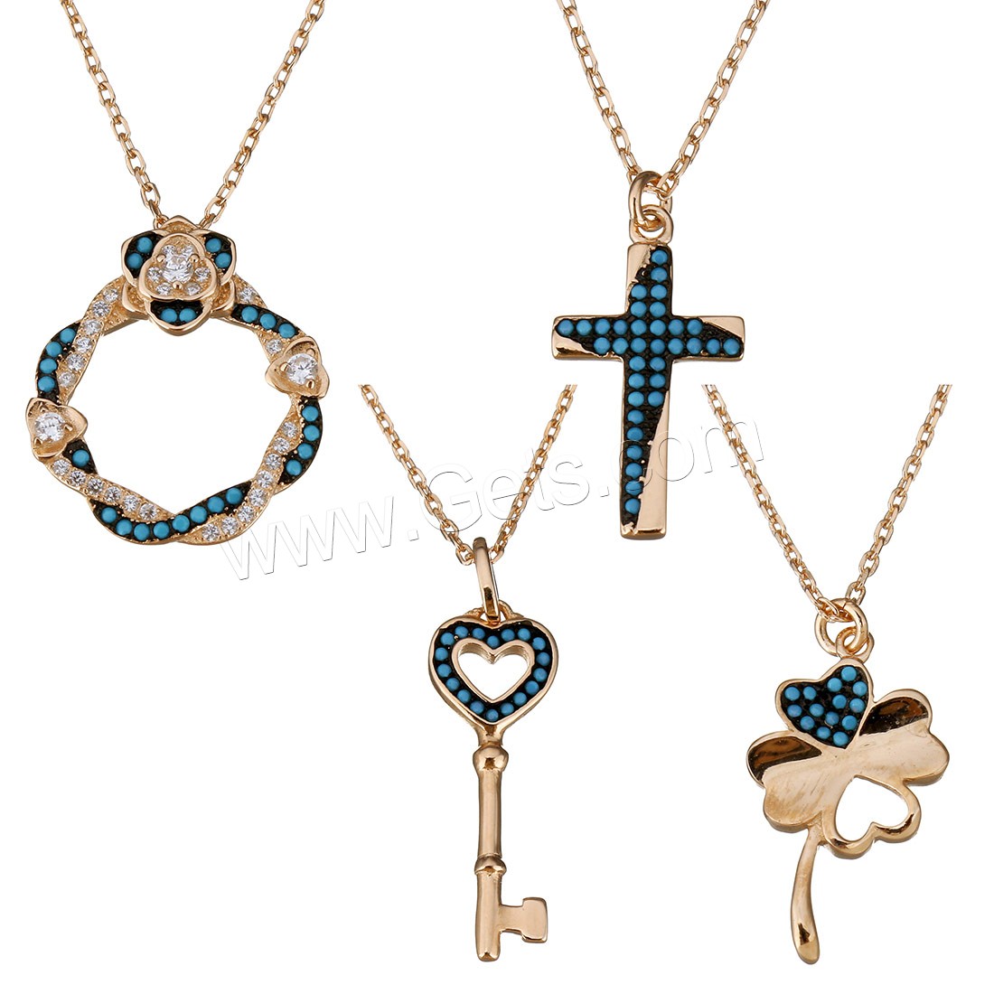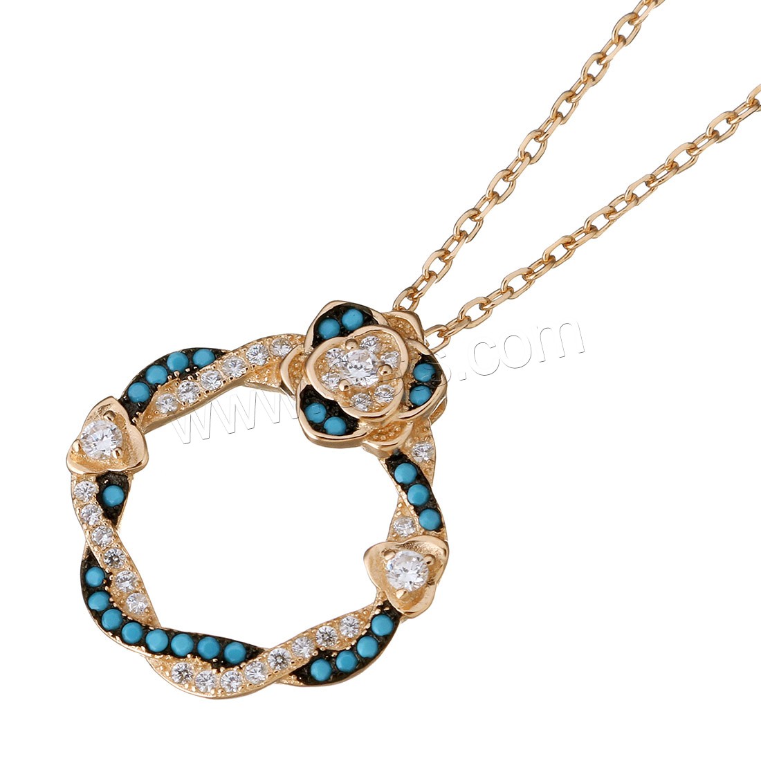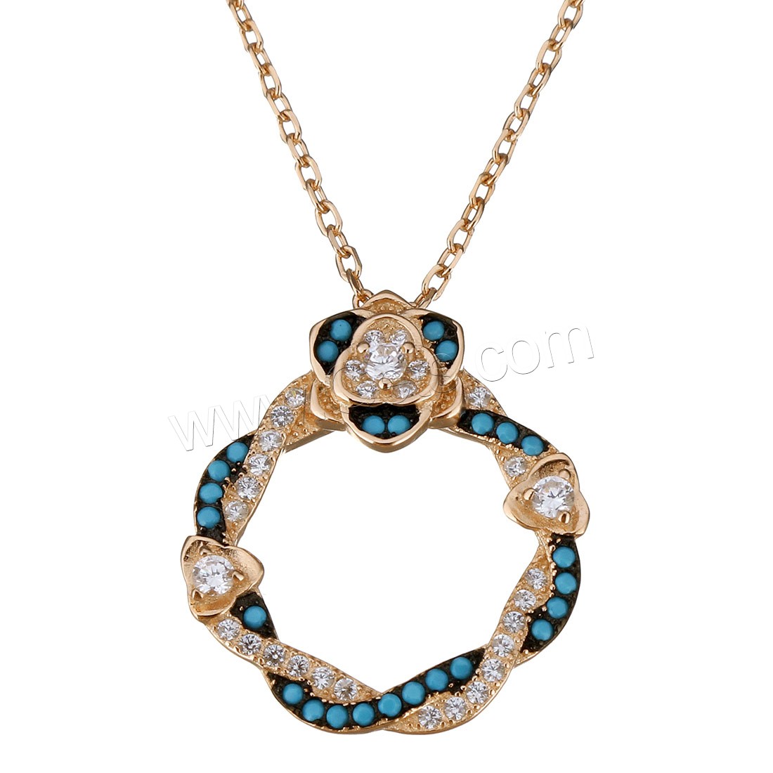Cubic Zirconia Sterling Silver Necklace, 925 Sterling Silver, with 1.5Inch extender chain, real rose gold plated, oval chain & different styles for choice & for woman & with cubic zirconia, 9-19.5x20.5x26mm, 1.3-1.5mm, Length:Approx 16 Inch, Sold By Strand