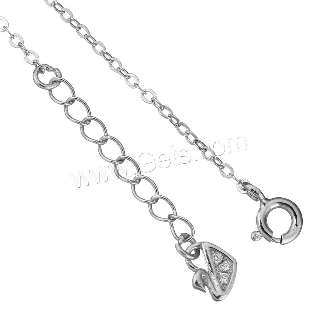 Cubic Zirconia Sterling Silver Necklace, 925 Sterling Silver, with 1Inch extender chain, plated, oval chain & different styles for choice & for woman & with cubic zirconia, 8-10.5x10-17mm, 1.5mm, Length:Approx 17 Inch, Sold By Strand