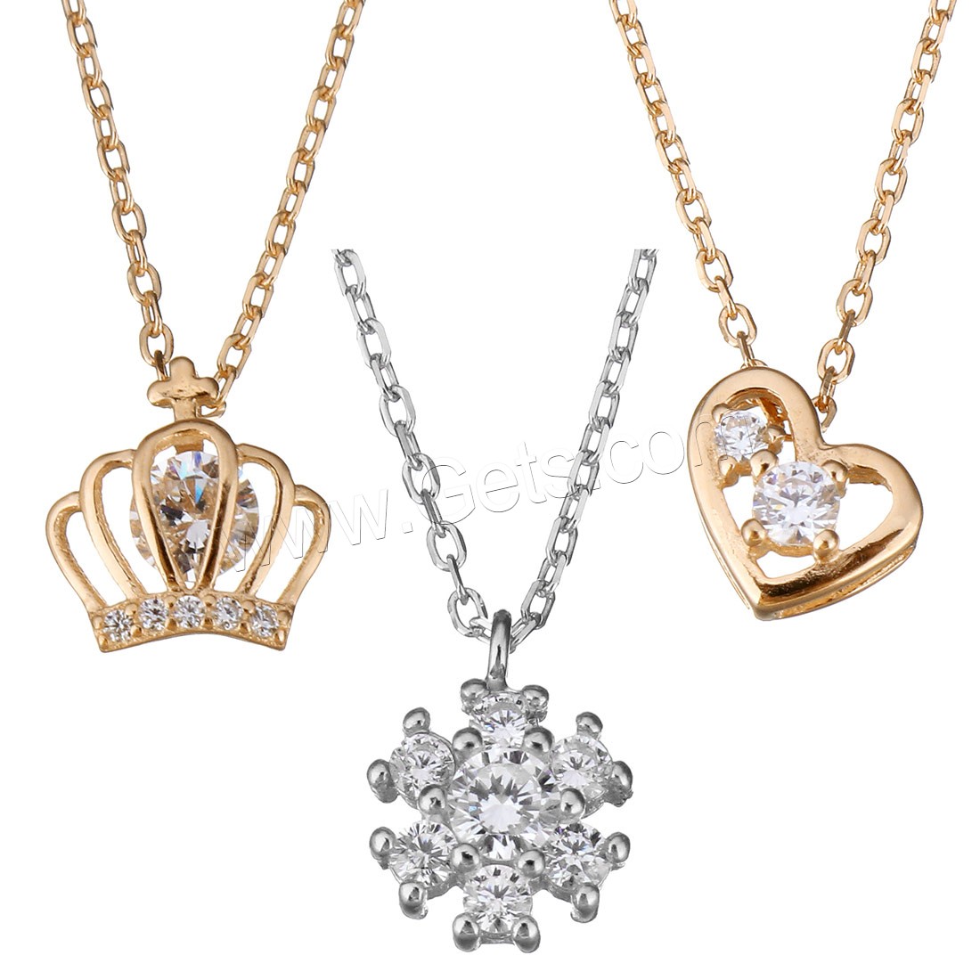 Cubic Zirconia Sterling Silver Necklace, 925 Sterling Silver, with 2Inch extender chain, plated, oval chain & different styles for choice & for woman & with cubic zirconia, 8-9x8-10.5mm, 1.2mm, Length:Approx 16 Inch, Sold By Strand