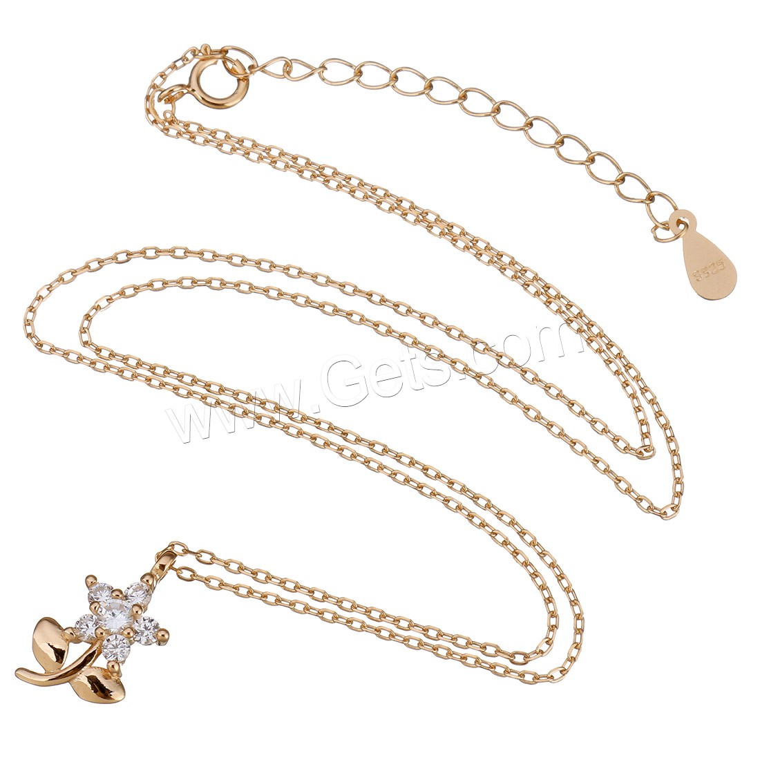 Cubic Zirconia Sterling Silver Necklace, 925 Sterling Silver, with 2Inch extender chain, plated, oval chain & different styles for choice & for woman & with cubic zirconia, 9-11.5x12-15mm, 1.2mm, Length:Approx 16 Inch, Sold By Strand