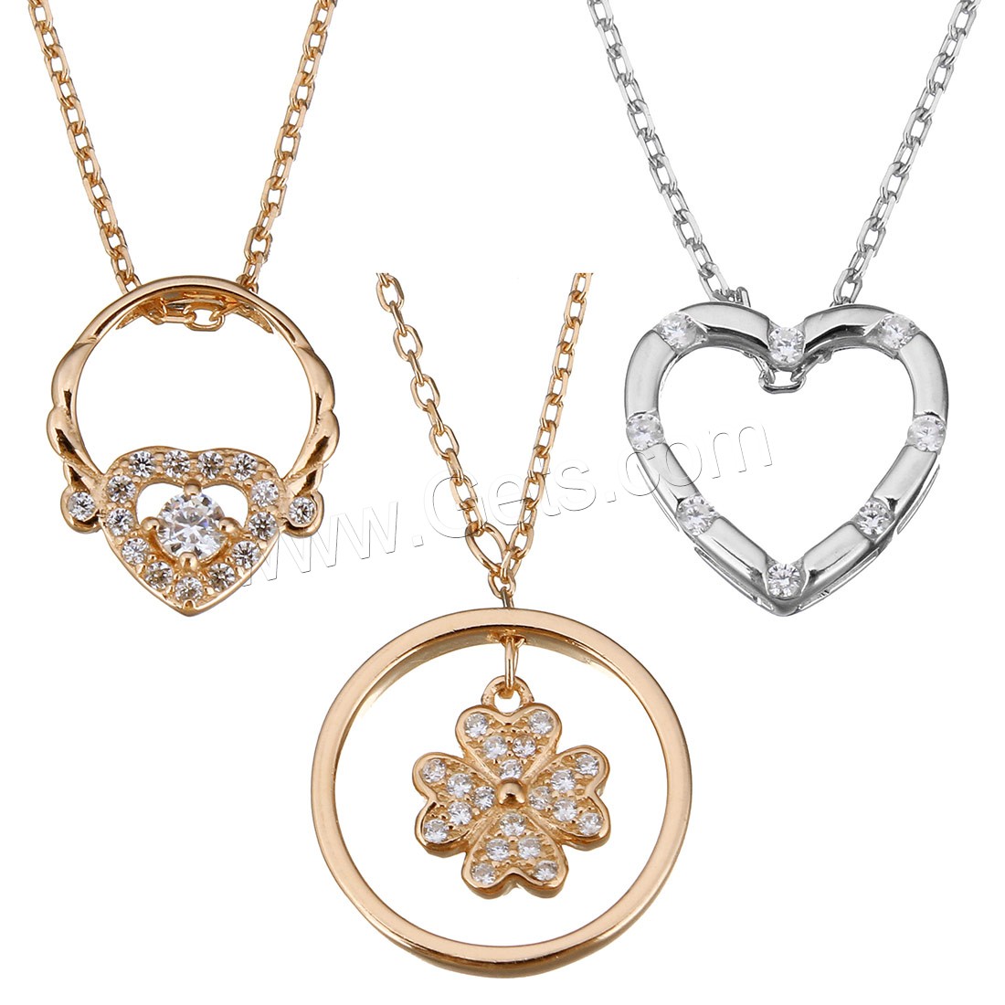 Cubic Zirconia Sterling Silver Necklace, 925 Sterling Silver, with 1.5-2Inch extender chain, plated, oval chain & different styles for choice & for woman & with cubic zirconia, 11-15x11-13mm,1.2mm, Length:Approx 15-16 Inch, Sold By Strand