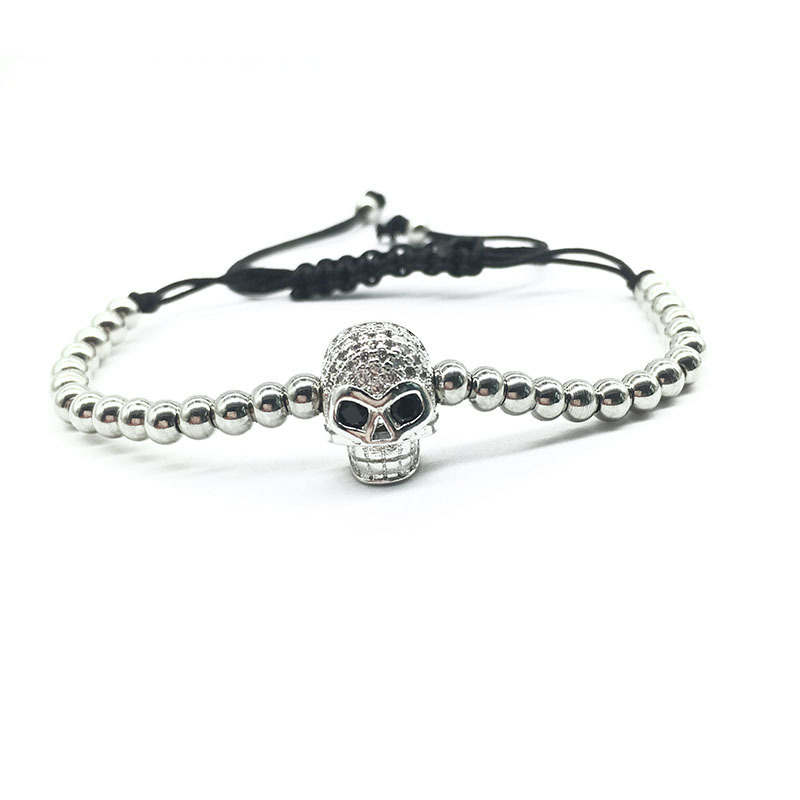 Cubic Zirconia Zinc Alloy Bracelet, with Knot Cord, Skull, plated, fashion jewelry & micro pave cubic zirconia, more colors for choice, 13*10mm,4mm, Length:Approx 23 cm, Sold By PC