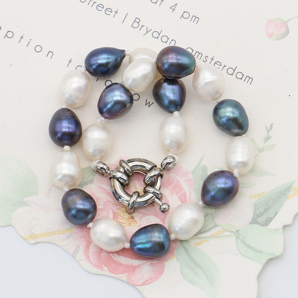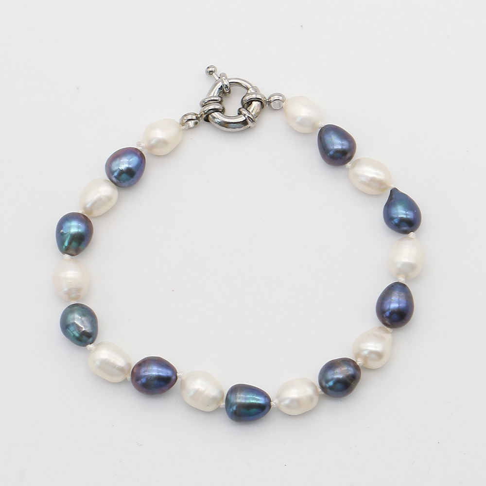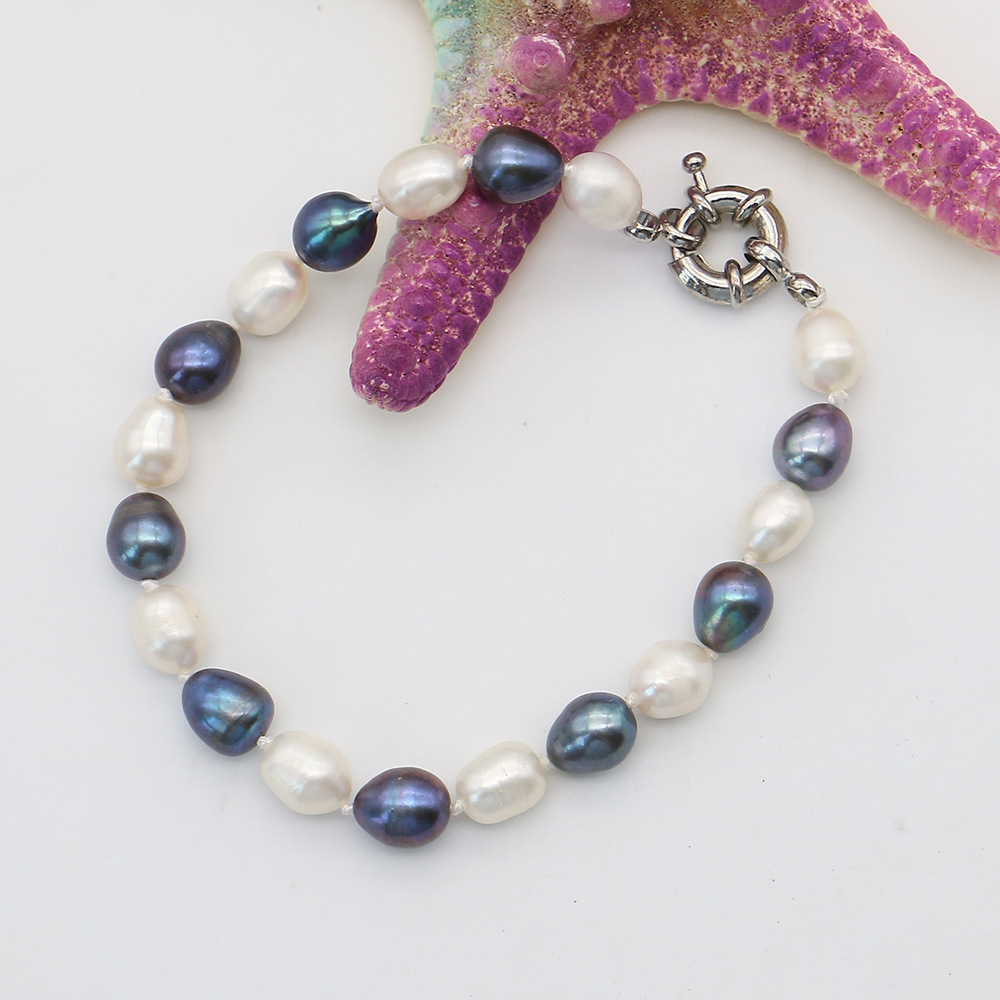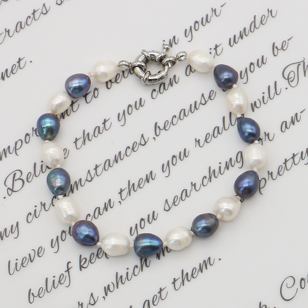 Cultured Freshwater Pearl Bracelets, with 304 Stainless Steel, Baroque, fashion jewelry, mixed colors, 6-7mm, Length:17 cm, Sold By PC