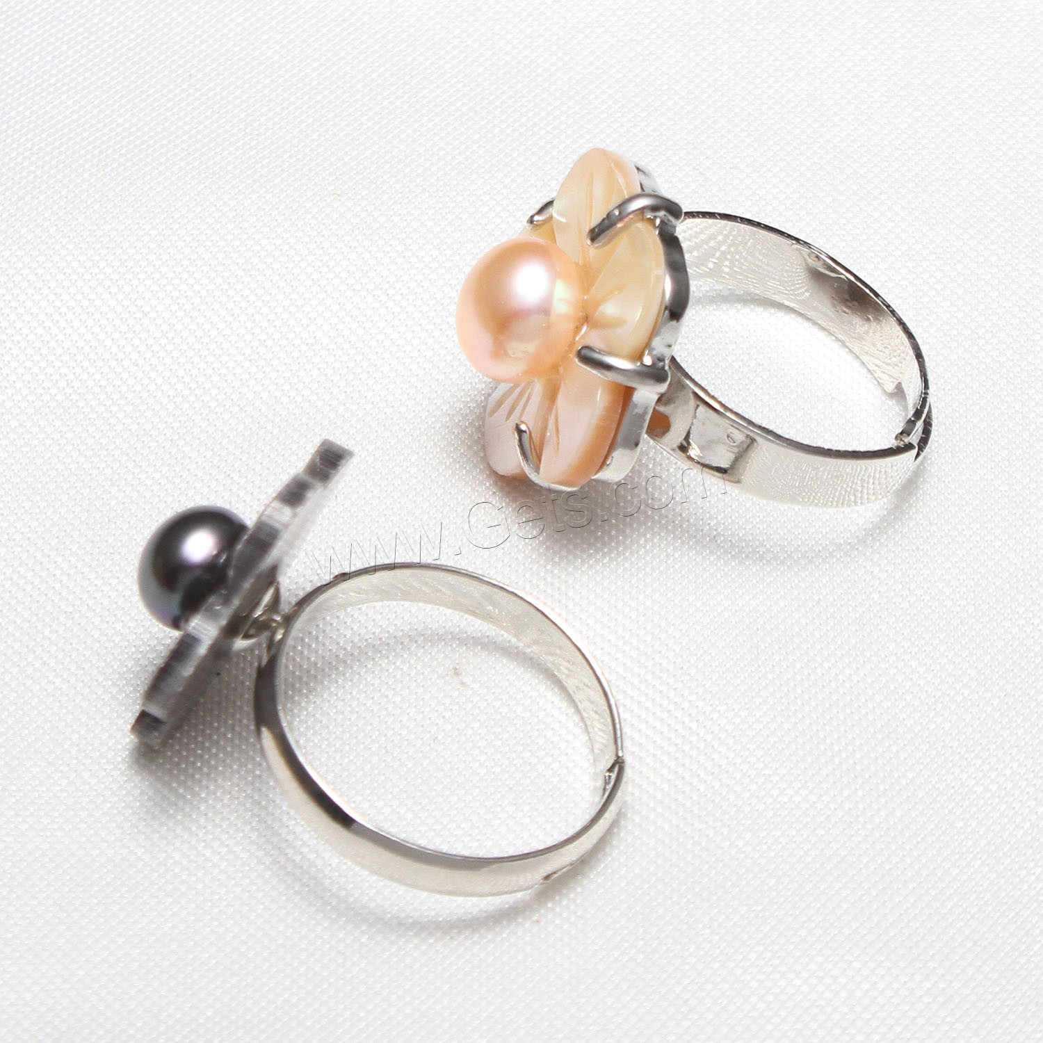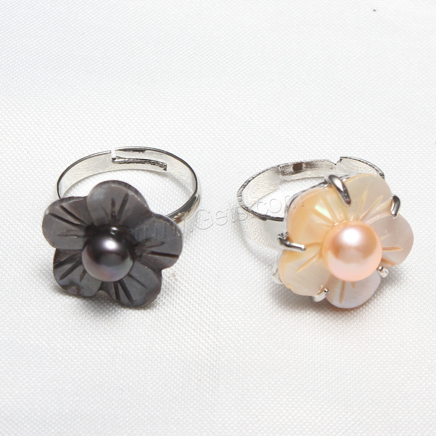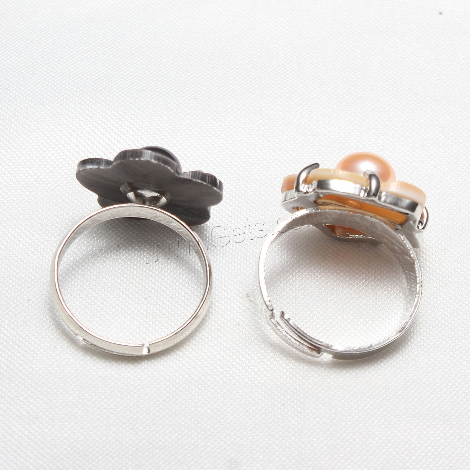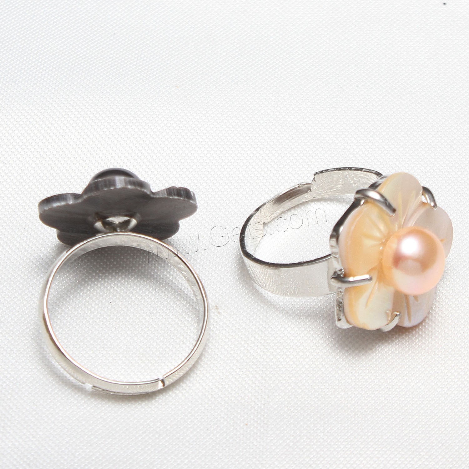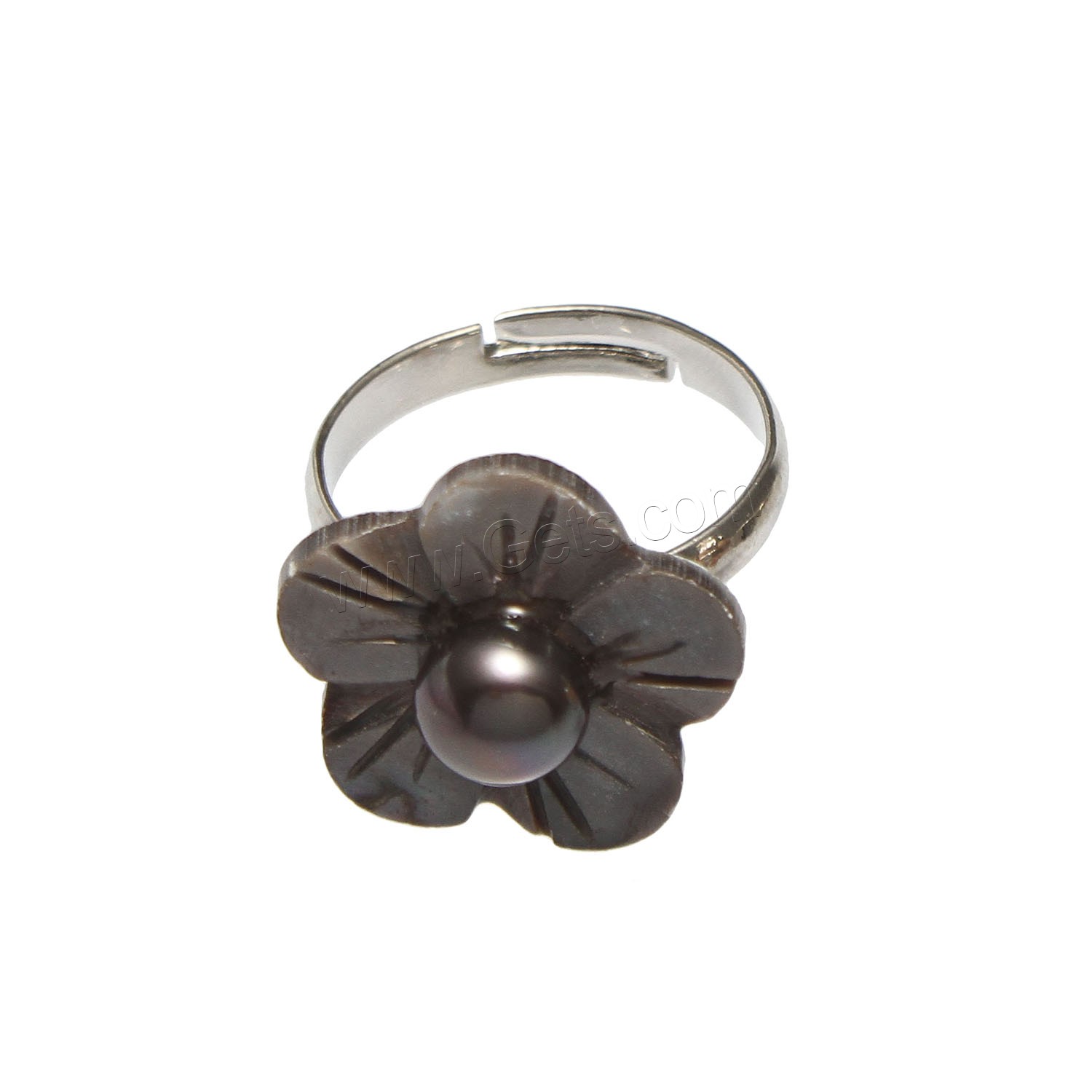 Cultured Freshwater Pearl Finger Ring, with Shell & Brass, Flower, silver color plated, adjustable & for woman, more colors for choice, 17x7mm, US Ring Size:7, Sold By PC
