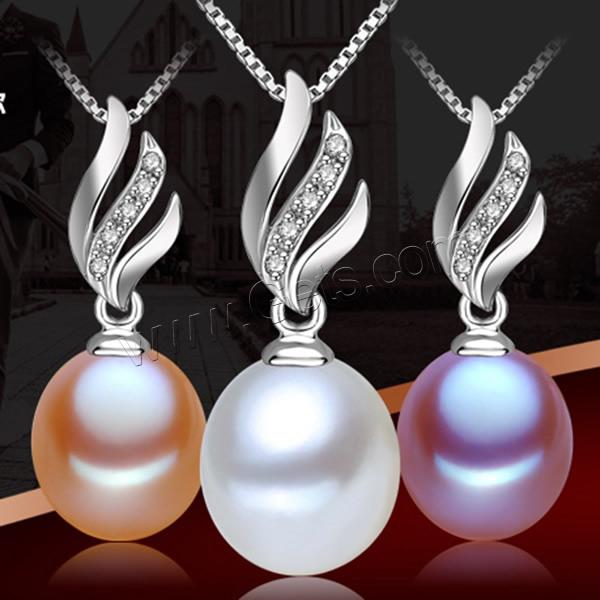 Cultured Freshwater Pearl Brass Pendant, with Brass, Rice, natural, with cubic zirconia, mixed colors, 9-10mm, Hole:Approx 2-5mm, Sold By PC