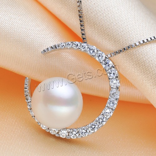 Cultured Freshwater Pearl Brass Pendant, with Brass, Moon, natural, micro pave cubic zirconia, white, 9-10mm, Hole:Approx 1-3mm, 10PCs/Bag, Sold By Bag