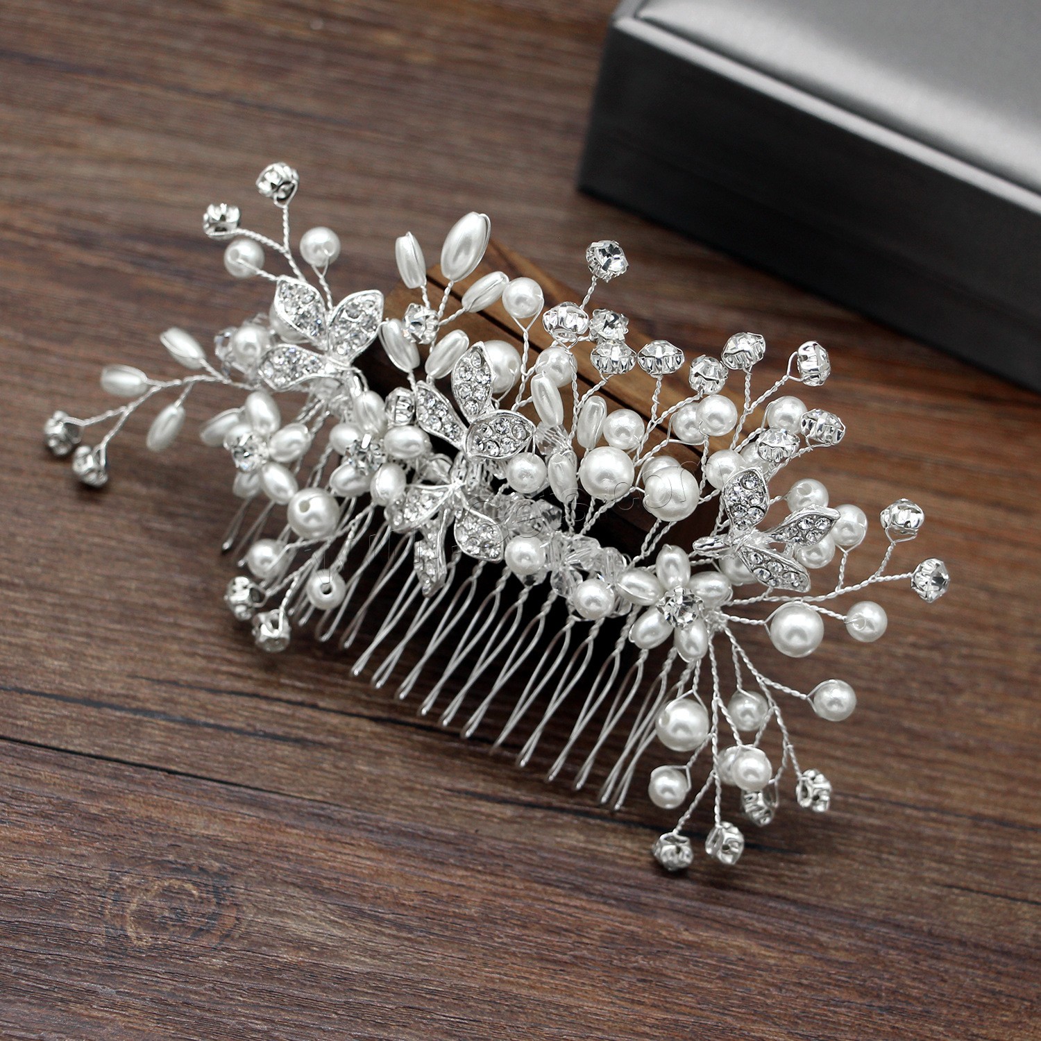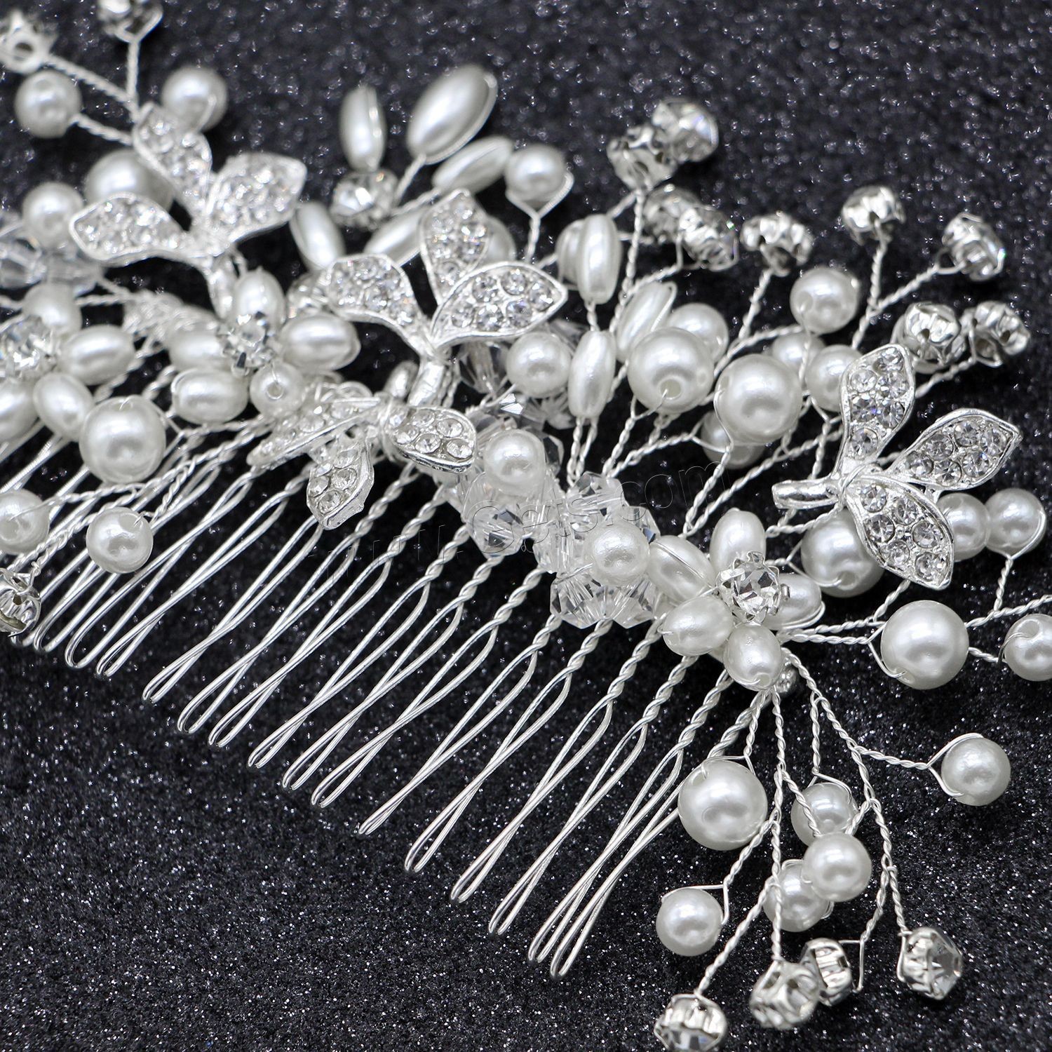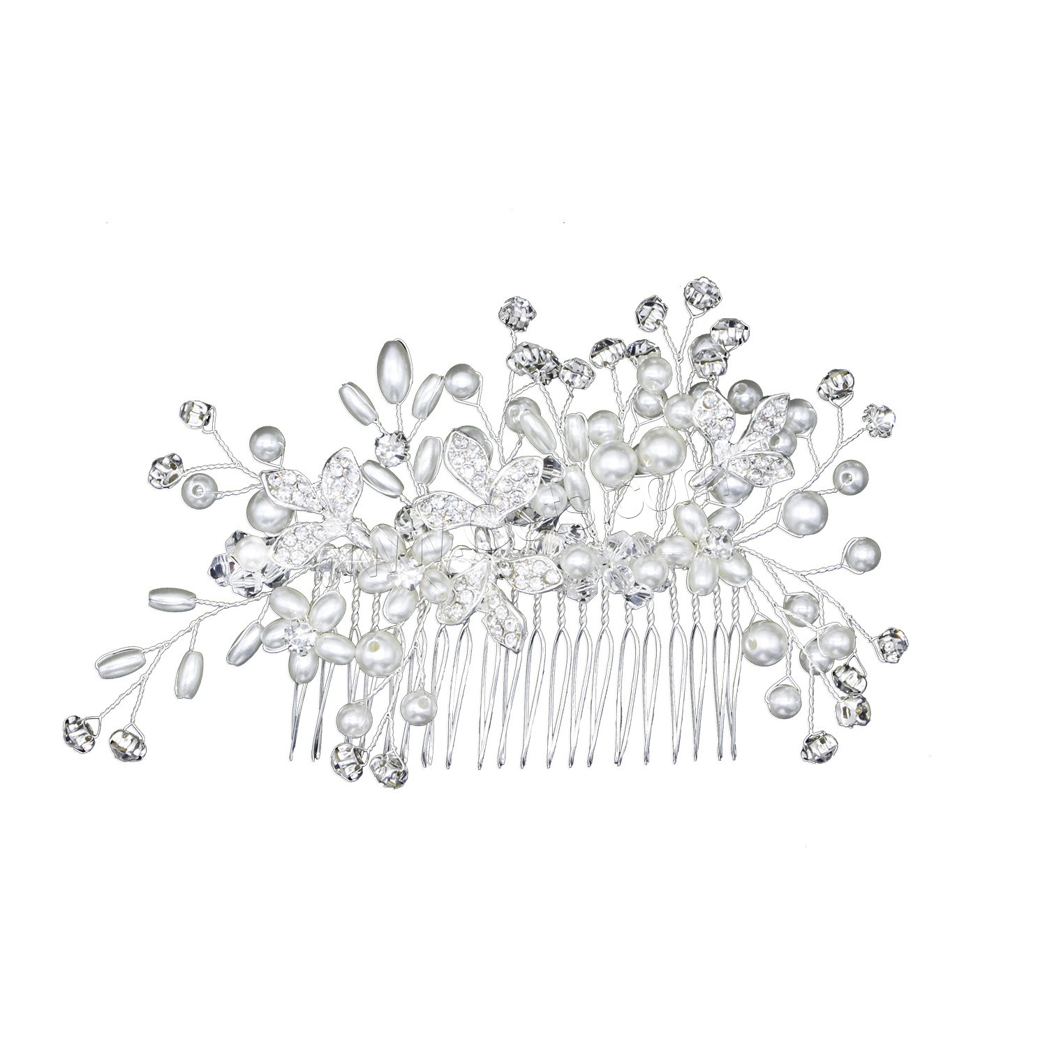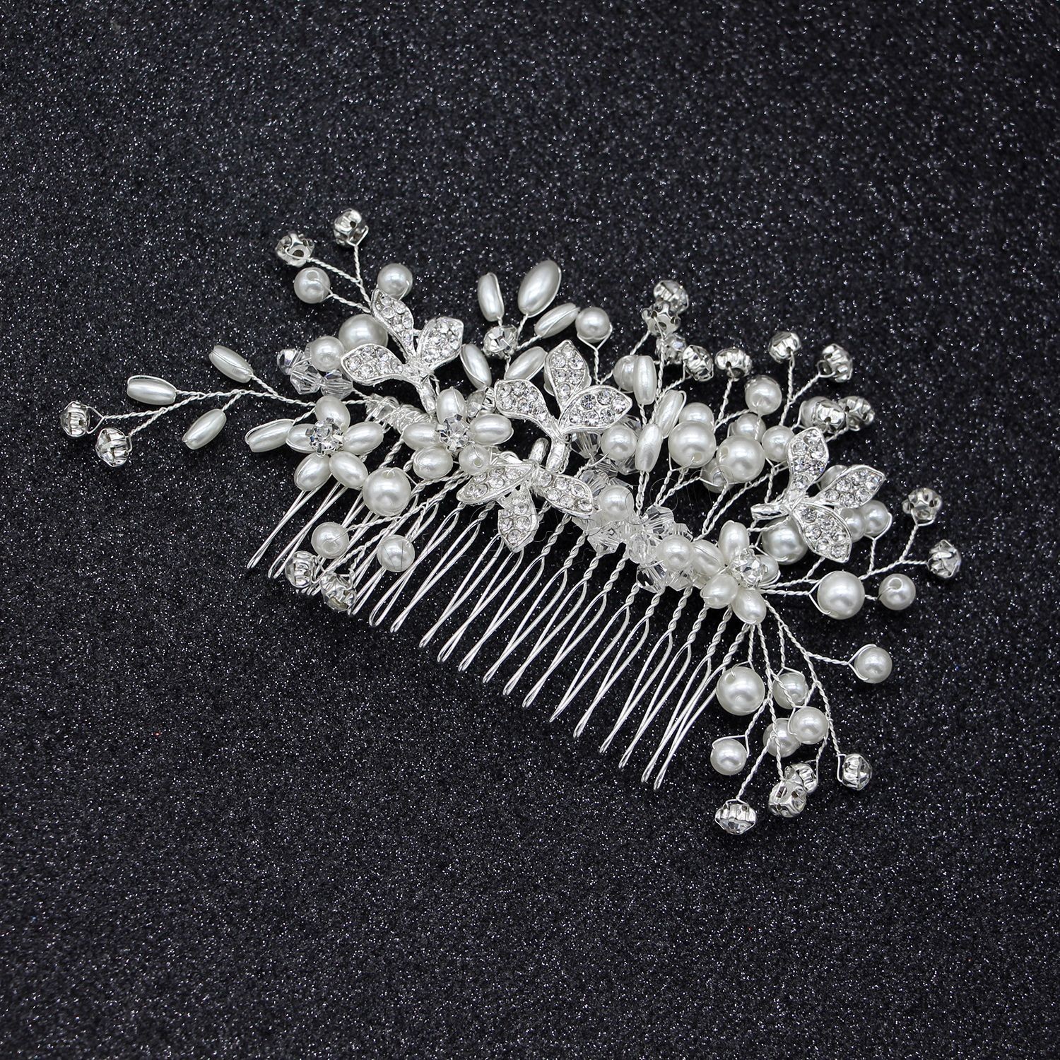 Decorative Hair Combs, Zinc Alloy, with Plastic Pearl, fashion jewelry & for woman & with rhinestone, silver color, 150x70mm, Sold By PC