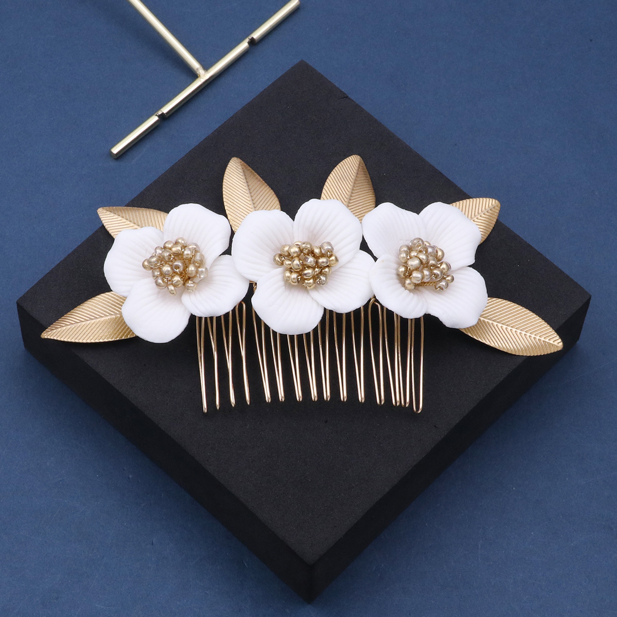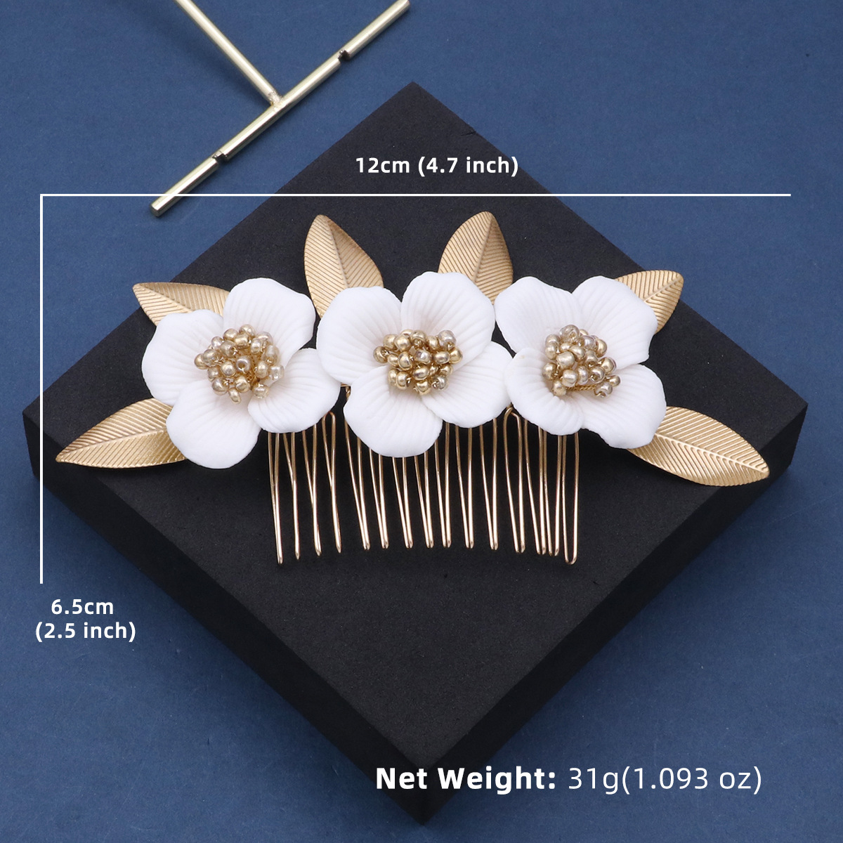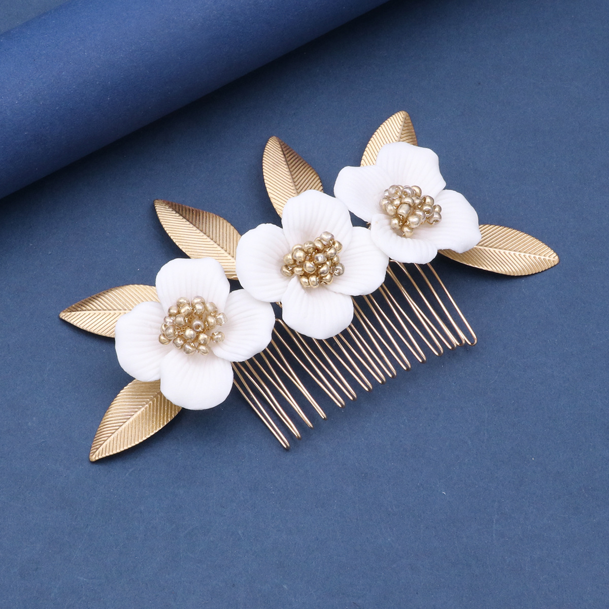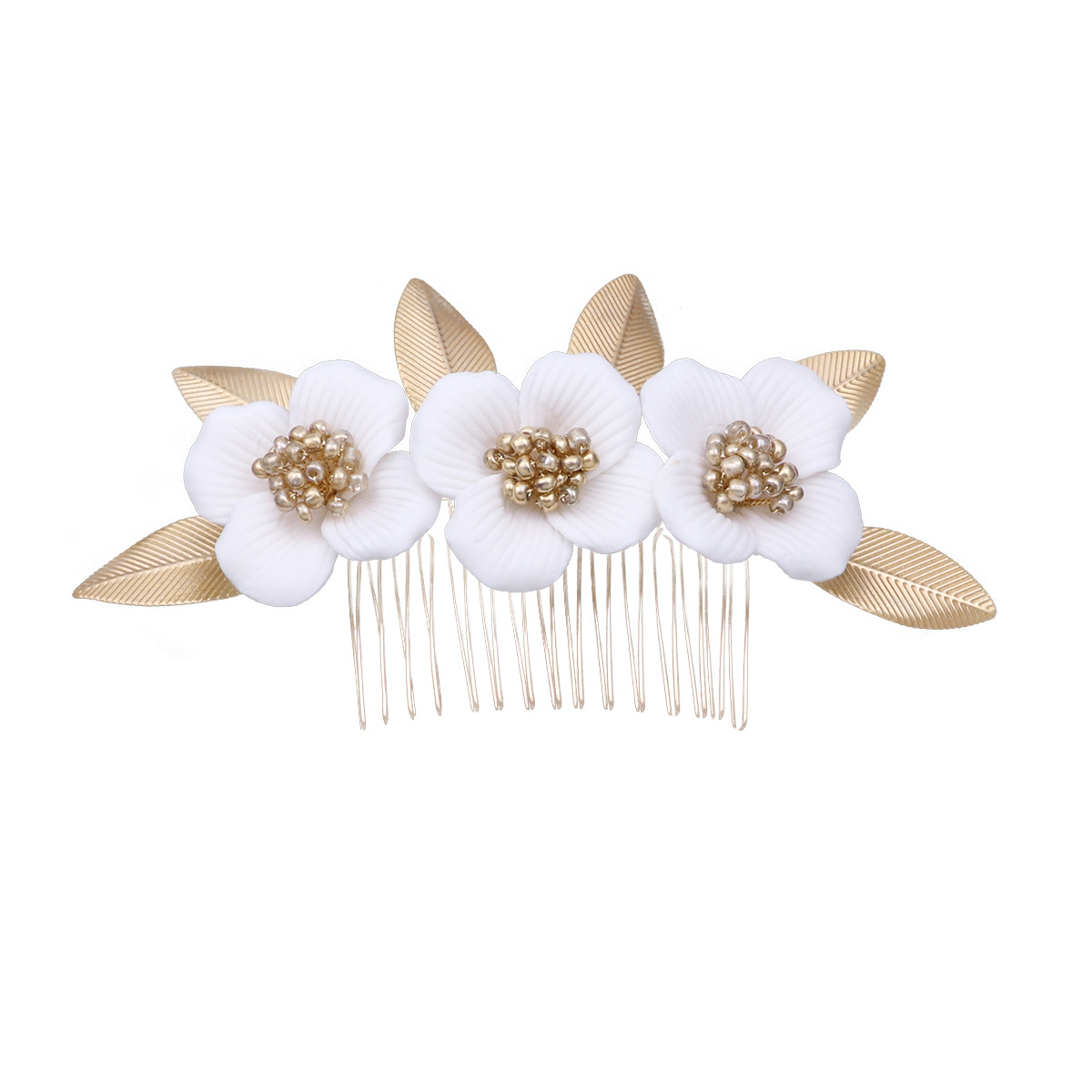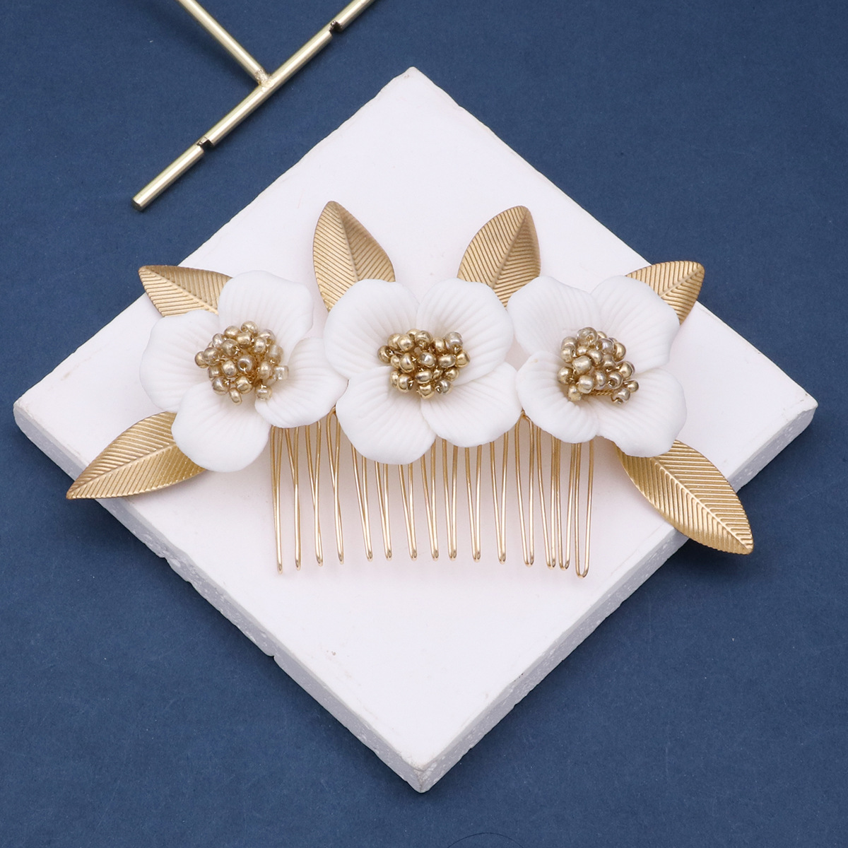 Decorative Hair Combs, Zinc Alloy, with Seedbead & Polymer Clay, handmade, fashion jewelry & different styles for choice & for woman, golden, Sold By PC
