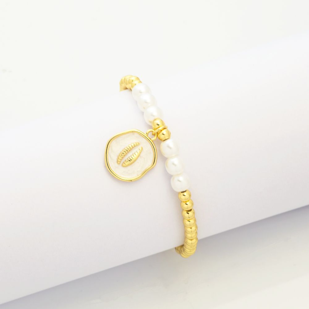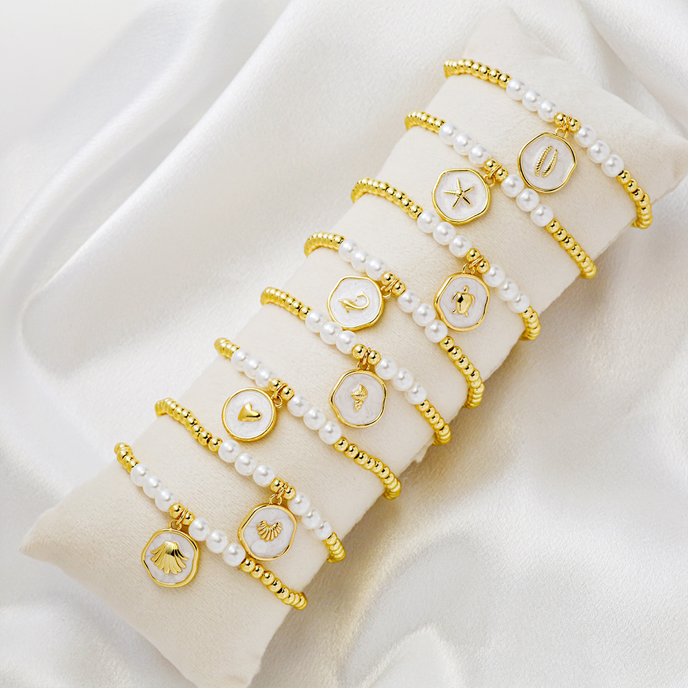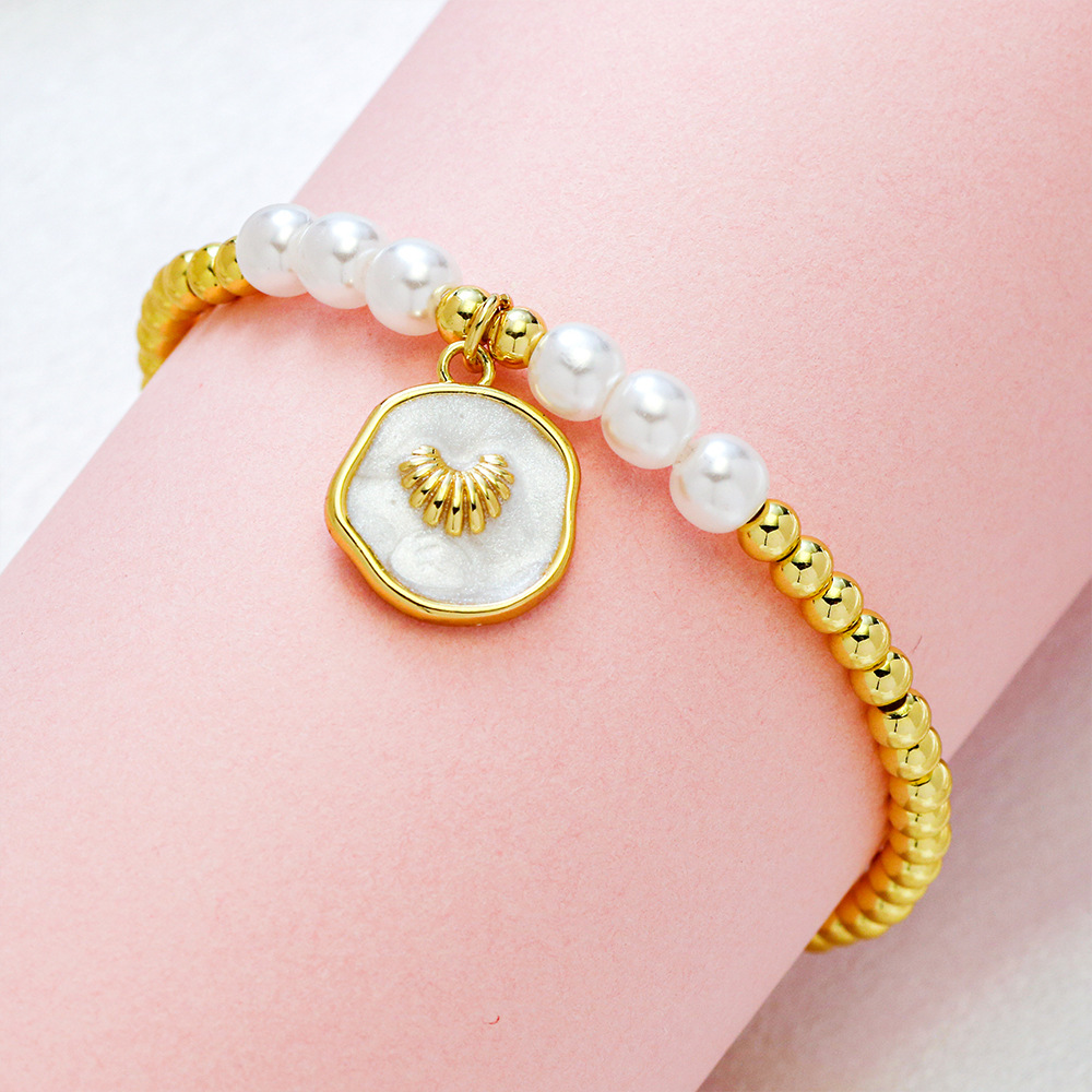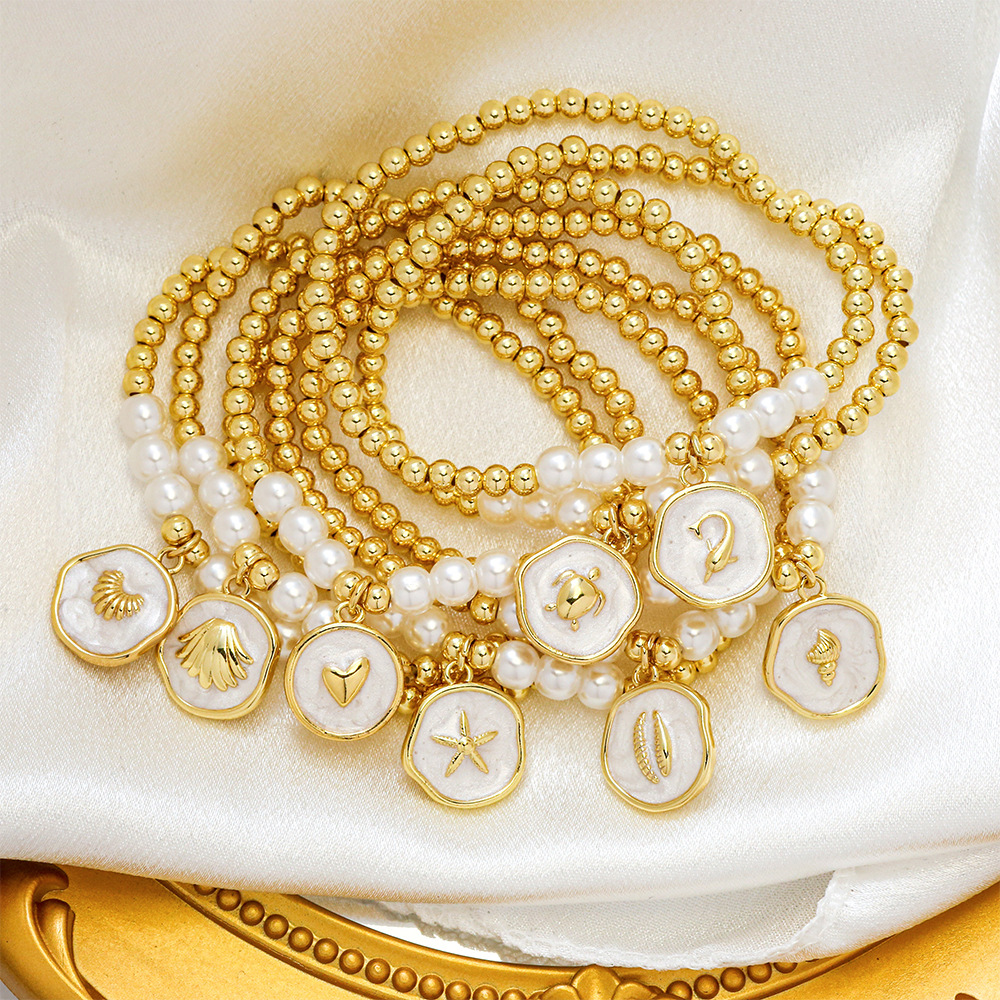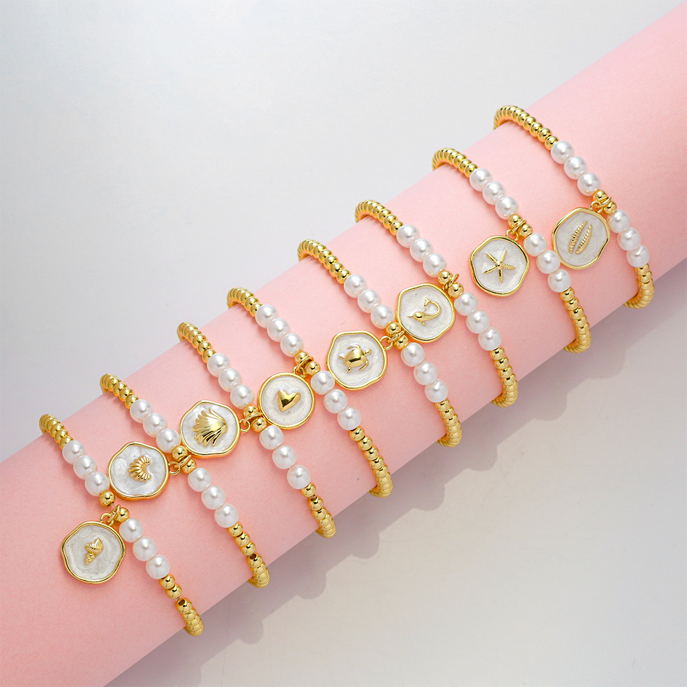 Enamel Brass Bracelets, with Plastic Pearl, gold color plated, different designs for choice & for woman, more colors for choice, Sold By PC