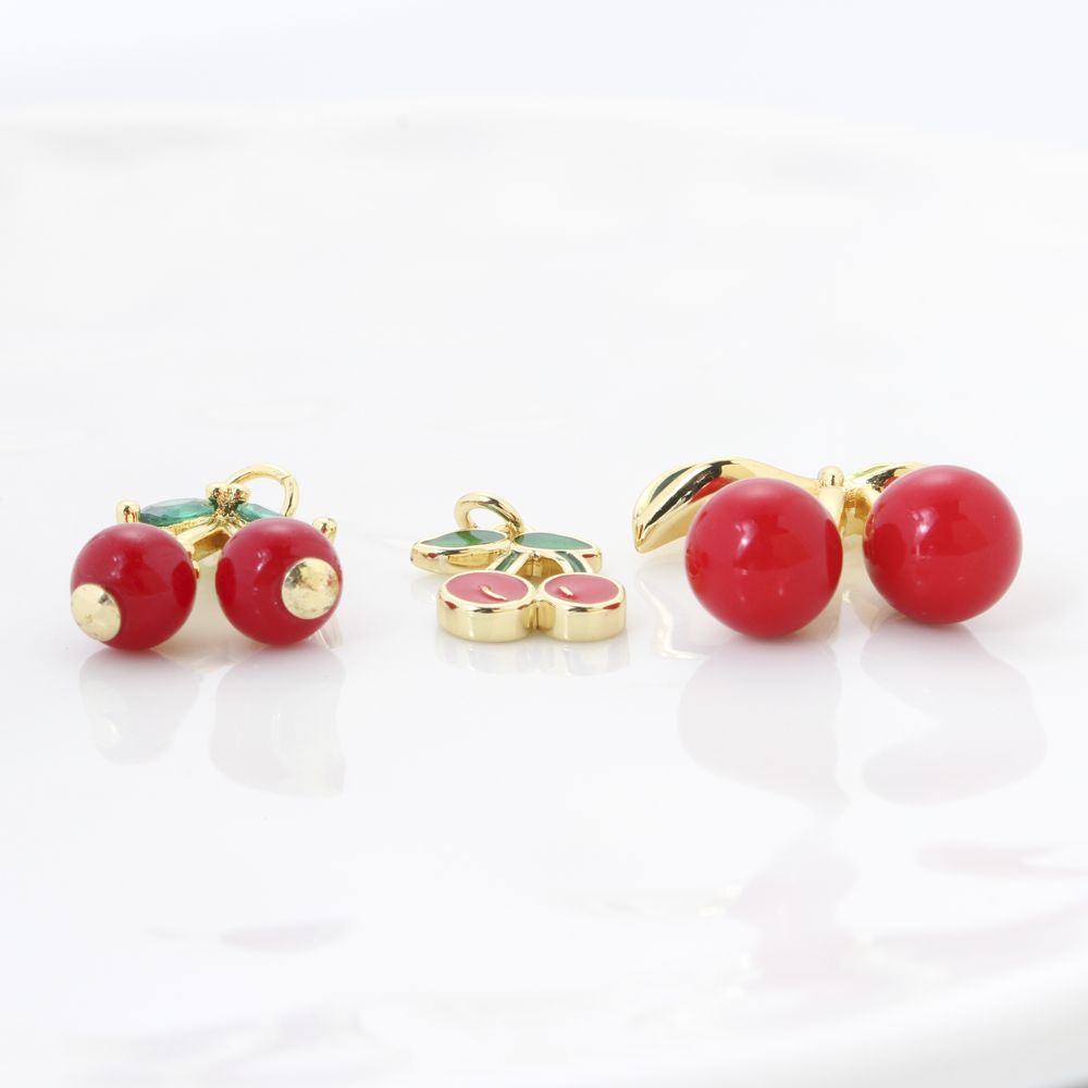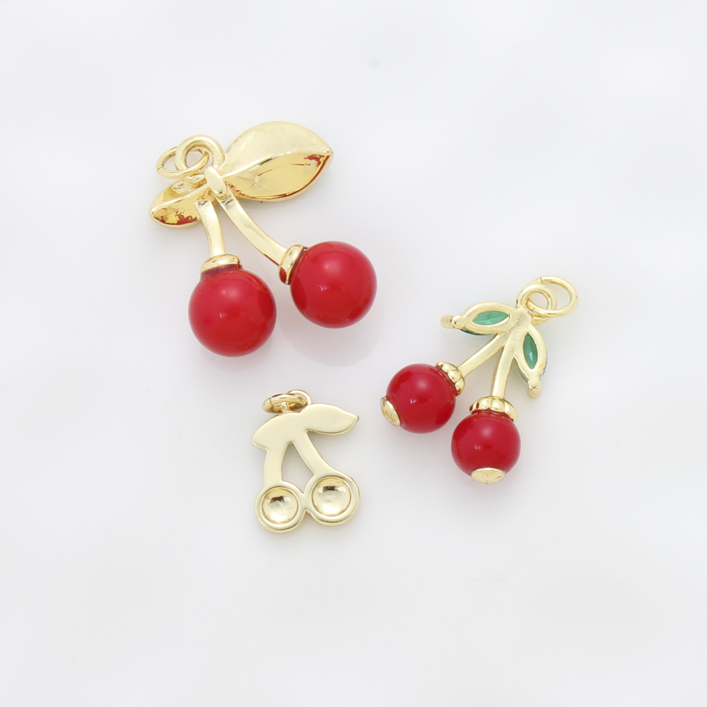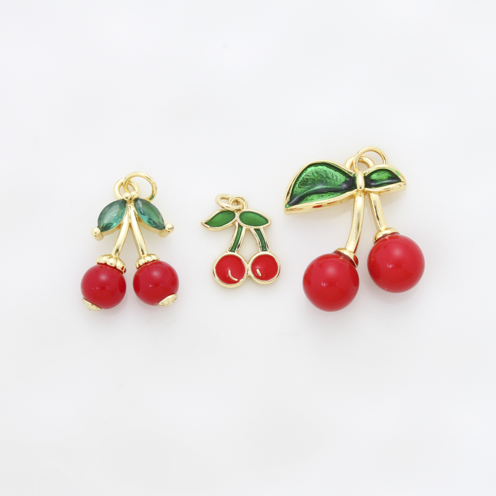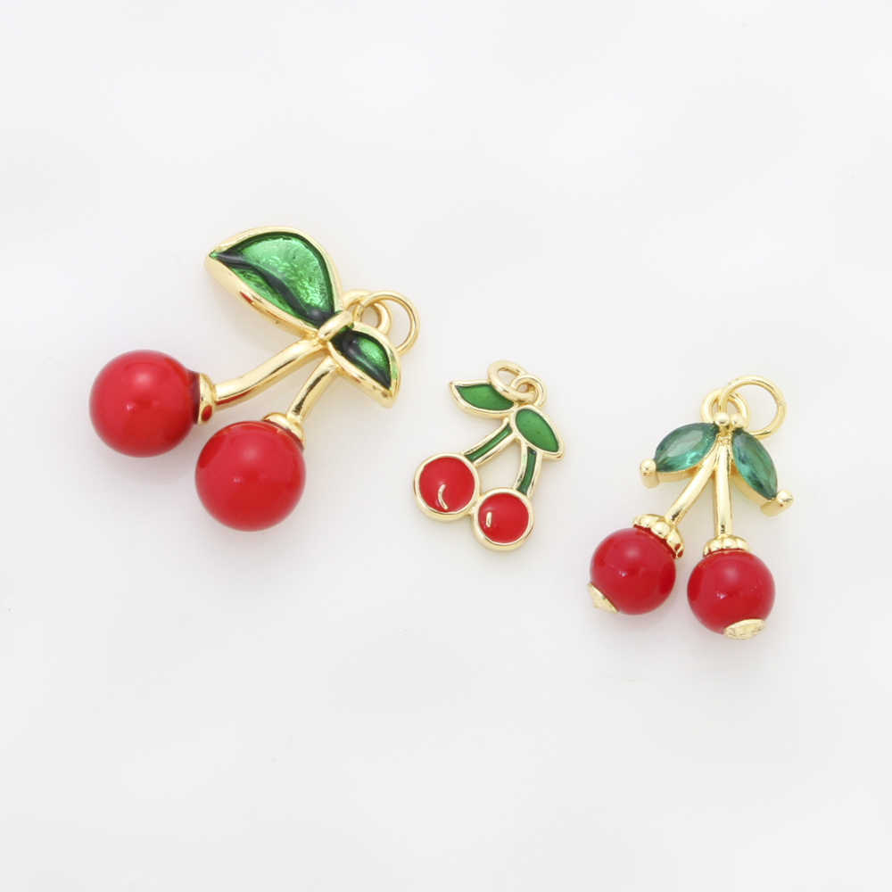 Enamel Brass Pendants, Cherry, plated, DIY & micro pave cubic zirconia, more colors for choice, 21.1x17.7x8mm, Sold By PC