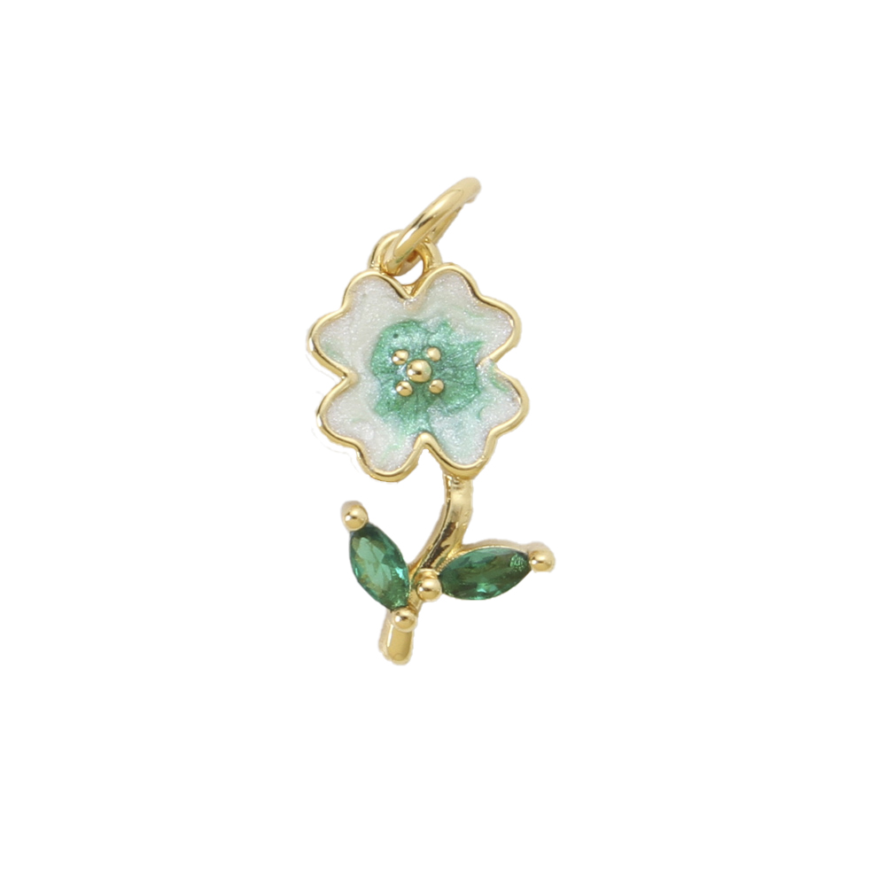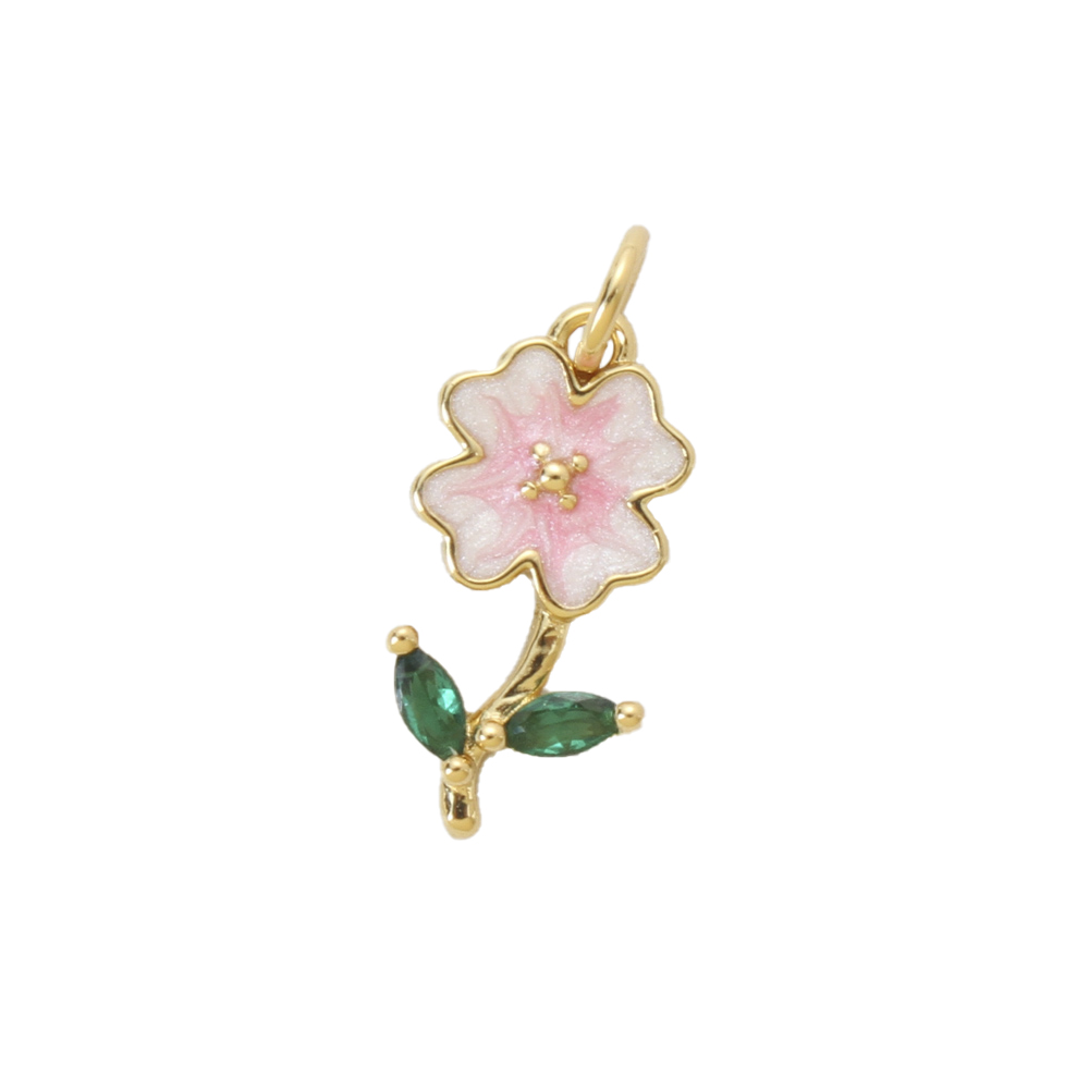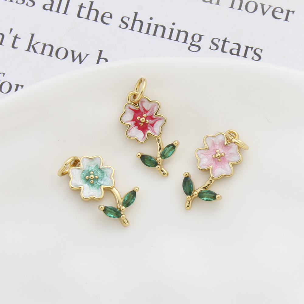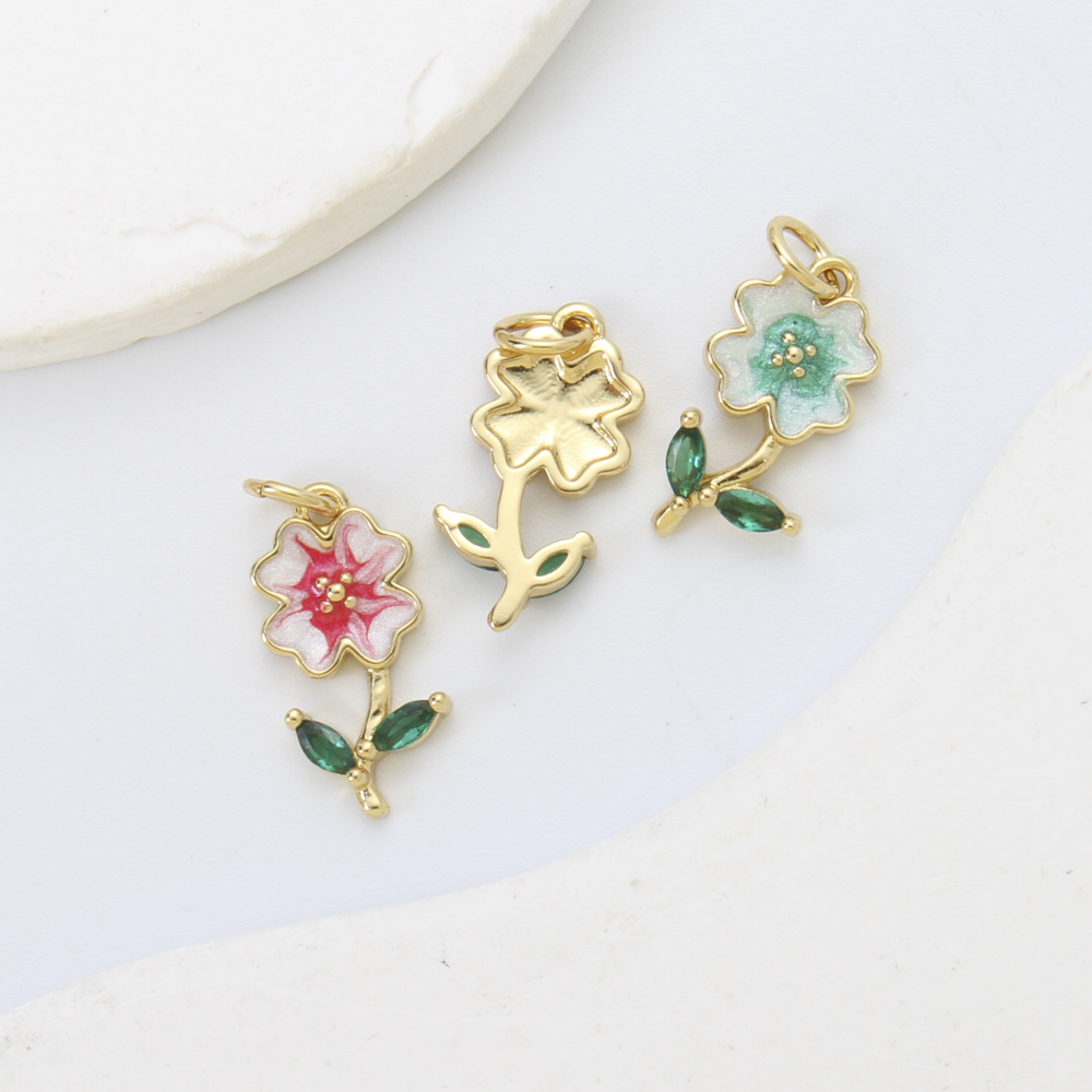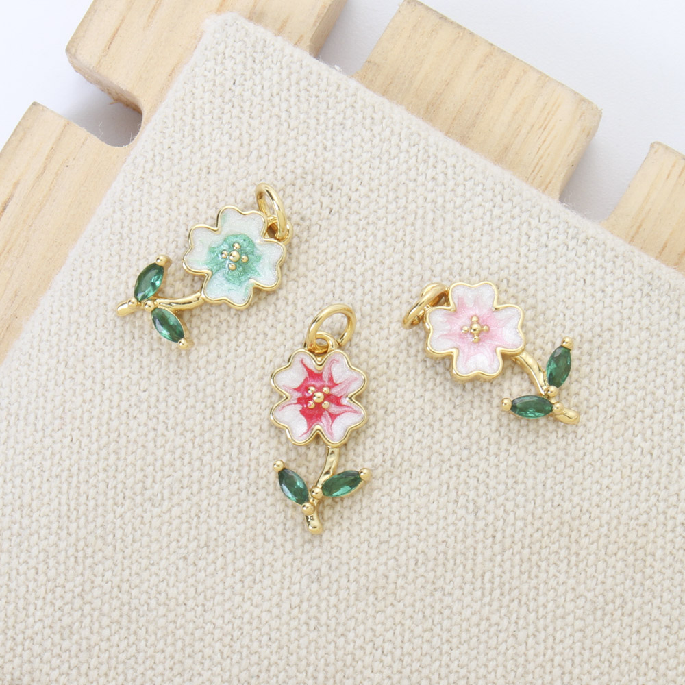 Enamel Brass Pendants, Flower, plated, DIY & micro pave cubic zirconia, more colors for choice, 17x8.5x2.7mm, Sold By PC