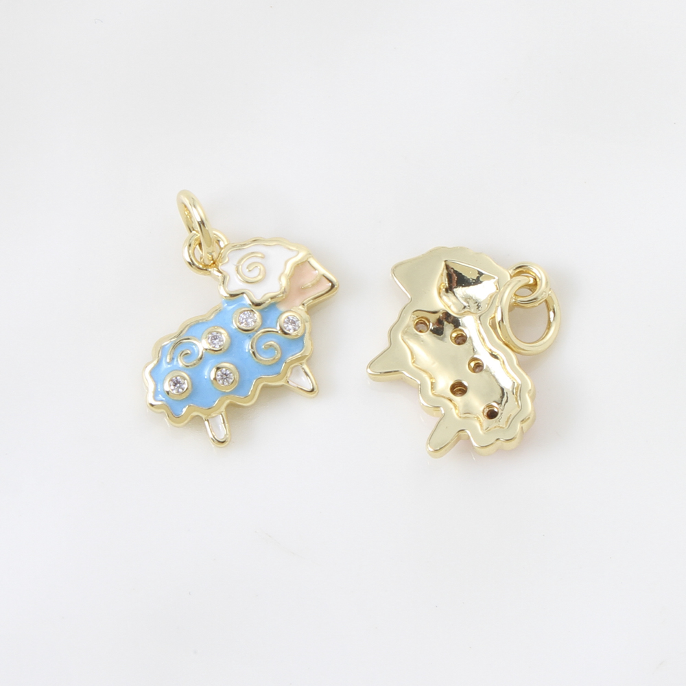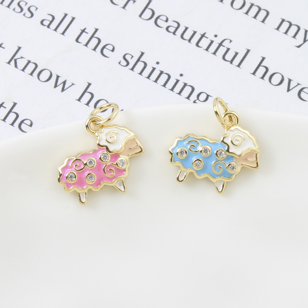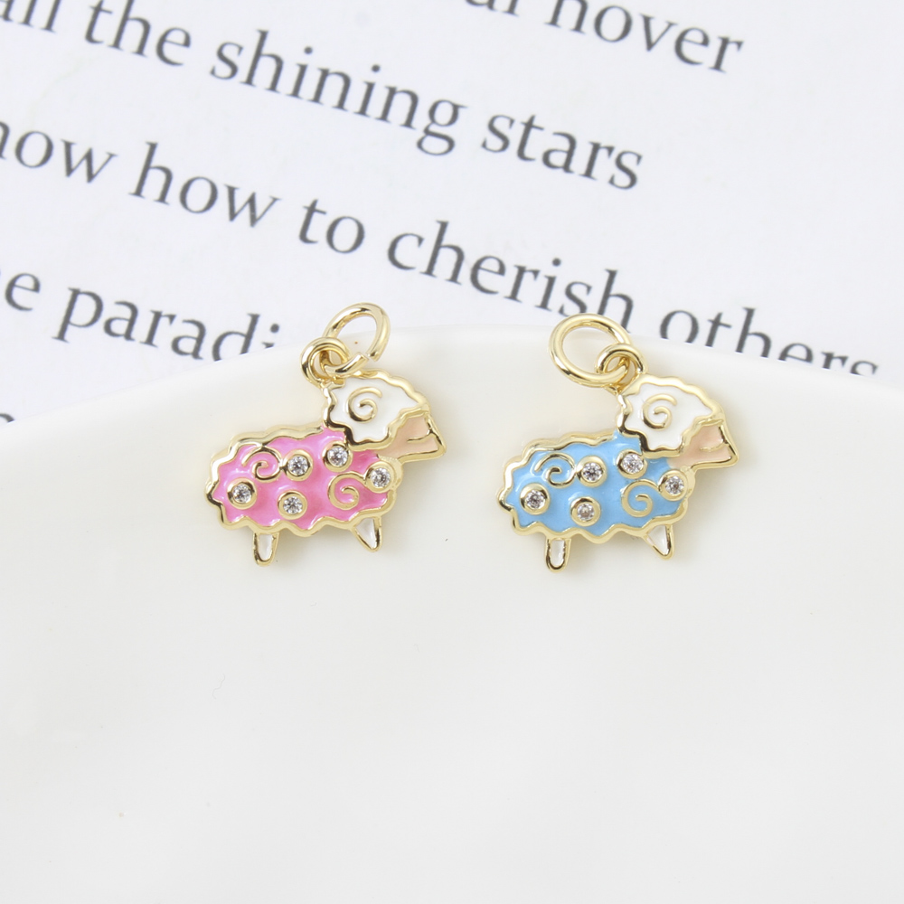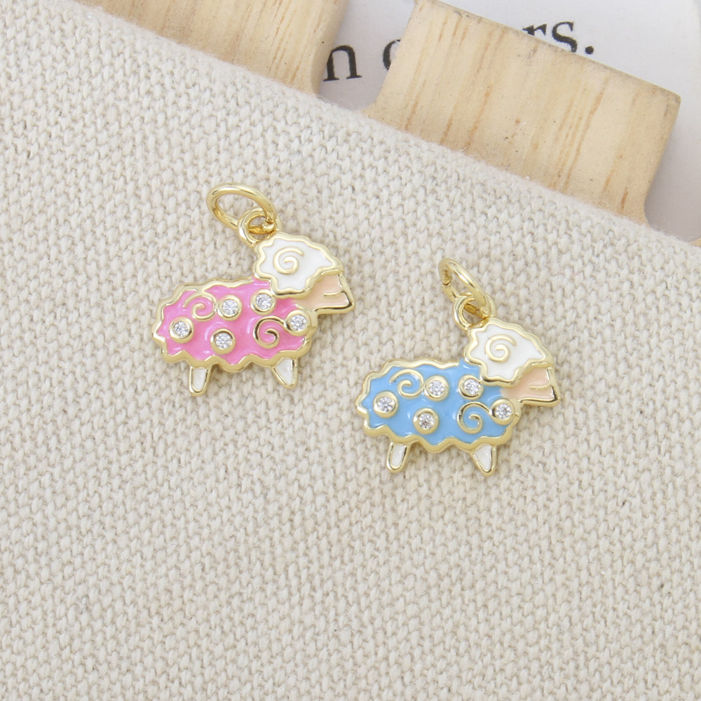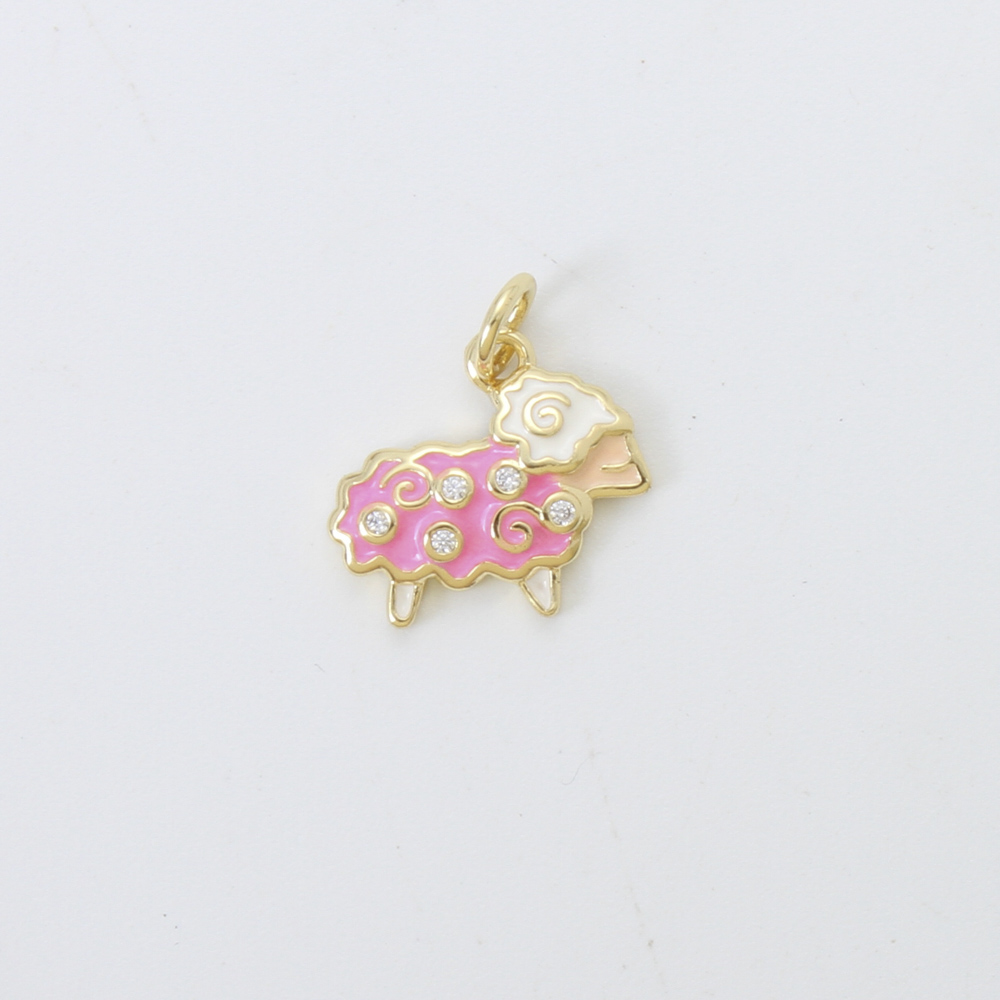 Enamel Brass Pendants, Sheep, plated, DIY & micro pave cubic zirconia, more colors for choice, 12.7x14x2.4mm, Sold By PC