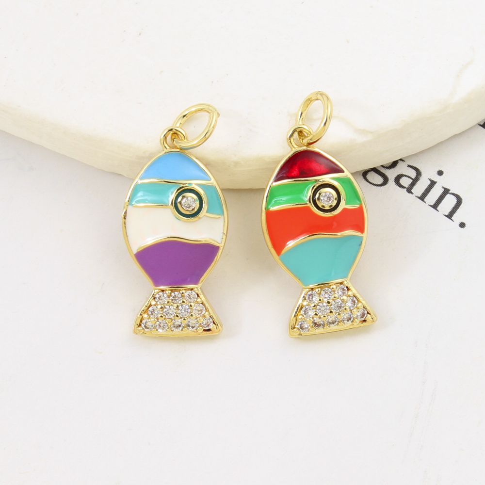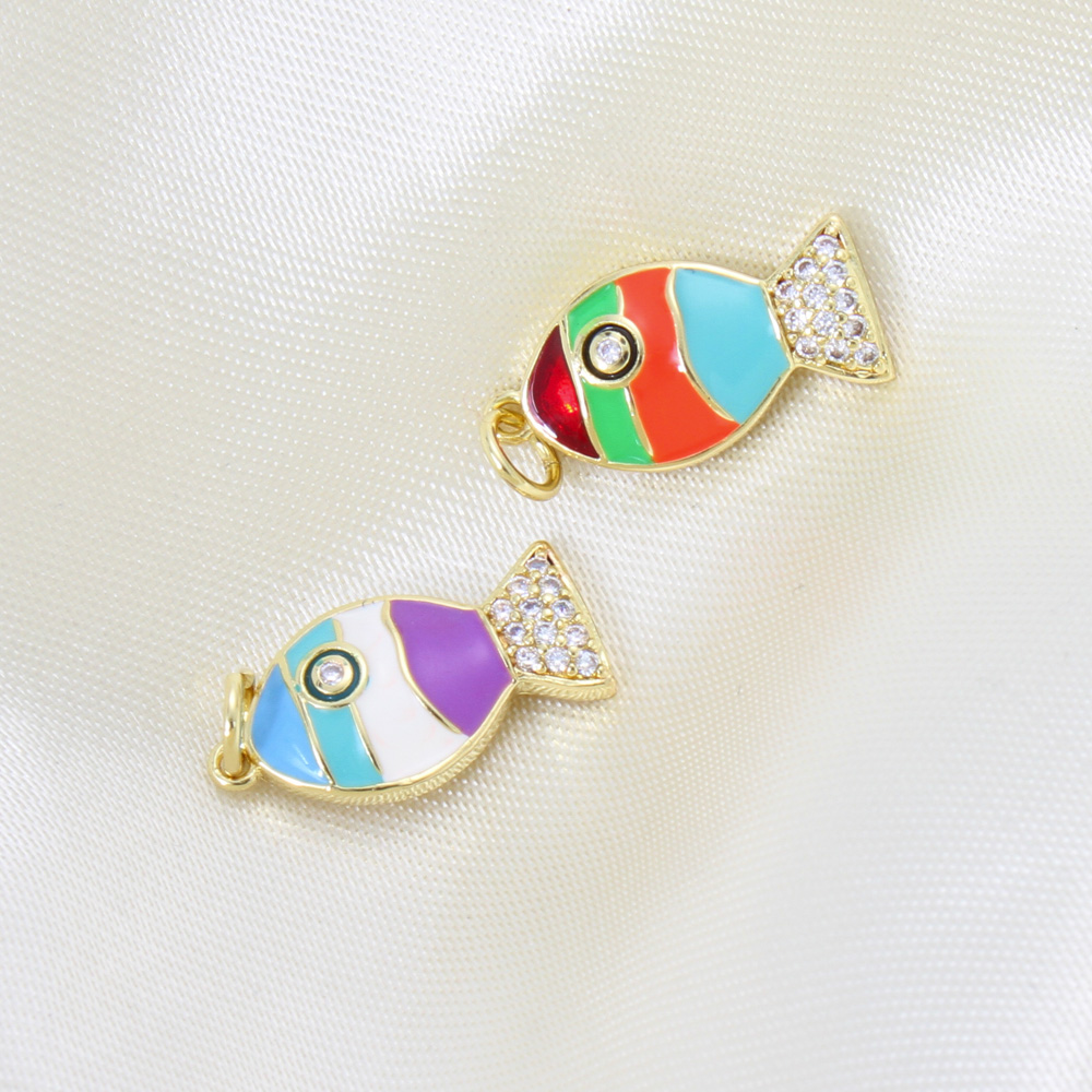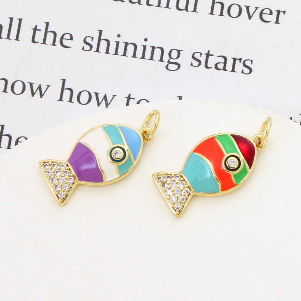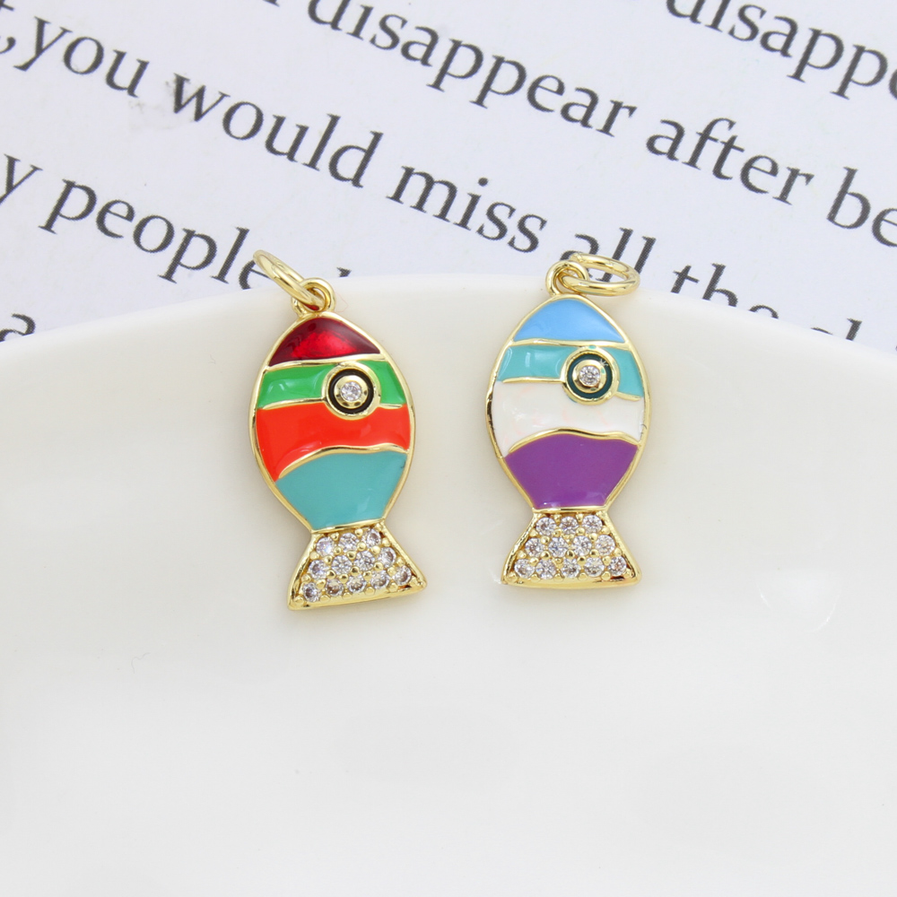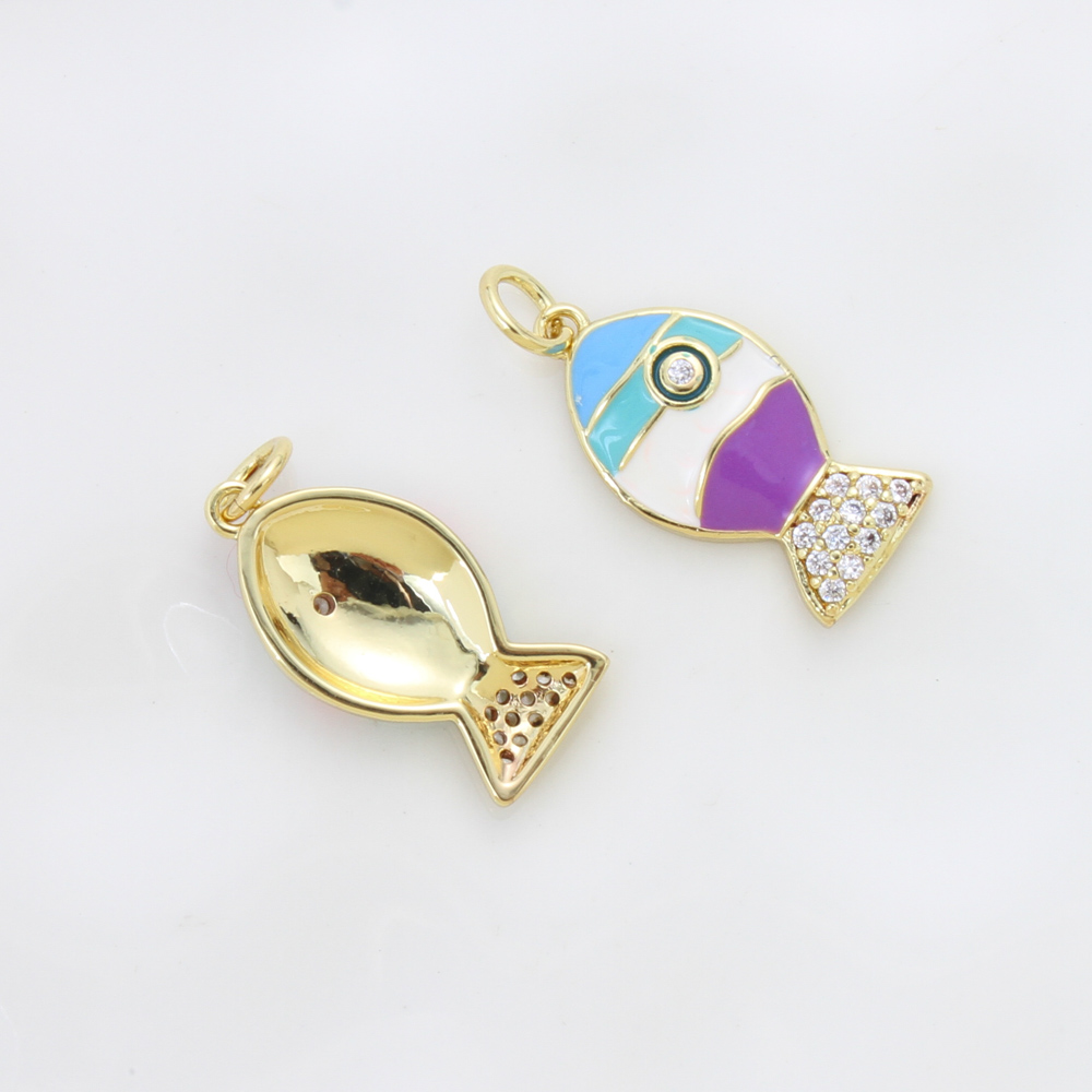 Enamel Brass Pendants, Fish, plated, DIY & micro pave cubic zirconia, more colors for choice, 19x9.5x2.8mm, Sold By PC