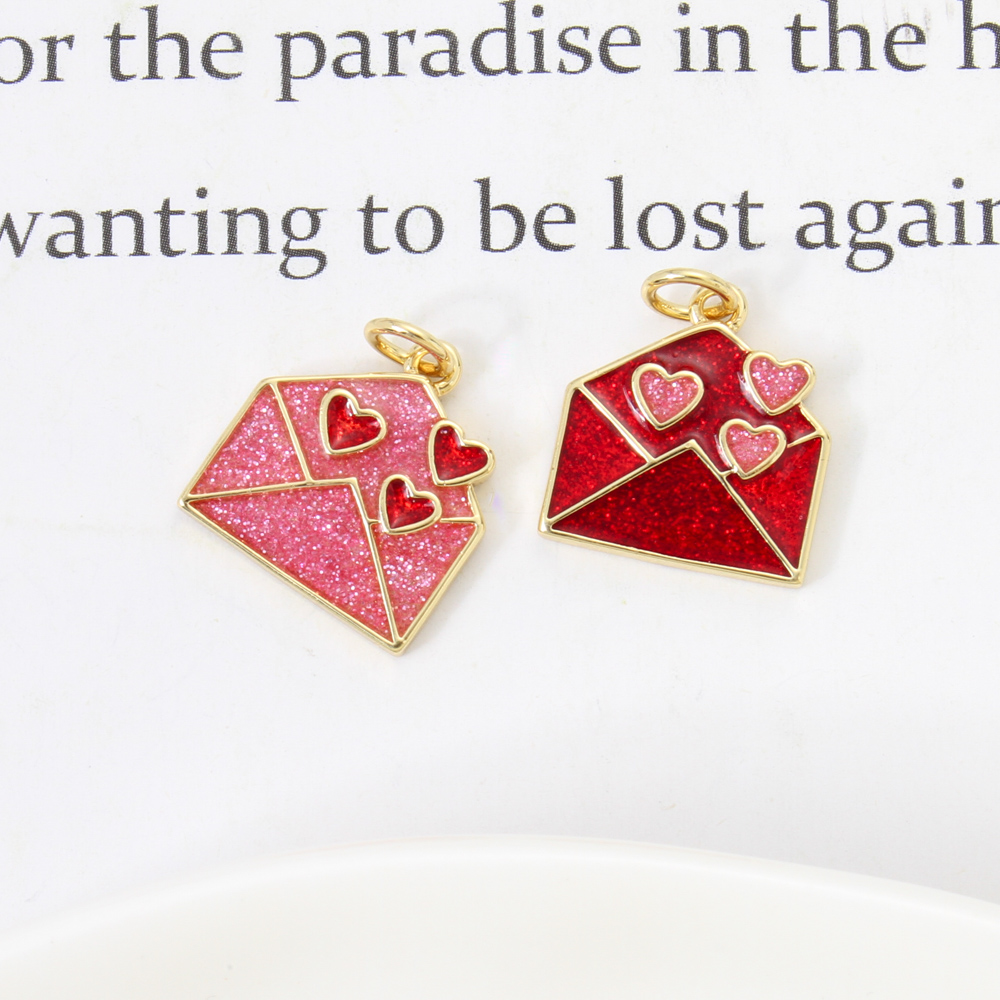 Enamel Brass Pendants, Envelope, plated, DIY, more colors for choice, 14.8x14x2.1mm, Sold By PC