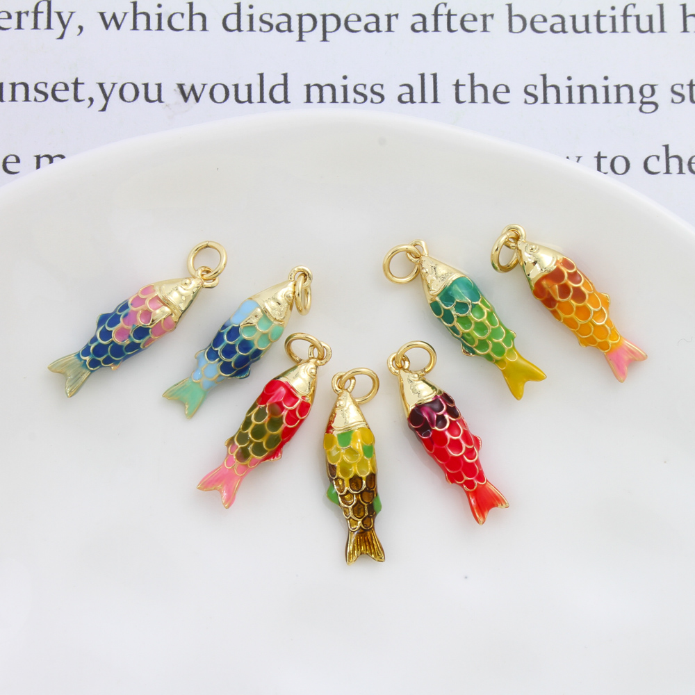 Enamel Brass Pendants, Fish, plated, DIY, more colors for choice, 22.6x6.3x4.8mm, Sold By PC