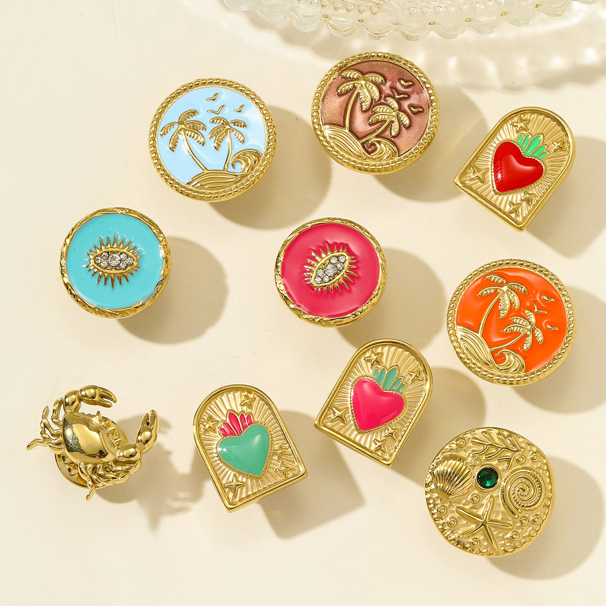 Enamel Brooch, 304 Stainless Steel, gold color plated, DIY & different styles for choice & with rhinestone, 3PCs/Bag, Sold By Bag