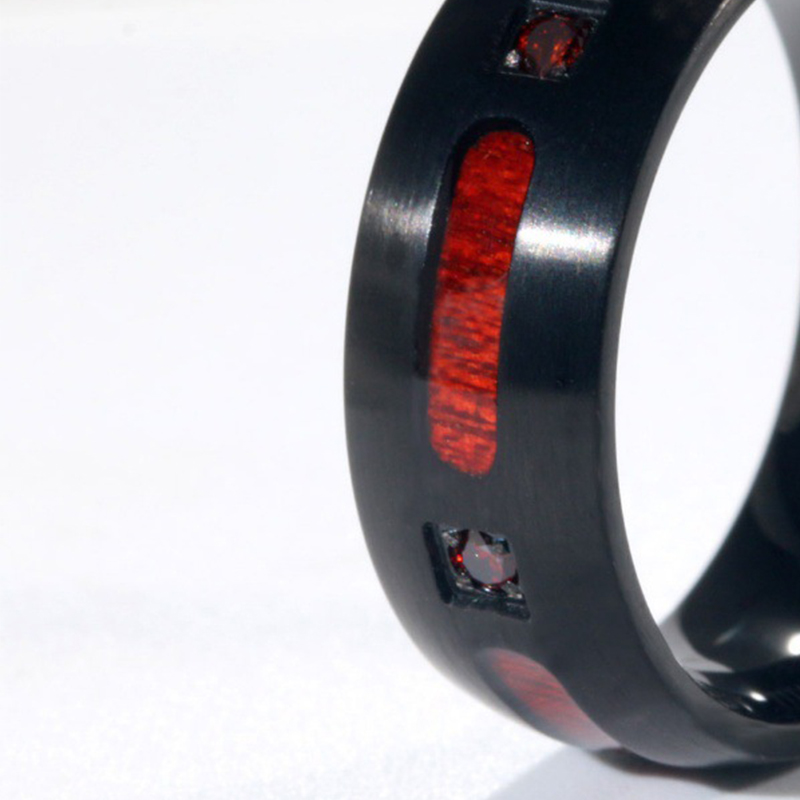 Enamel Stainless Steel Finger Ring, 304 Stainless Steel, with Wood, Vacuum Ion Plating, different size for choice & for man & with rhinestone, 8x2.5mm, US Ring Size:8-13, Sold By PC