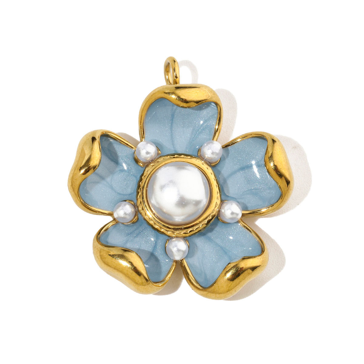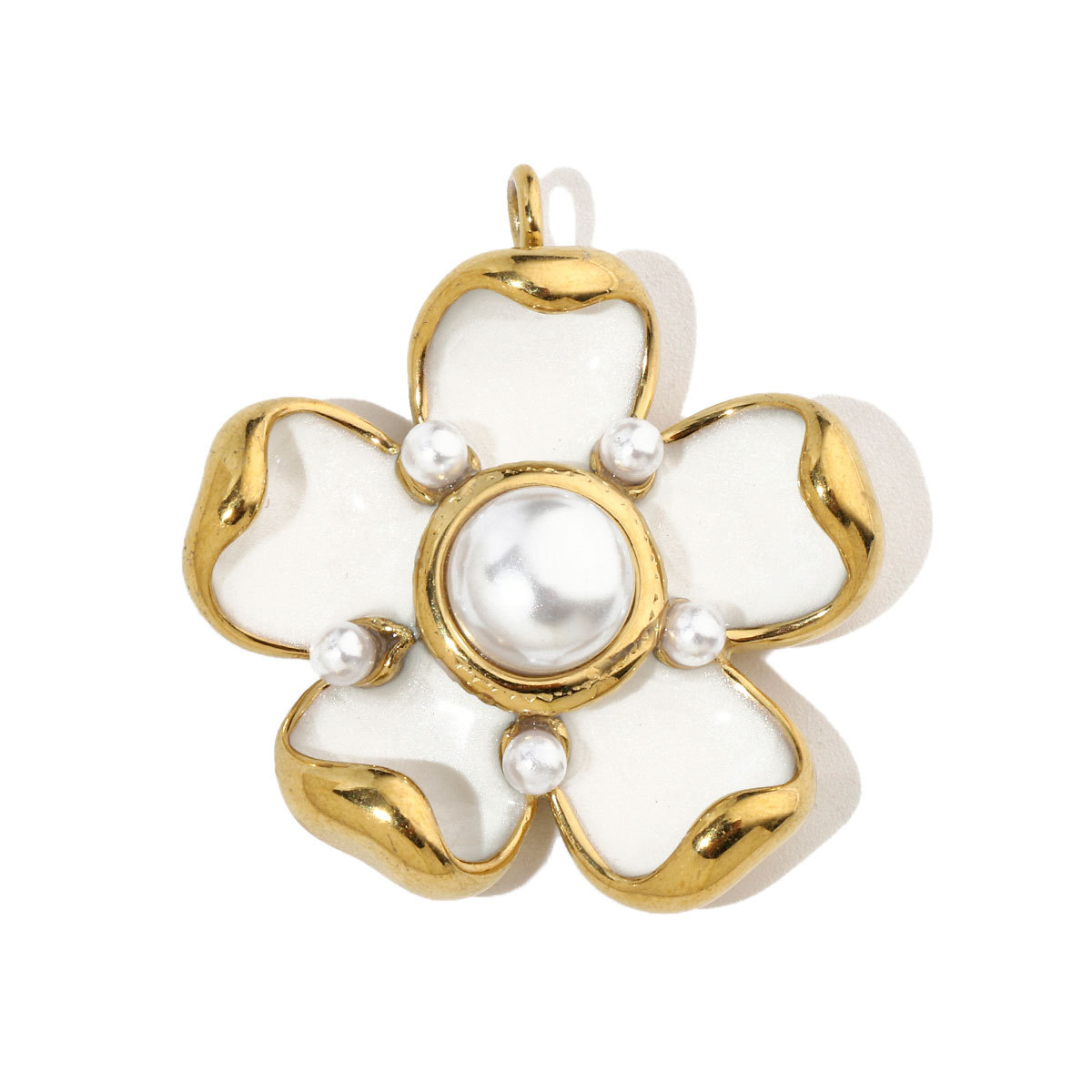 Enamel Stainless Steel Pendant, 304 Stainless Steel, with Plastic Pearl, gold color plated, DIY