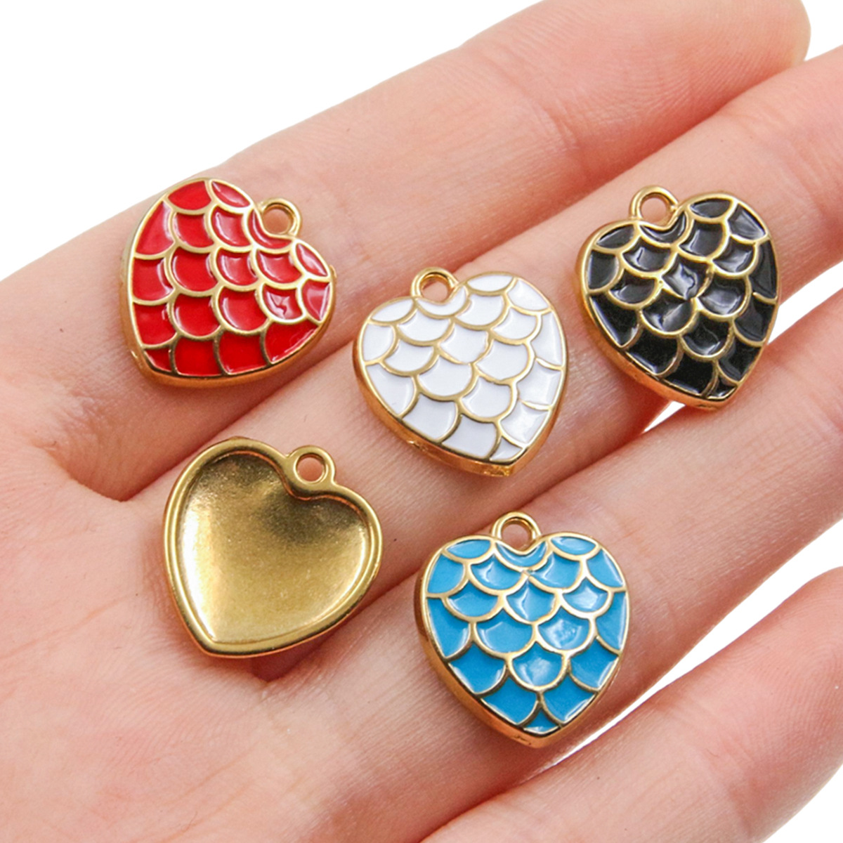 Enamel Stainless Steel Pendant, 304 Stainless Steel, Heart, Vacuum Ion Plating, DIY, more colors for choice, 15x17mm, 10PCs/Bag, Sold By Bag