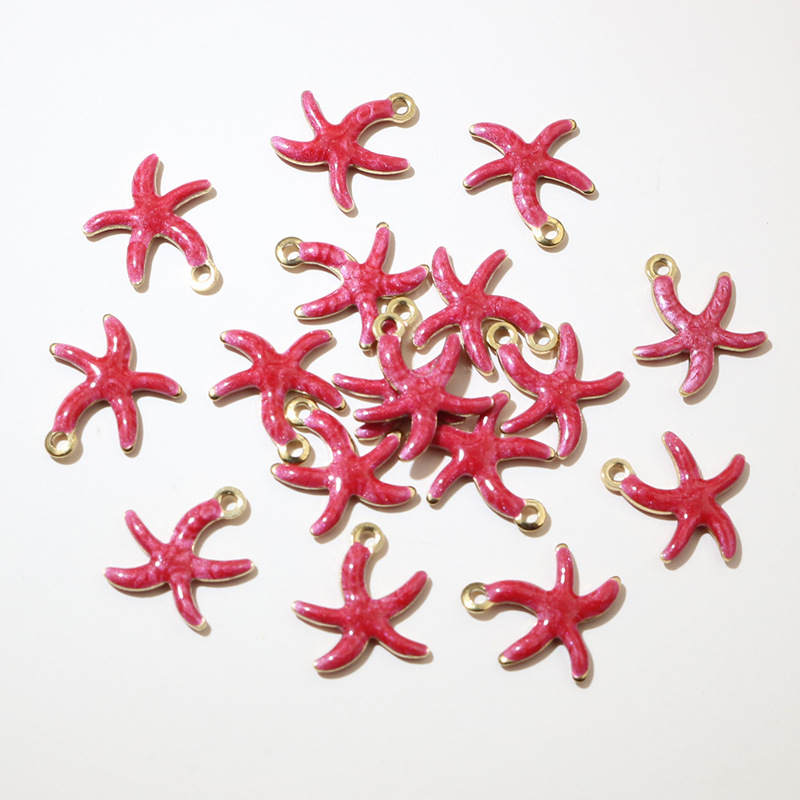 Enamel Stainless Steel Pendant, 304 Stainless Steel, Starfish, gold color plated, DIY, more colors for choice, 10x10mm, Sold By PC