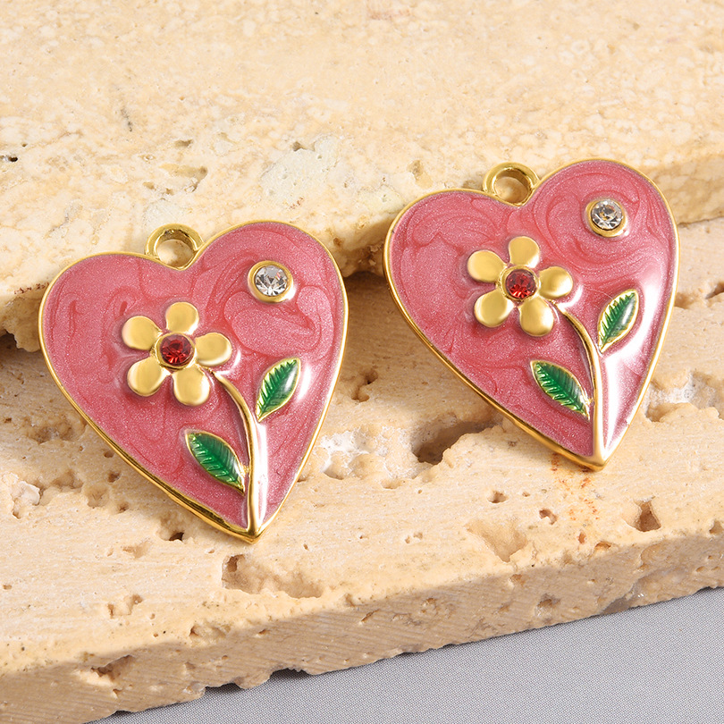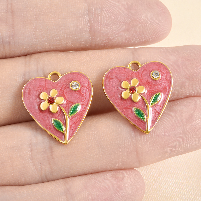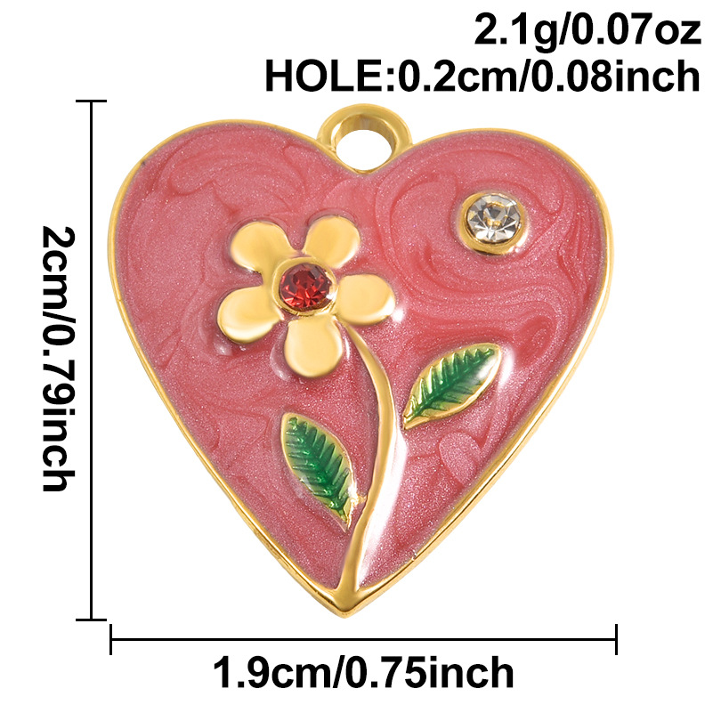 Enamel Stainless Steel Pendant, 304 Stainless Steel, Heart, gold color plated, DIY & with rhinestone, mixed colors, 10PCs/Bag, Sold By Bag