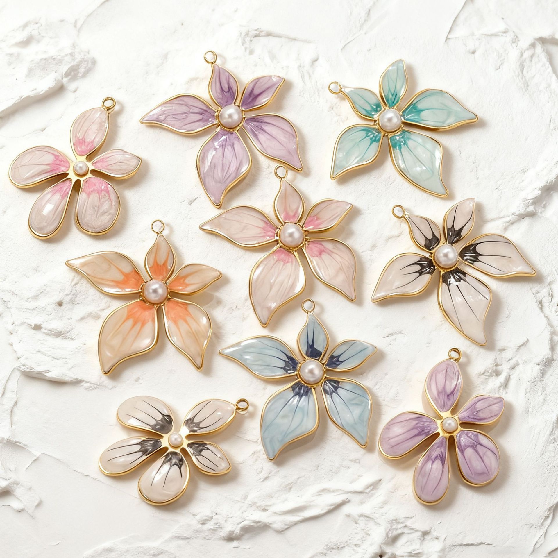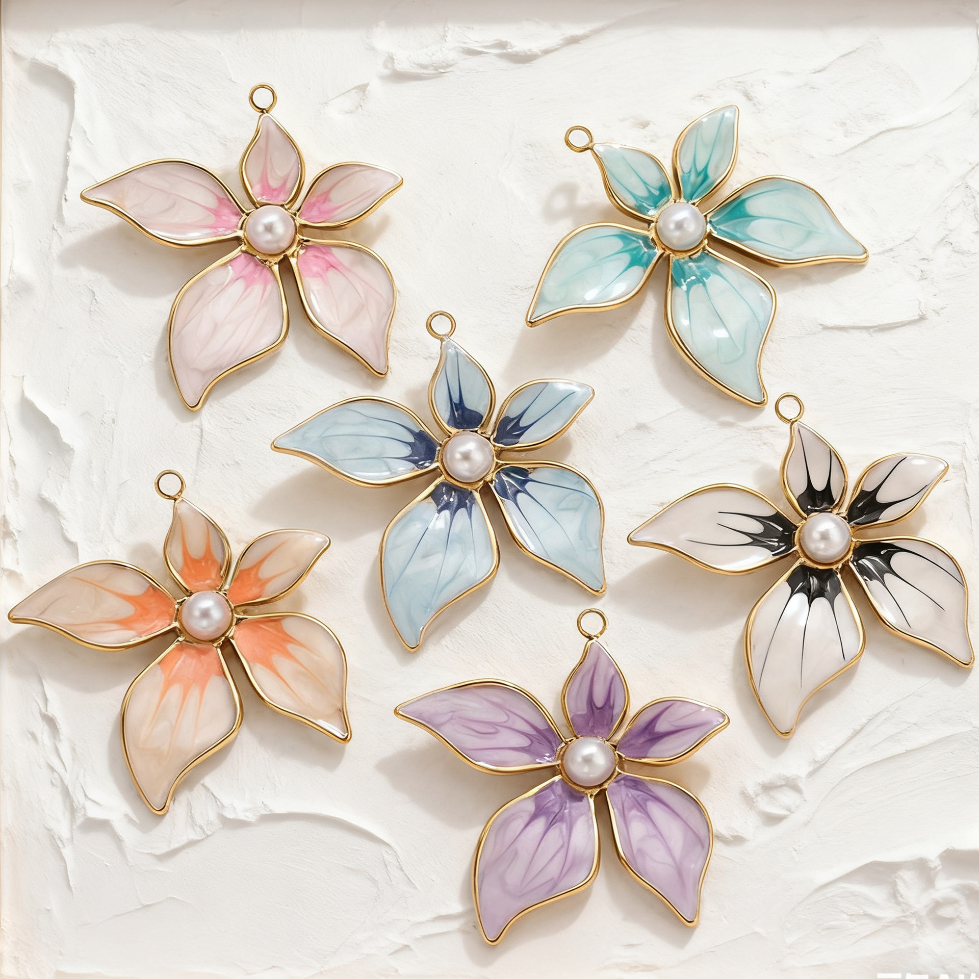 Enamel Stainless Steel Pendant, 304 Stainless Steel, with Plastic Pearl, Flower, gold color plated, DIY & different styles for choice, 5PCs/Bag, Sold By Bag