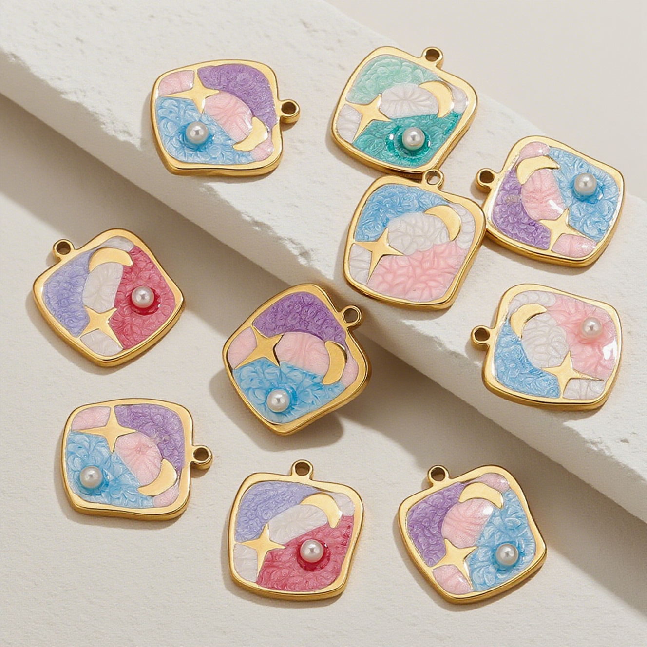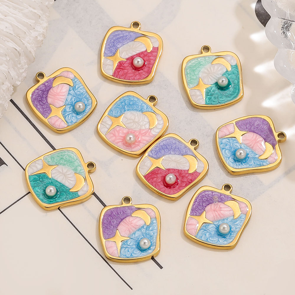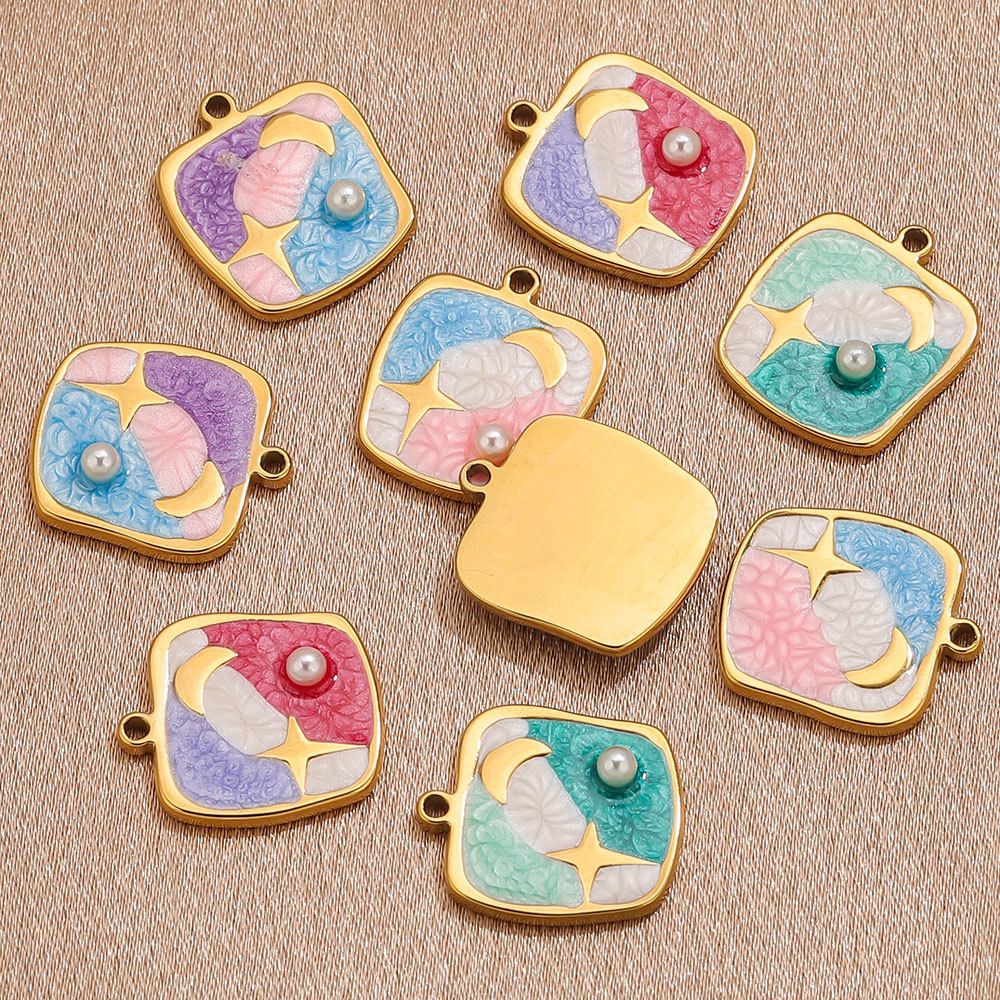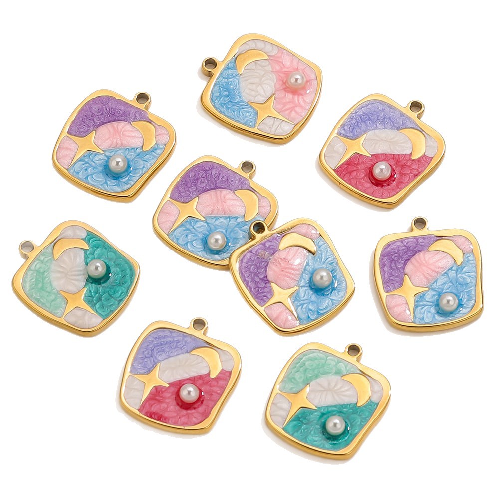 Enamel Stainless Steel Pendant, 304 Stainless Steel, with Plastic Pearl, Geometrical Pattern, gold color plated, DIY, more colors for choice, 16.5x19mm, Sold By PC