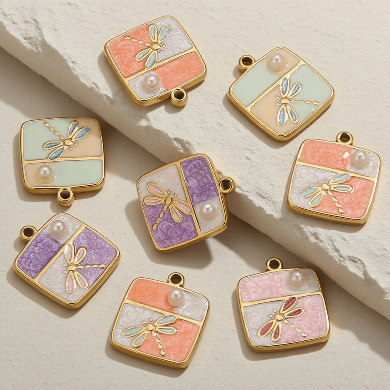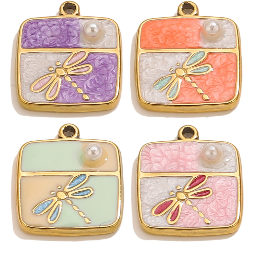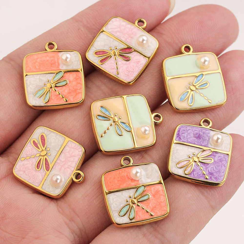 Enamel Stainless Steel Pendant, 304 Stainless Steel, with Plastic Pearl, Geometrical Pattern, gold color plated, DIY, more colors for choice, 16x18mm, 5PCs/Bag, Sold By Bag